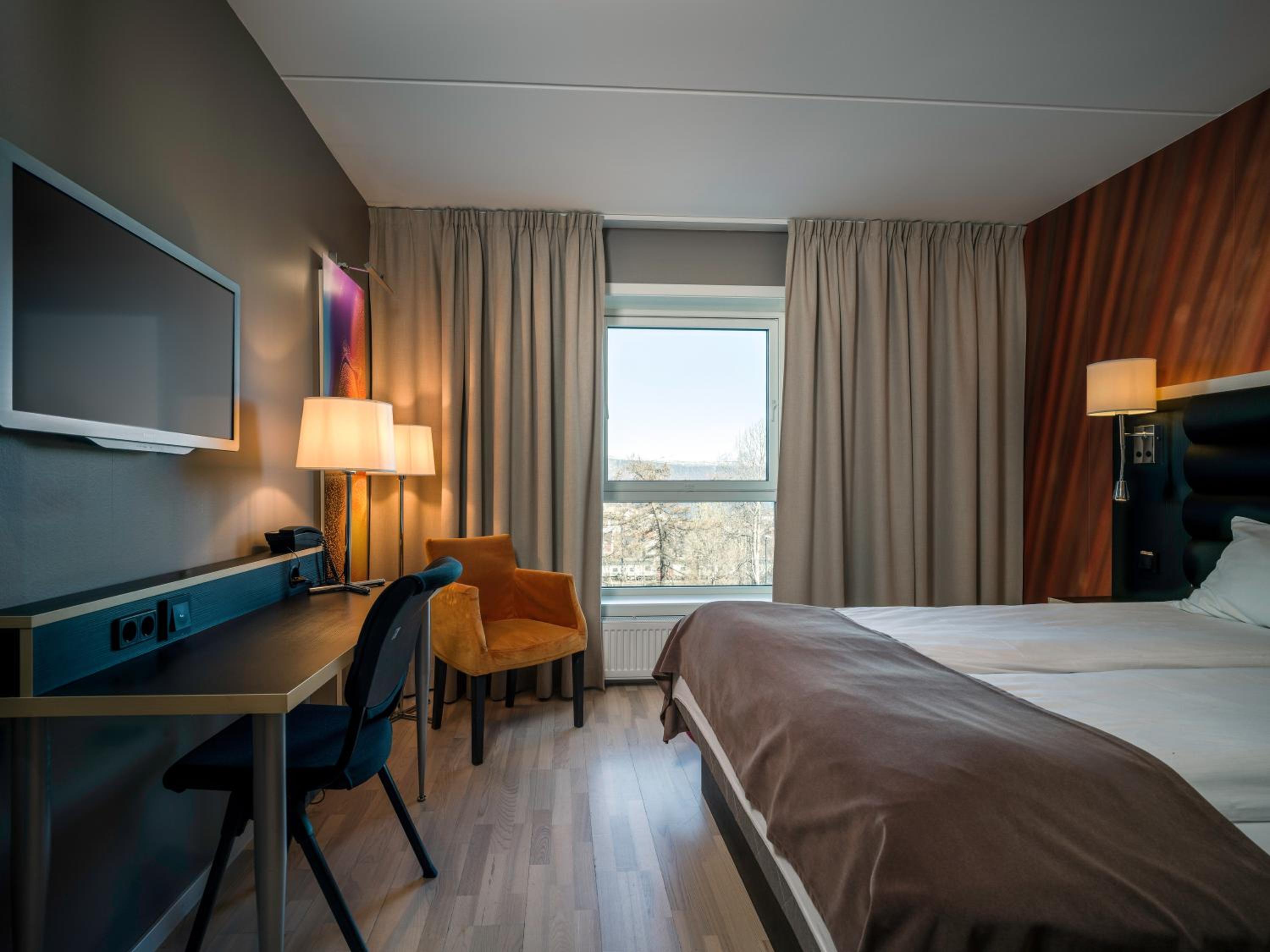 als je ergens moet verblijven dicht bij station in narvik dan is dit een goed hotel. mooi skybar restaurant lekker eten en de honden mogen mee. het hotel heeft echter veel verdiepingen en je moet dis altijd met de lift met de hond. en Narvik is echt geen leuker stad- als je de trein stockholm narvik neemt zou ik maar tot Kiruna reizen. aan Narvik mis je echt niks