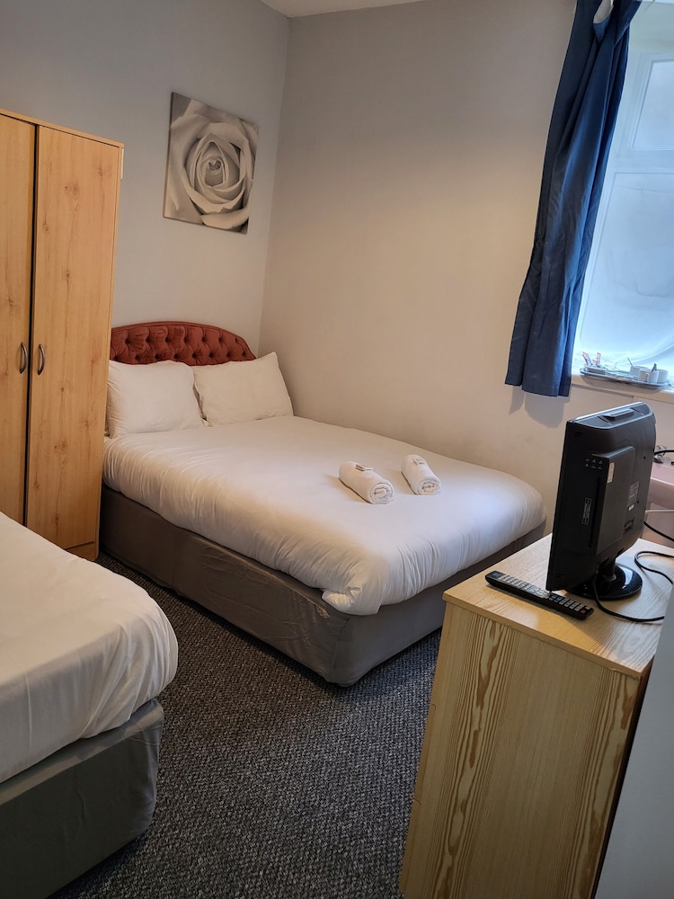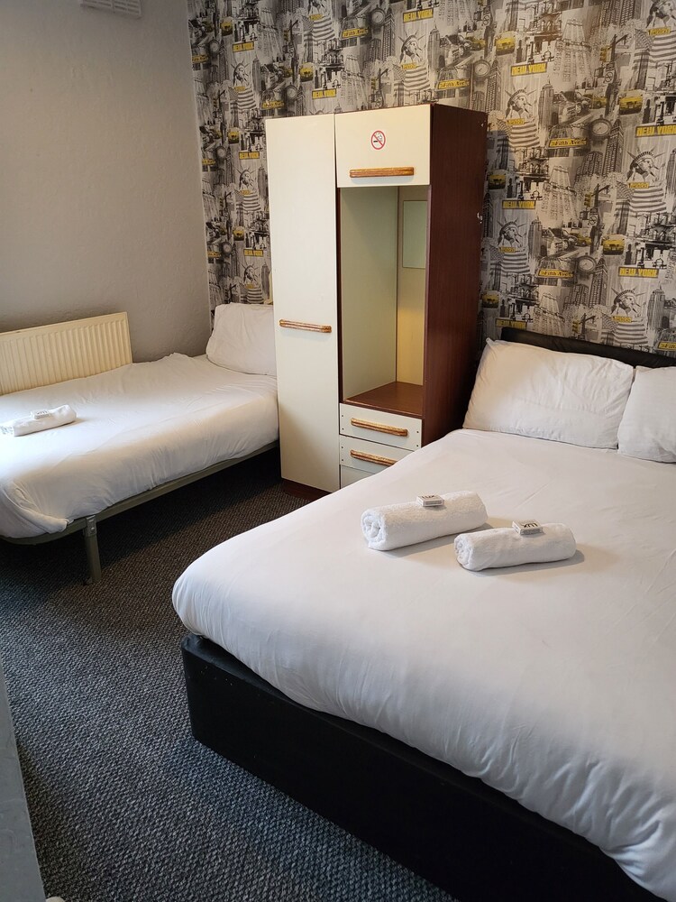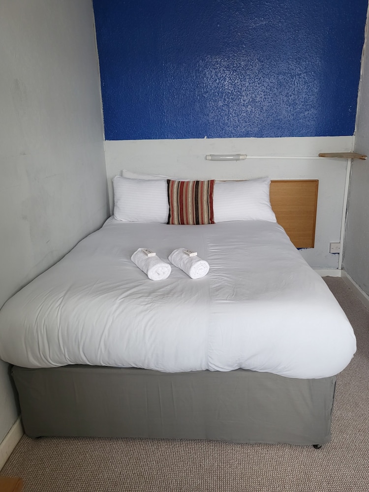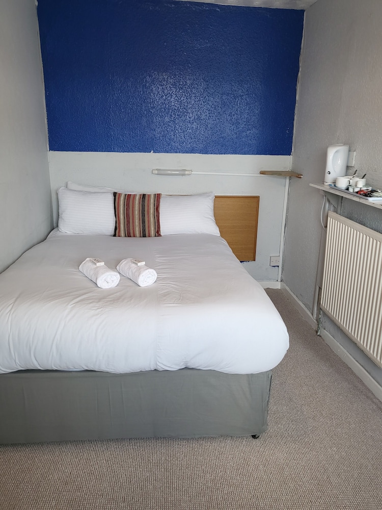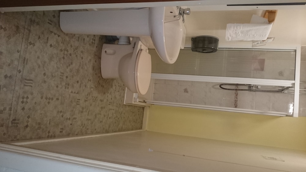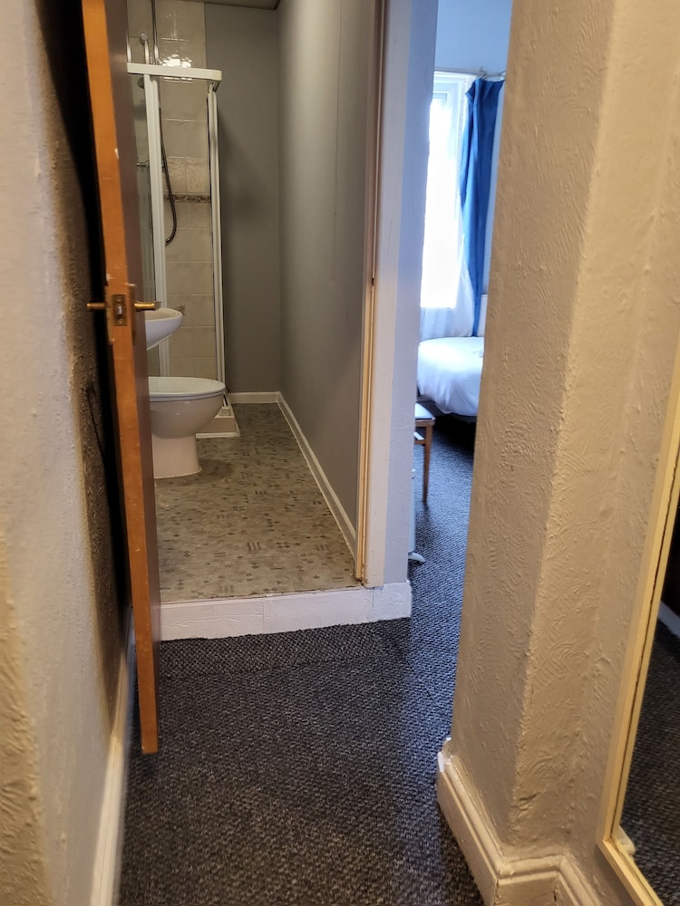 The manager was lovely. Very friendly and helped us set up the travel cot. But that’s where the good bits end. The room was far too small to be offered as a family room. One of us had to be on the bed whilst the other side stepped around. The bathroom was just gross. A piece of Lino in the shower. Paint peeling off the walls and the toilet was also gross. The room was freezing. The radiator hanging off the wall. Mould patches on the ceiling. We moved the bed to allow a few more inches of space and found loads of broken glass. The manager came straight away and hoovered but said he didn’t have any other rooms to move us too. As a result my toddler could not walk on the carpet without shoes as I didn’t trust it. Very disappointed and wouldn’t return. Will be contacting customer services. This places needs taking back to bare brick. No more paint jobs can save it.