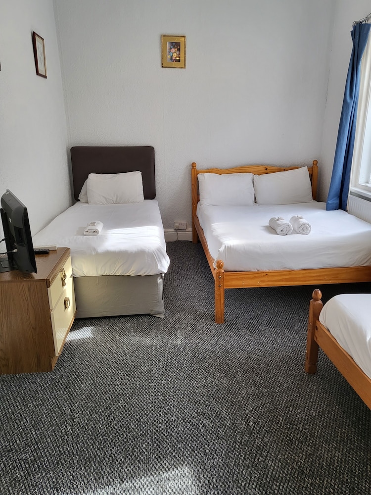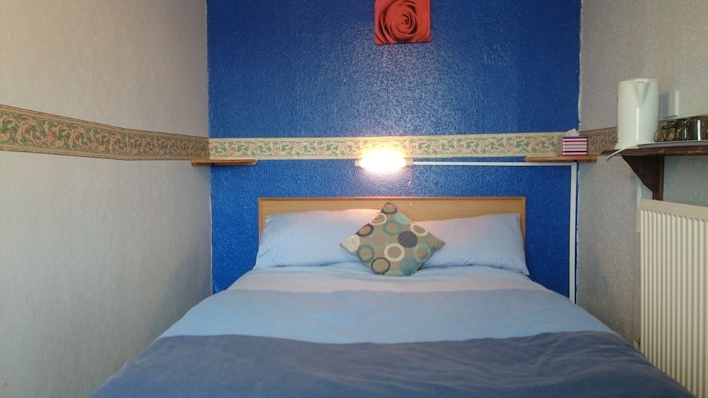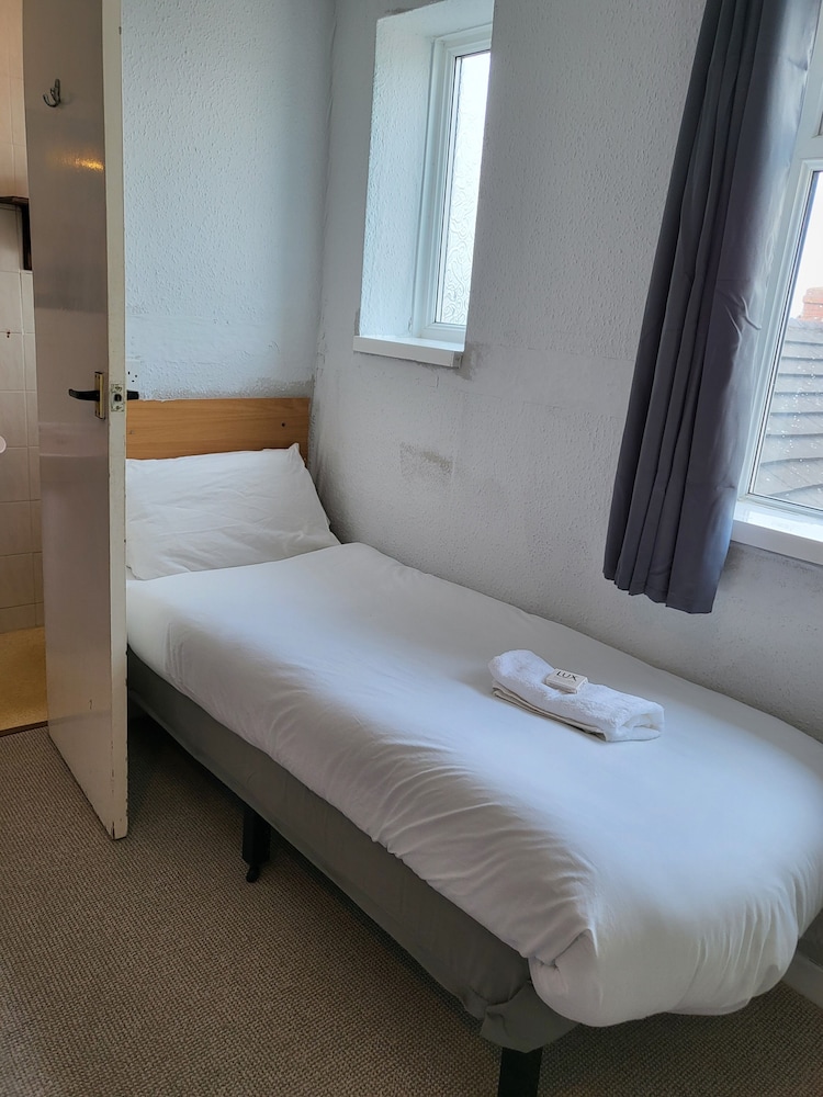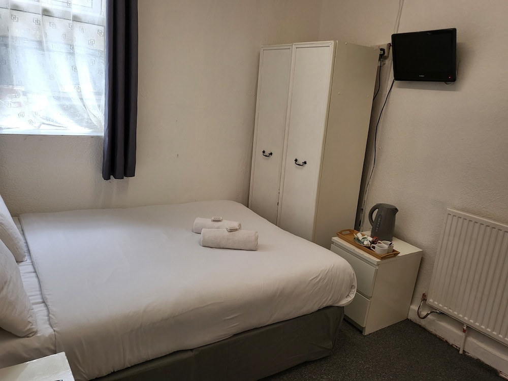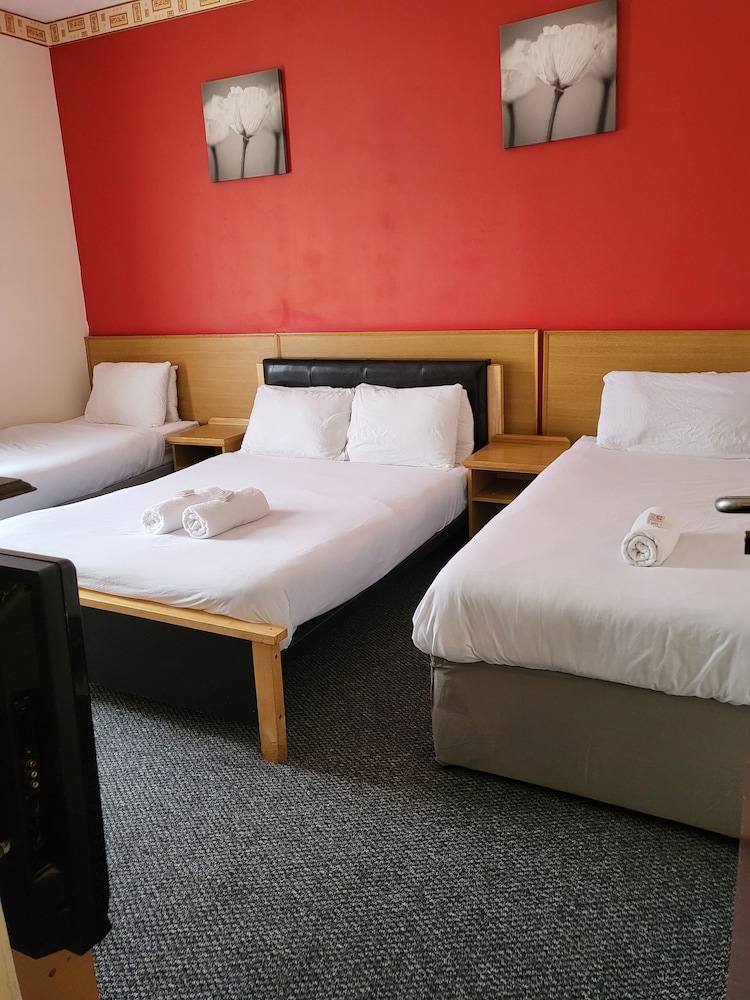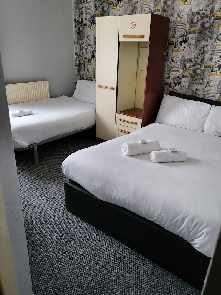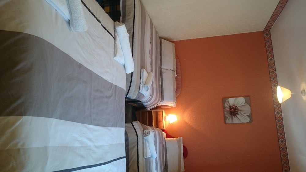 The manager was lovely. Very friendly and helped us set up the travel cot. But that’s where the good bits end. The room was far too small to be offered as a family room. One of us had to be on the bed whilst the other side stepped around. The bathroom was just gross. A piece of Lino in the shower. Paint peeling off the walls and the toilet was also gross. The room was freezing. The radiator hanging off the wall. Mould patches on the ceiling. We moved the bed to allow a few more inches of space and found loads of broken glass. The manager came straight away and hoovered but said he didn’t have any other rooms to move us too. As a result my toddler could not walk on the carpet without shoes as I didn’t trust it. Very disappointed and wouldn’t return. Will be contacting customer services. This places needs taking back to bare brick. No more paint jobs can save it.