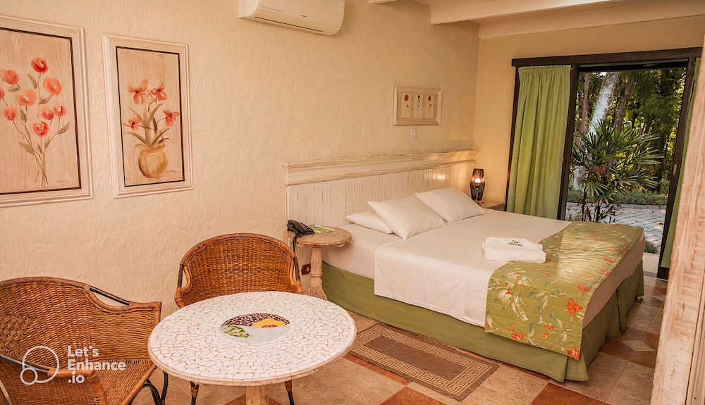 Pontos negativos: o quarto que ficamos era muito úmido, por mais que houvesse desumidificador e ventokit no banheiro, o cheiro de umidade e mofo eram bastante presentes. Nosso quarto foi o 209 que fica “cravado” no morro, em meio às árvores, e pega pouquíssimo sol. Se possível, escolha os quartos mais próximos à recepção, pois são quartos que pegam mais sol e provavelmente serão menos úmidos. Outro ponto negativo é que não é um hotel muito acessível para PCDs. Não era uma necessidade nossa, mas pude observar que tem muitas escadas, caminhos de pedras, morros, banheiros pequenos… não imagino uma pessoa PCD se hospedando lá.