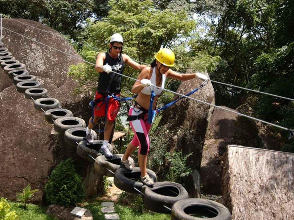 A experiência de uma maneira geral foi excelente! O lugar é muito agradável, o terreno do hotel é imenso… os quartos ficam em meio à bosque, muitas árvores, caminhos de pedriscos, perfeito para quem quer ficar perto da natureza. Ponto alto para a recreação com profissionais extremamente atenciosos, carinhoso e cuidadosos com a criança. Tia Preguiça e Tio Rebaixado ganharam nosso coração e o coração da nossa filha. As atividades como tirolesa e arvorismo são muito legais e bem equipadas. A conservação do hotel é muito boa. Prepare as pernas e panturrilhas, porque é tudo bem grande e é um sobe e desce de ladeiras rs, bom que o exercício está garantido. Mas eles tem carros para locomoção dos hóspedes.