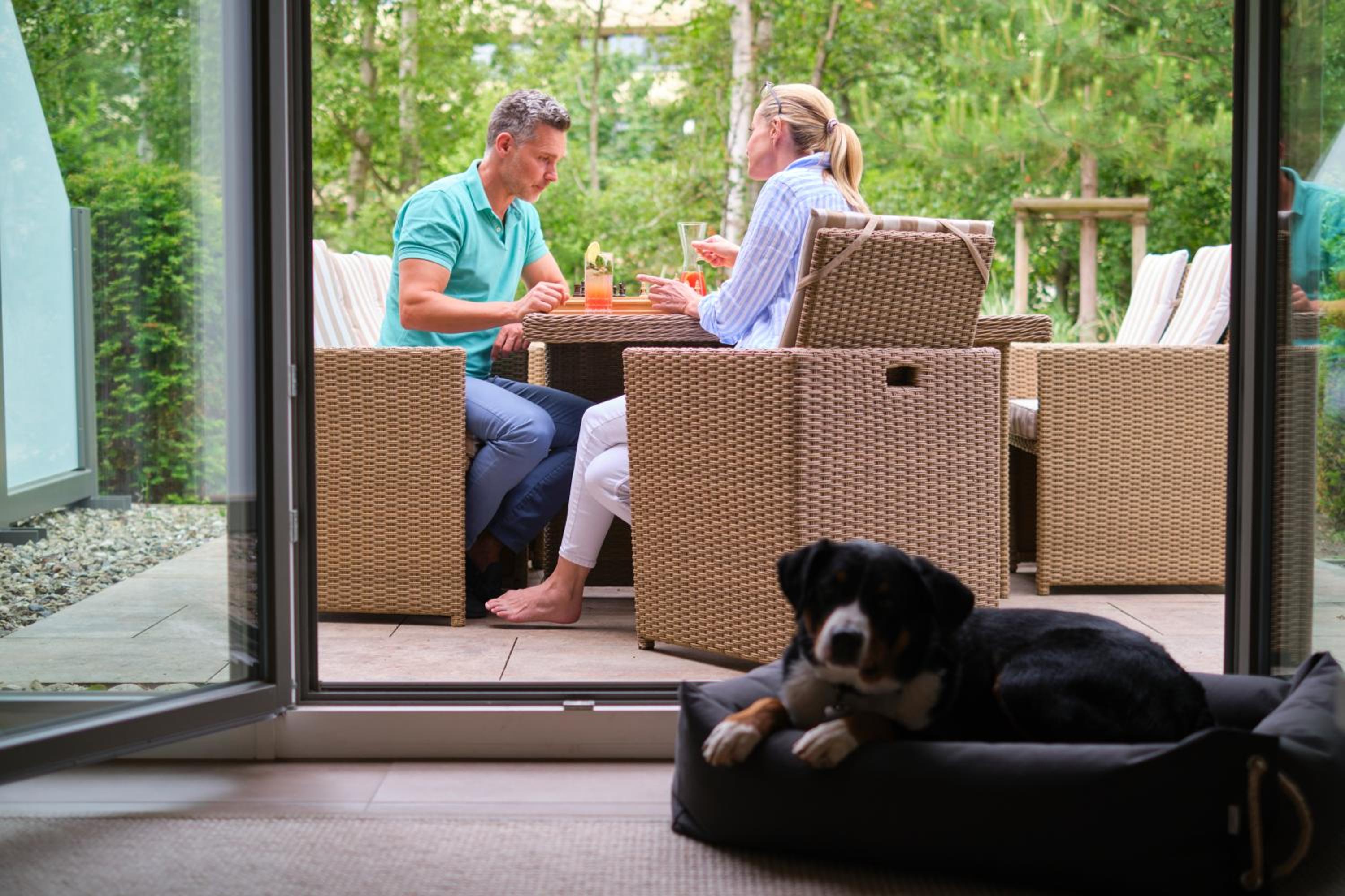 Positiv waren wir überrascht von dem Willkommensgruß, die Näpfe und das Bett mit Handtuch für unsere Hündin. Das Zimmer hat für unsere vierköpfige Familie plus Hündin viel Platz und einen guten Blick über die Hotelanlage sowie Umgebung geboten. Besonders gemütlich ist die Lobby gestaltet, die zum Verweilen einlud.