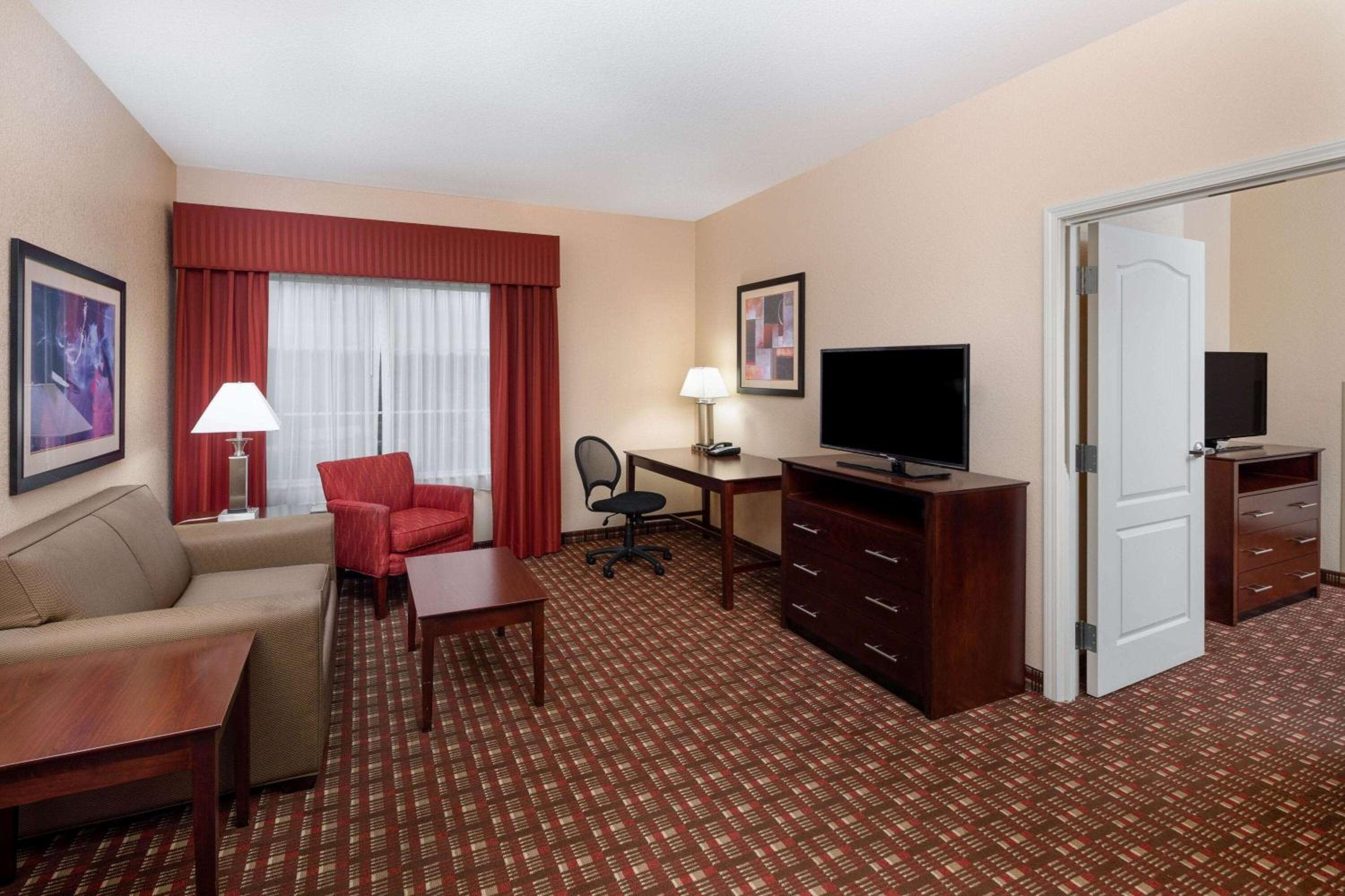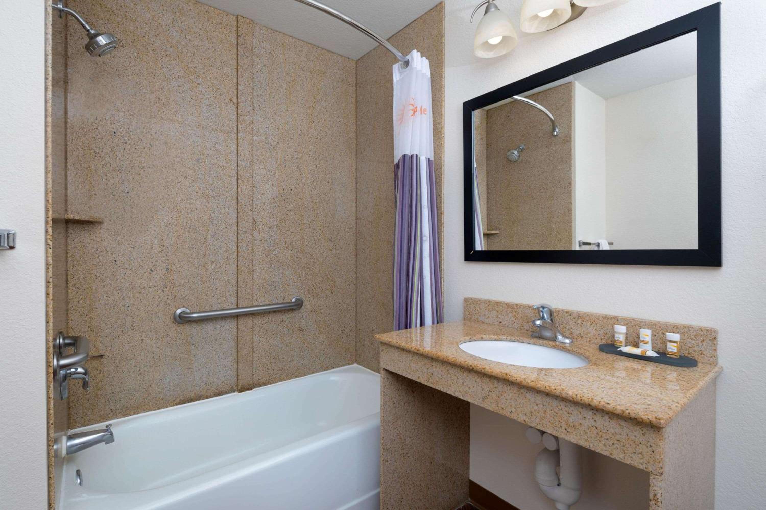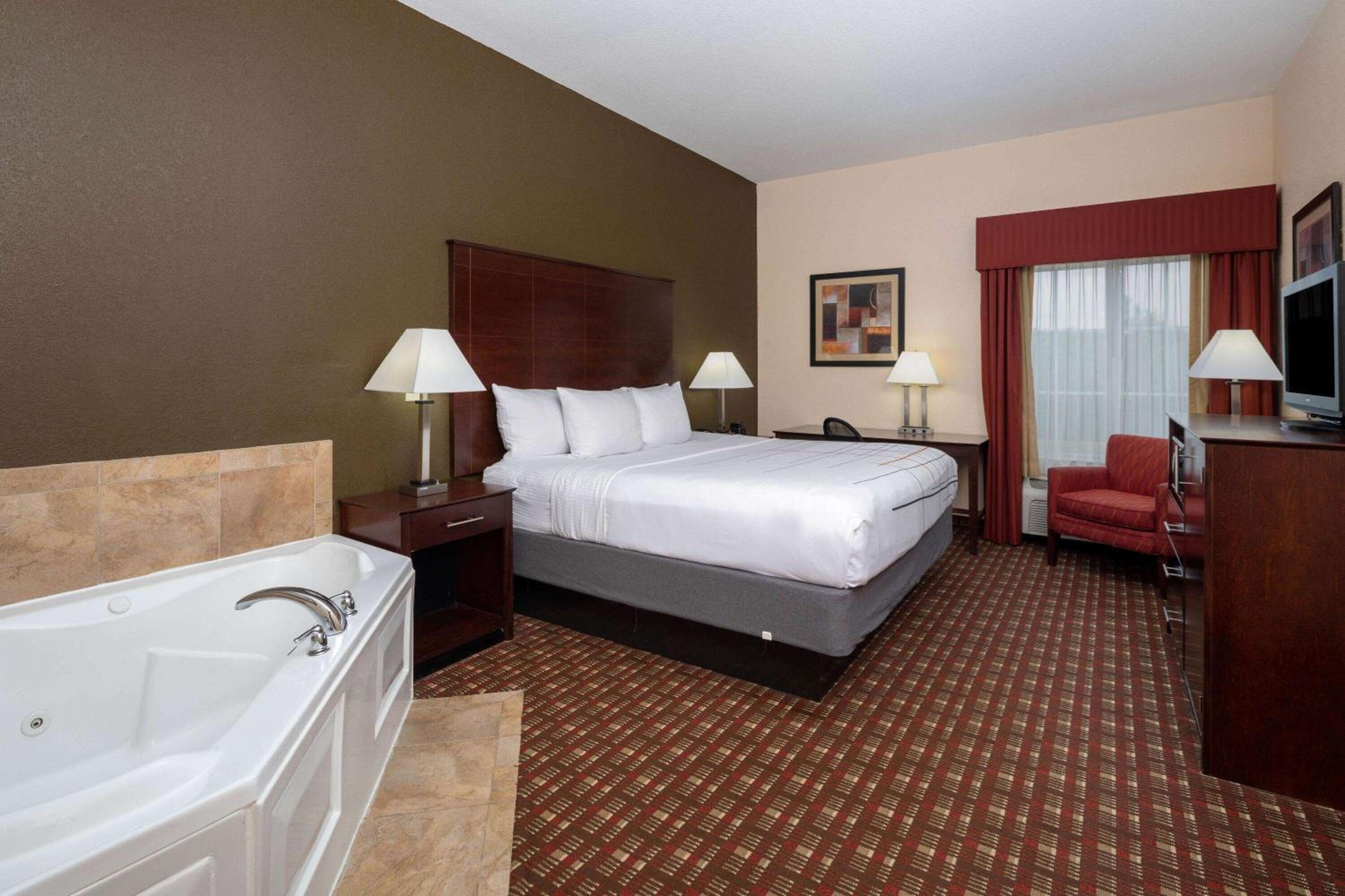 Each guest room at La Quinta Inn and Suites Macon West is equipped with modern amenities such as a microwave, small refrigerator, and a flat-screen television, ensuring a comfortable stay for all our guests.