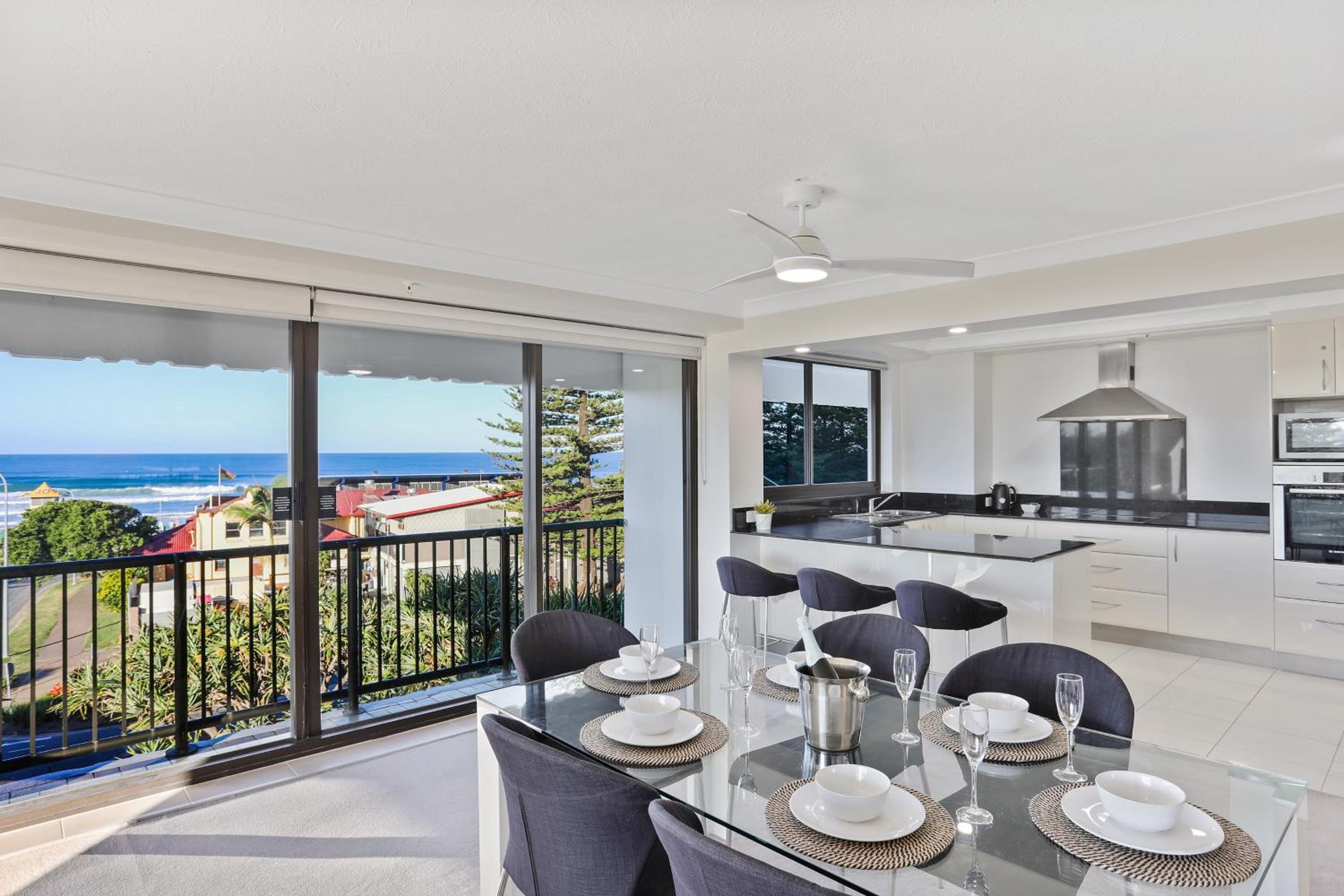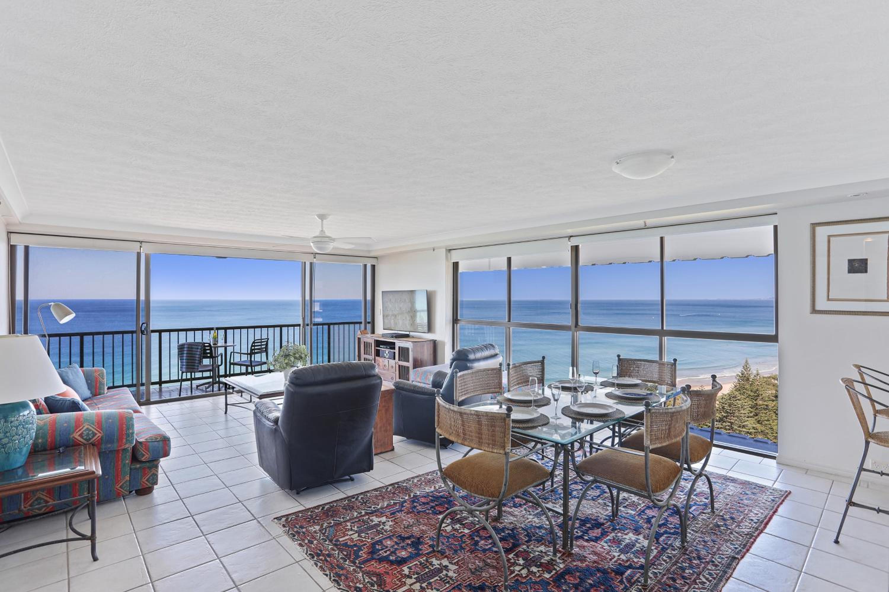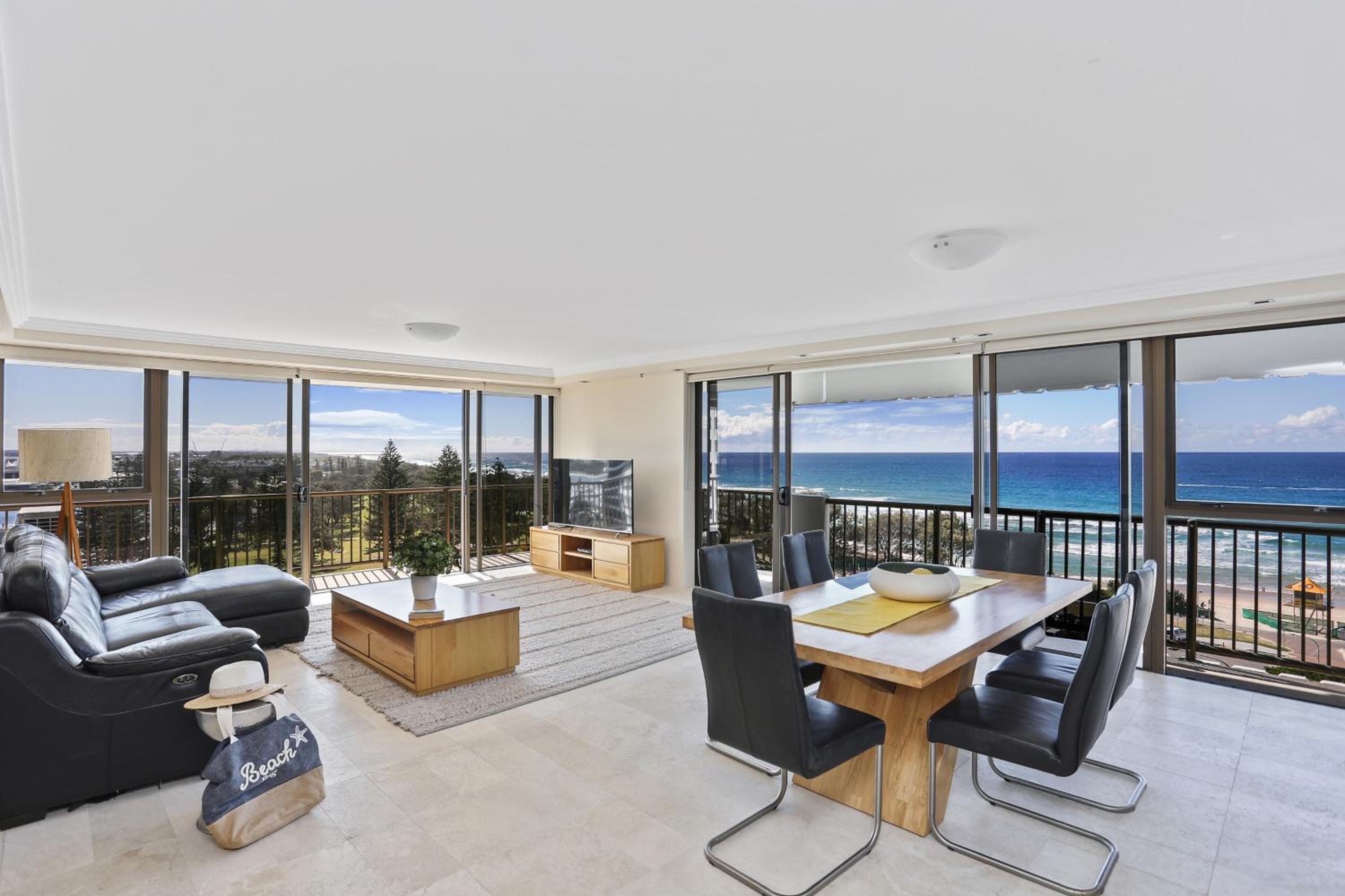 Excellent location, across the road from surf club and flags. View from the apartment was outstanding. Large apartment with great separation of spaces. 3 bedroom apartment ideal for family or group of friends sharing.