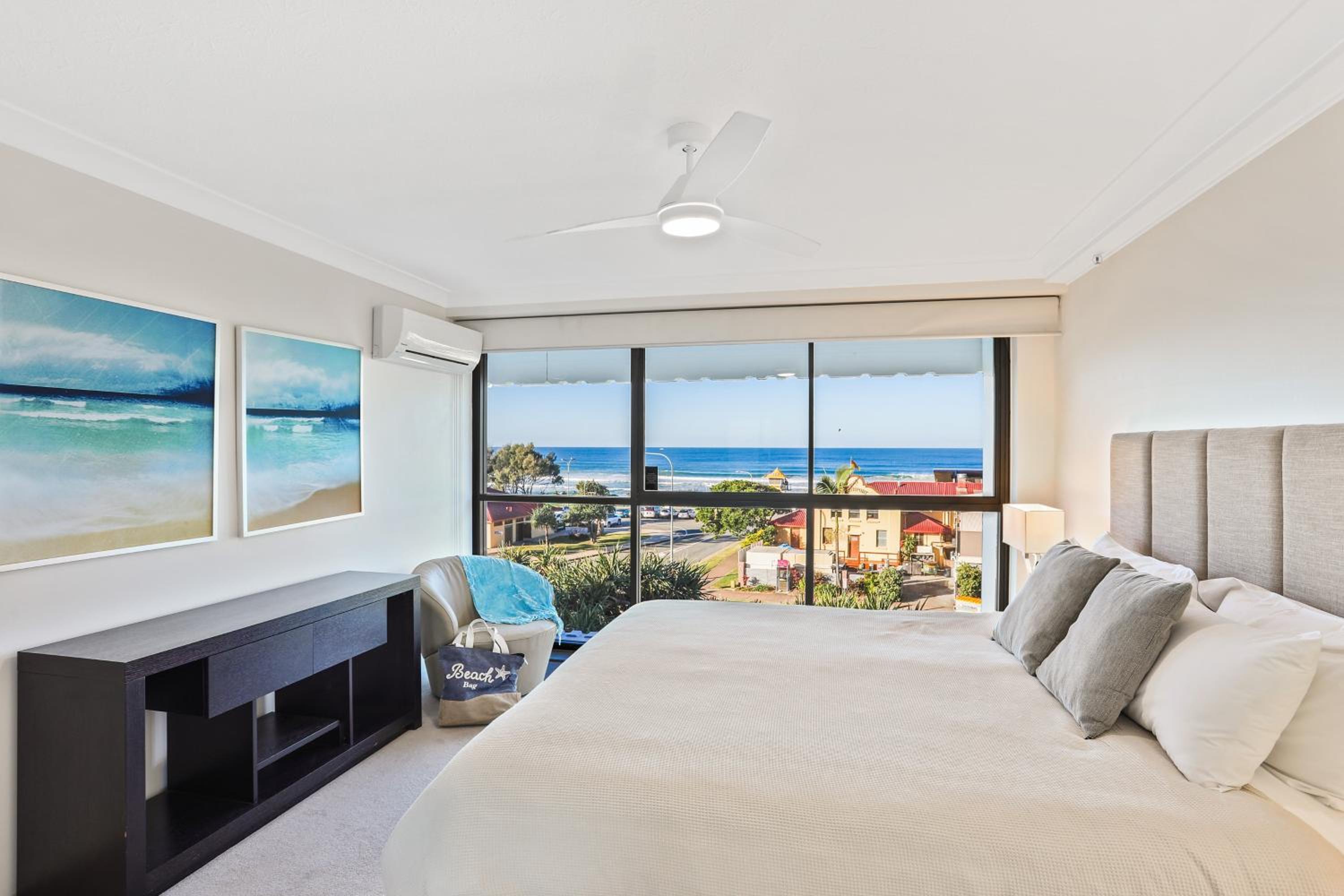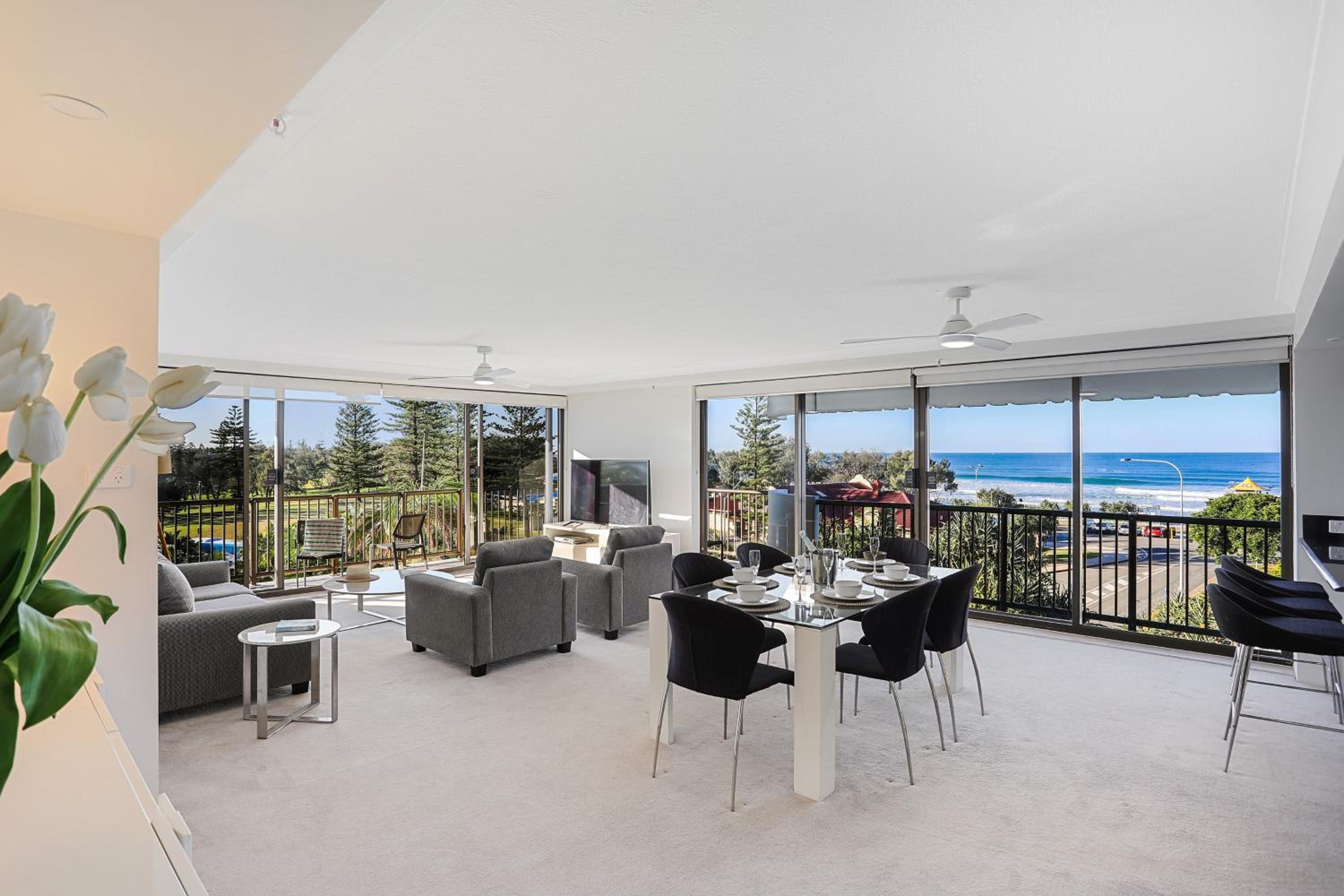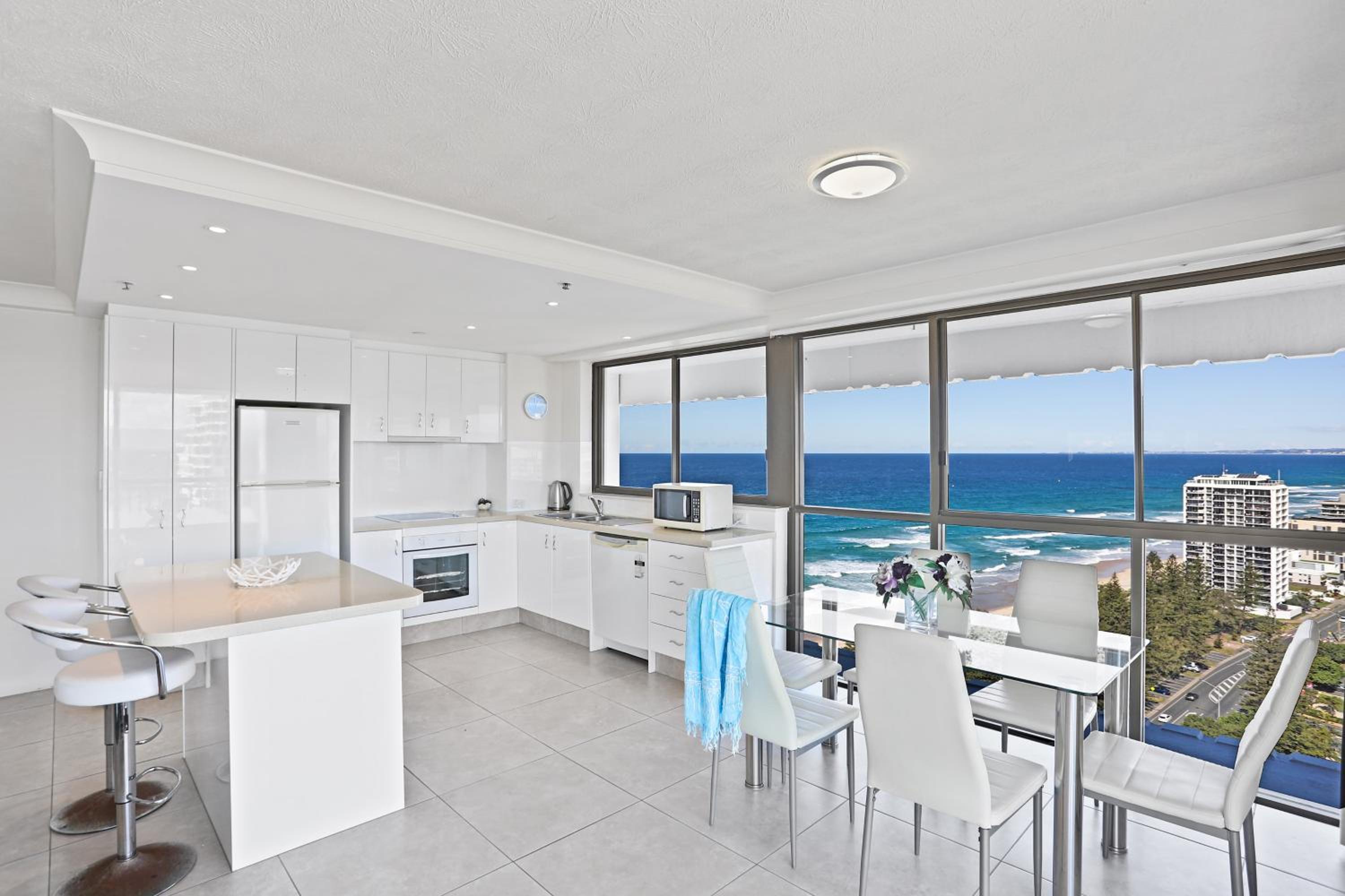 Excellent location, across the road from surf club and flags. View from the apartment was outstanding. Large apartment with great separation of spaces. 3 bedroom apartment ideal for family or group of friends sharing.