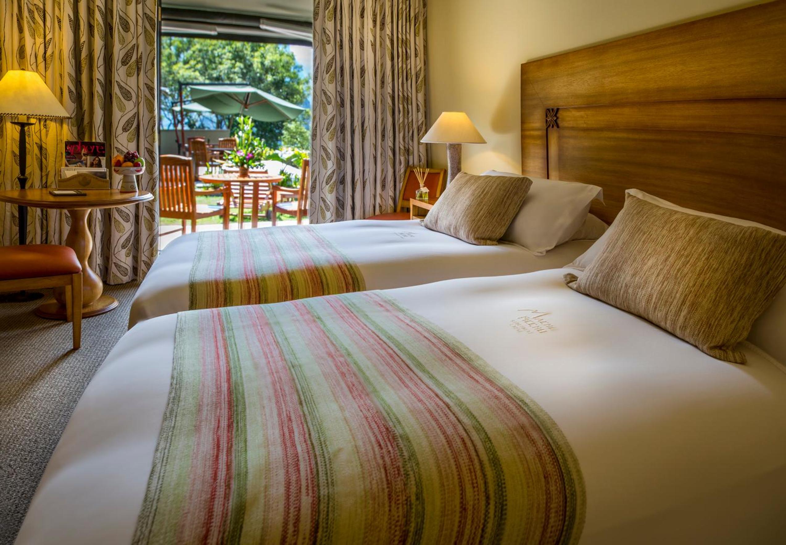 This luxurious hotel, Sanctuary Lodge, A Belmond Hotel, Machu Picchu, offers elegantly decorated rooms with cable TV and work desks. Some rooms even feature private patios with mountain views, providing a serene retreat for guests. The hotel's landscaped ponds and direct views of the Huayna Picchu Mountain create a picturesque backdrop for a relaxing stay.