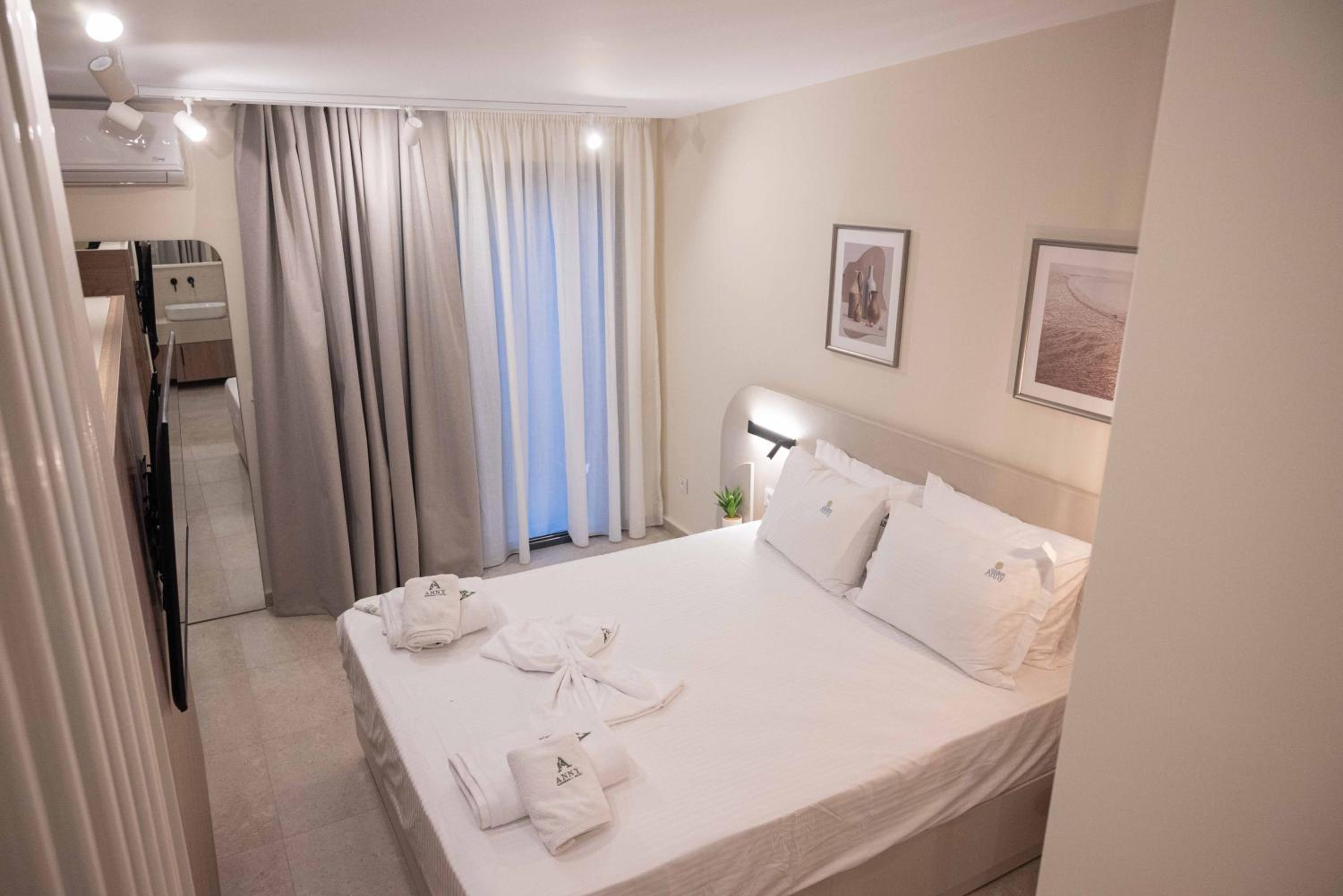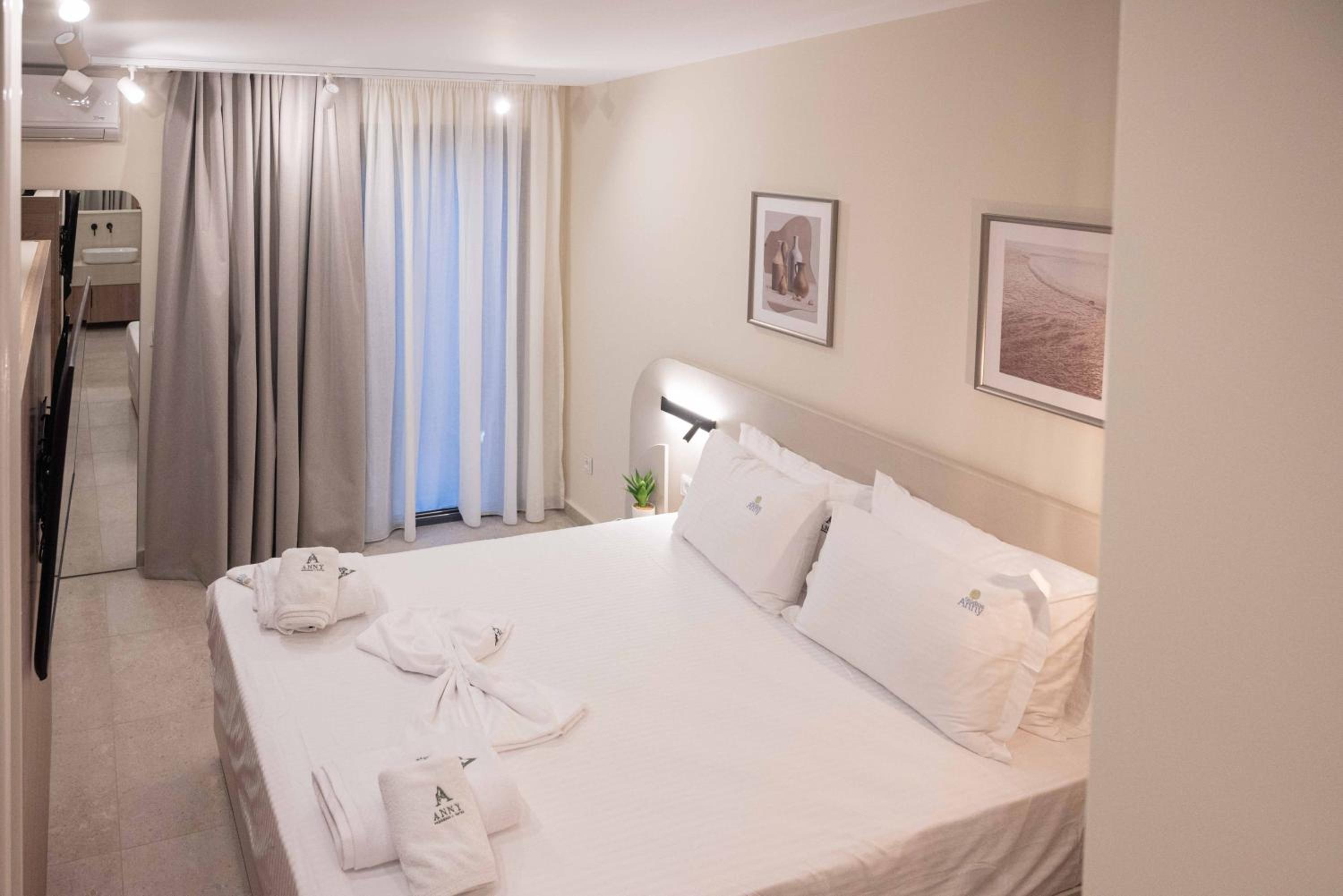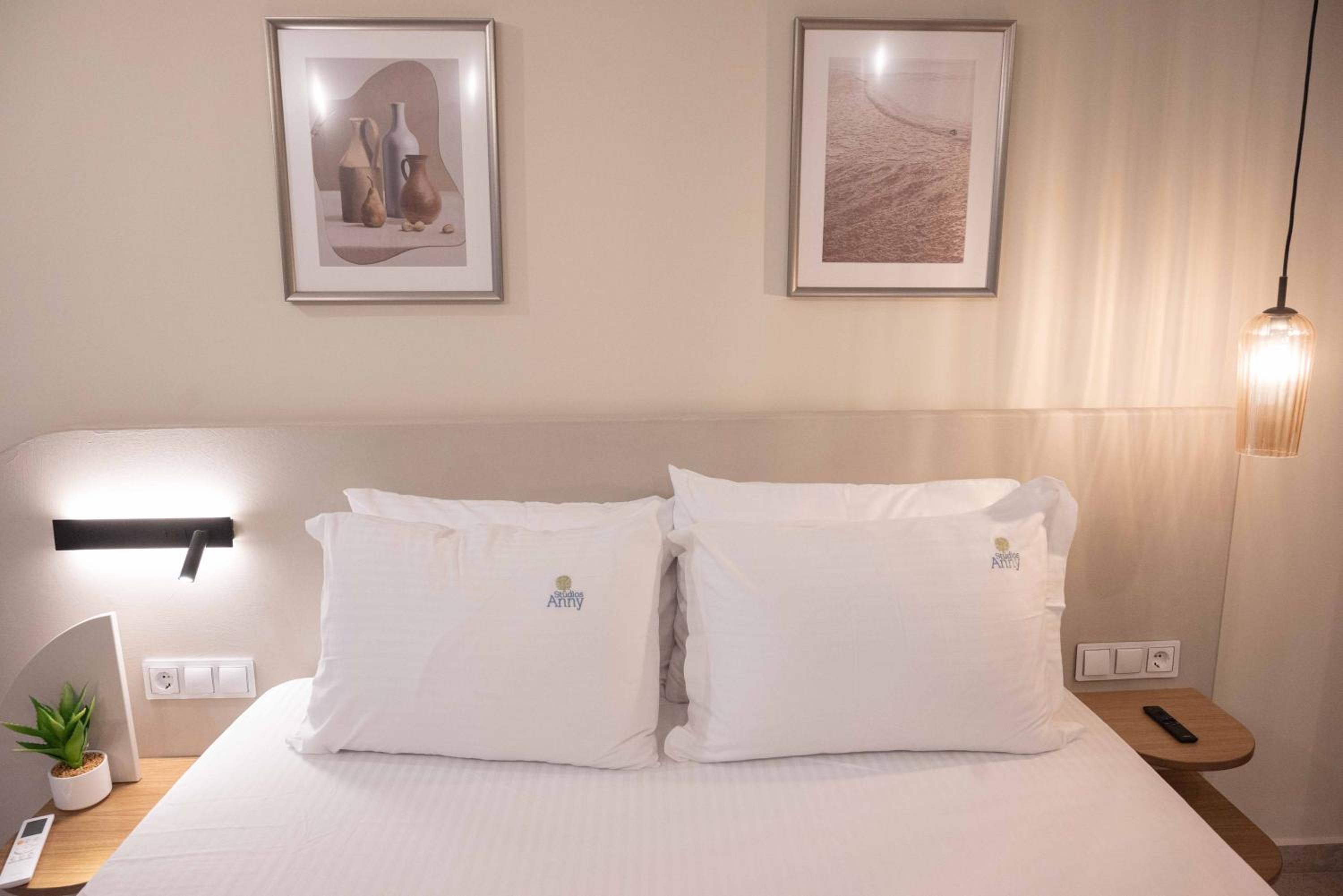 It was a nice stay in Studios Anny Family Hotel. The owners were really pleasant and and helpful people. The beds were comfortable, but there was only one not so big bed sheet and blanket for a double bed.