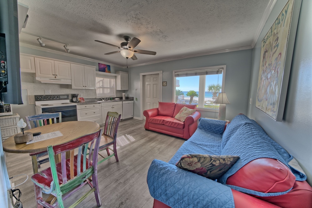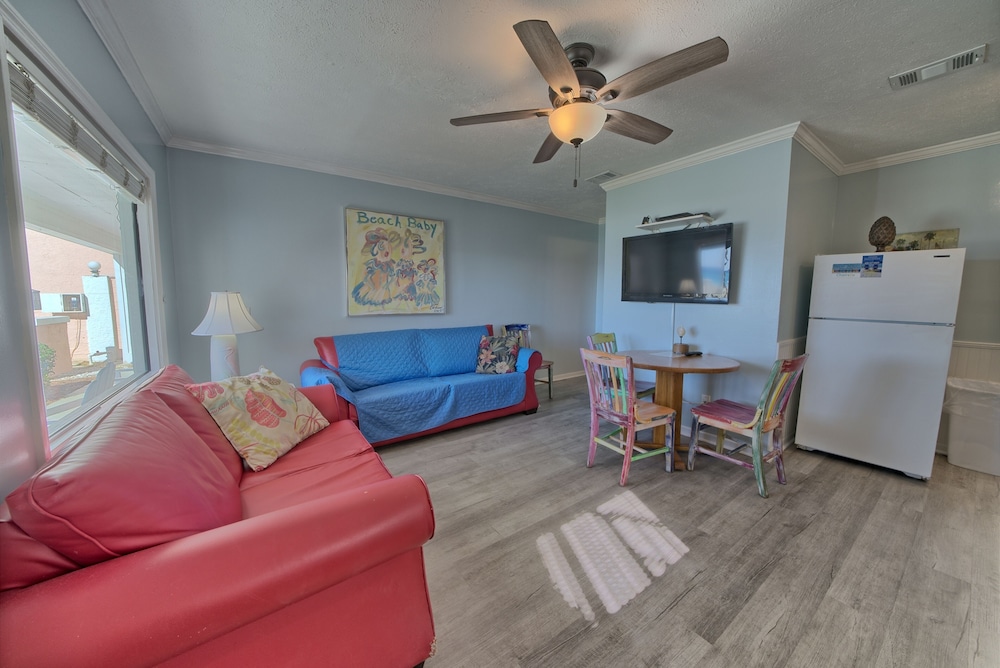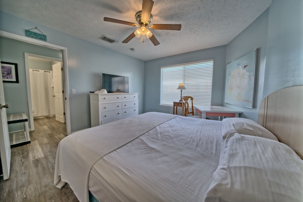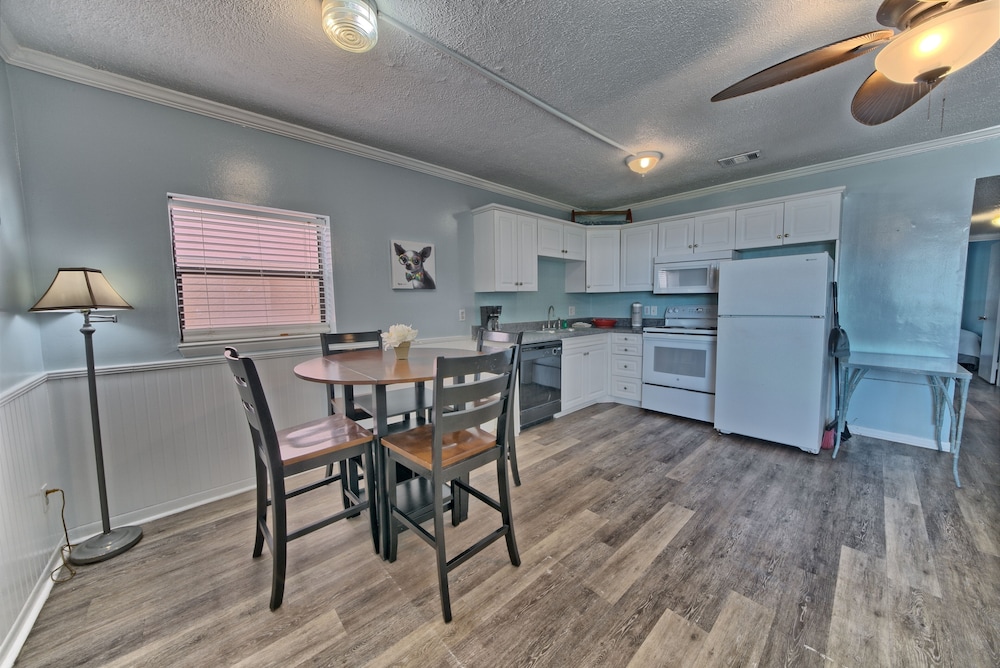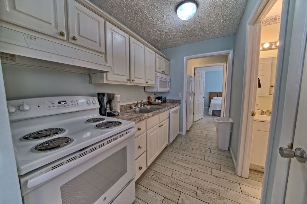 Affordable stay with plenty of space for longer trips to the area, especially if you want to be away from the busier areas of PCB. We came for a football tournament and the team was staying across the street at the Laguna Beach Christian Retreat. Super convenient to walk to! Appreciated that it was dog-friendly and loved that it was right on the beach. Our place was clean enough, but could’ve benefited from a thorough mopping as the floor had what felt was residue from cleaning solution, making it somewhat sticky. Wasn’t a huge issue for us given the value of the stay. The washer and dryer situation was a bit inconvenient as it’s located on second floor breezeways and you have to download an app to use them. There aren’t enough for the property, and one set was not working, so we had to wait for another person to finish using them. This person left their clothes in there for a few hours before I finally removed them so I could dry my load. Also parking is tricky - if you arrive late or too early, you may need to park across the street as there are a limited number of spots. These are all still minor things that I can overlook given the affordability of the property and the size of the space you get compared to some other nearby properties that are beachfront. Pool was nice and the views were beautiful! Could use some updating and minor repairs but I appreciate that this is an old property that has been here for decades. Would stay again!