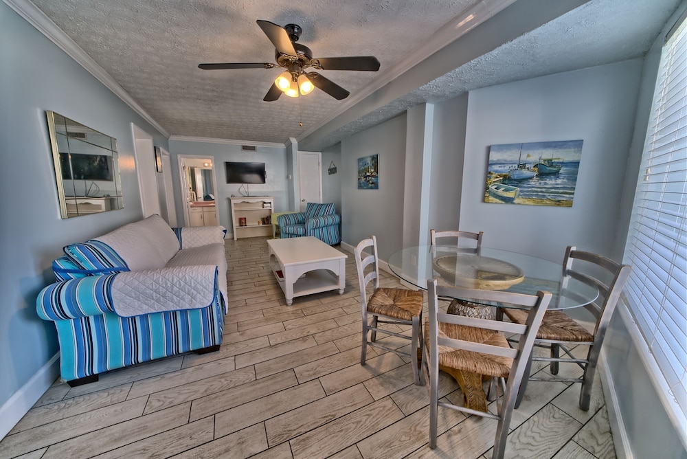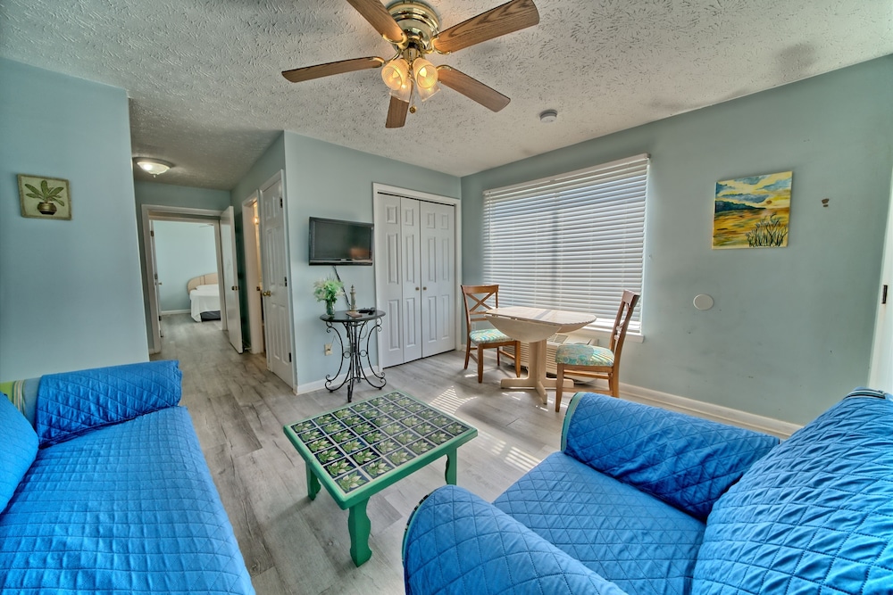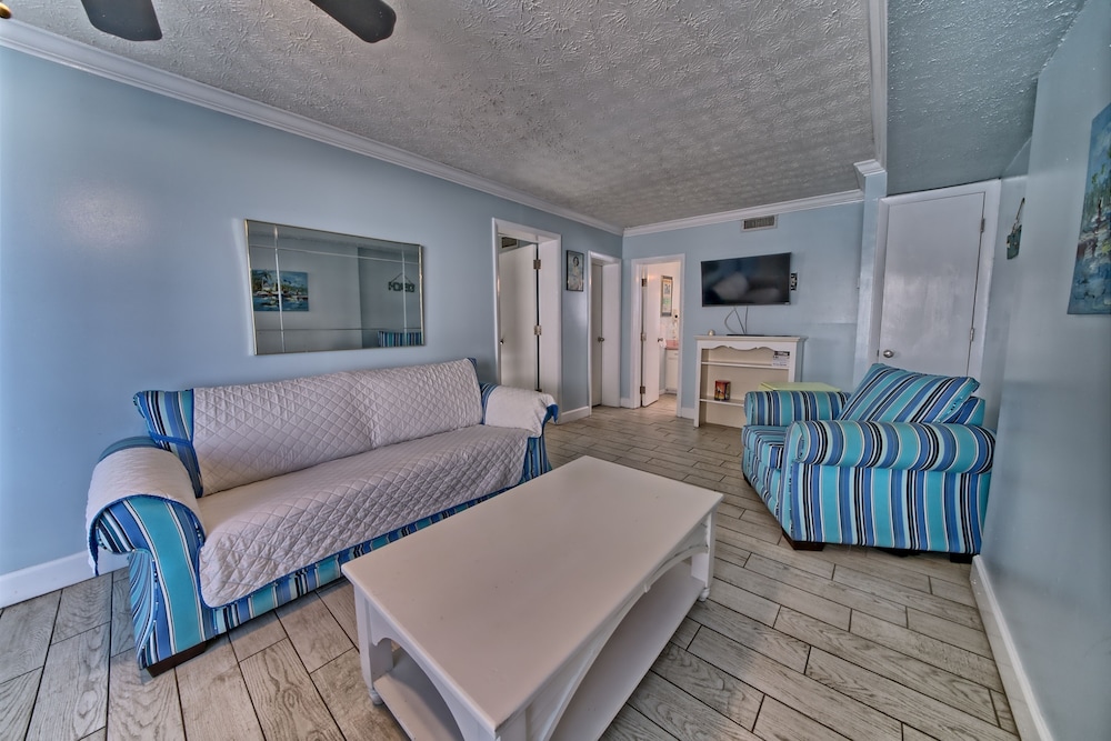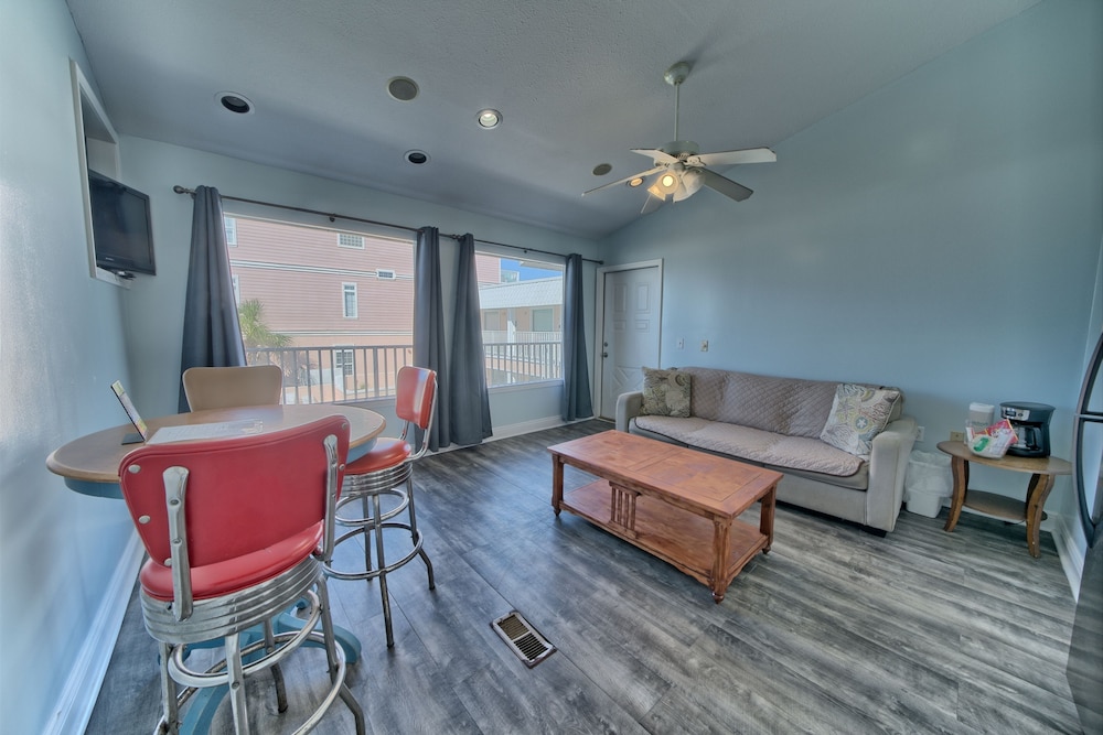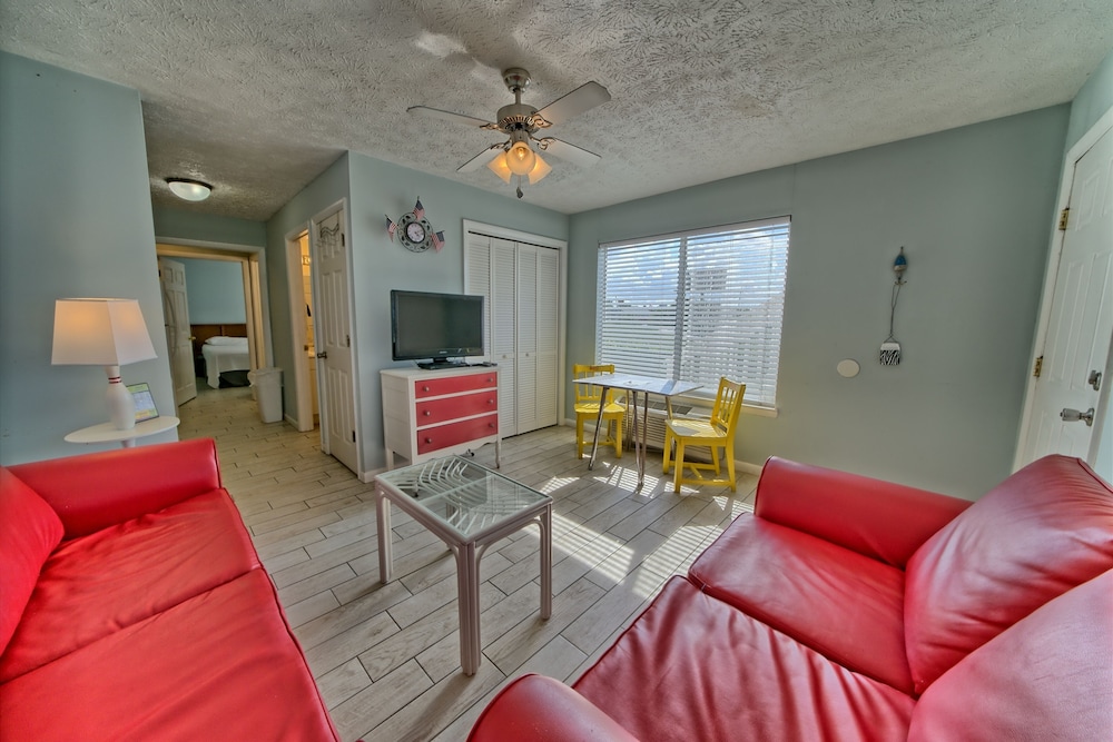 Affordable stay with plenty of space for longer trips to the area, especially if you want to be away from the busier areas of PCB. We came for a football tournament and the team was staying across the street at the Laguna Beach Christian Retreat. Super convenient to walk to! Appreciated that it was dog-friendly and loved that it was right on the beach. Our place was clean enough, but could’ve benefited from a thorough mopping as the floor had what felt was residue from cleaning solution, making it somewhat sticky. Wasn’t a huge issue for us given the value of the stay. The washer and dryer situation was a bit inconvenient as it’s located on second floor breezeways and you have to download an app to use them. There aren’t enough for the property, and one set was not working, so we had to wait for another person to finish using them. This person left their clothes in there for a few hours before I finally removed them so I could dry my load. Also parking is tricky - if you arrive late or too early, you may need to park across the street as there are a limited number of spots. These are all still minor things that I can overlook given the affordability of the property and the size of the space you get compared to some other nearby properties that are beachfront. Pool was nice and the views were beautiful! Could use some updating and minor repairs but I appreciate that this is an old property that has been here for decades. Would stay again!