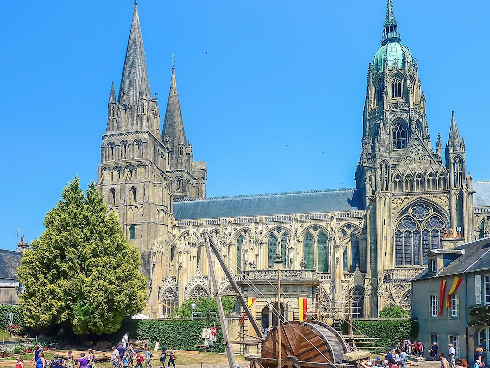 Staff very friendly and helpful. Step into tub was very high with no grab bars. Floor of tub very slippery and unstable(floor deflected a great deal). We stayed in the Colombier wing with no elevator. Manageable but getting more difficult for our age group. Great location for visiting Normandy sites. Breakfast buffet was excellent, dinner night before was less so.