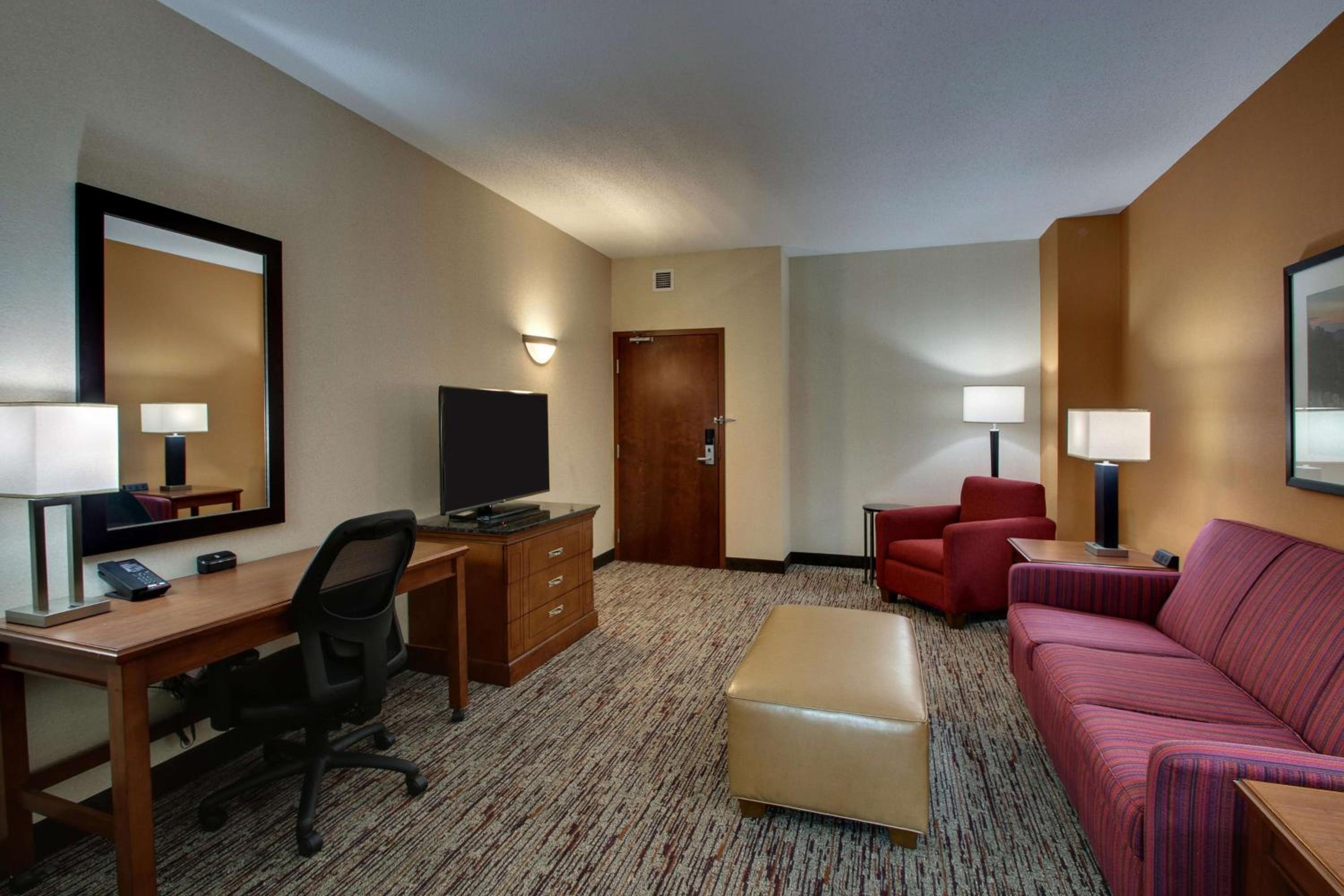 With a flat-screen TV, microwave, and refrigerator in every room, guests can enjoy the comforts of home. The on-site fitness center, business center, and free parking add convenience to your stay.
