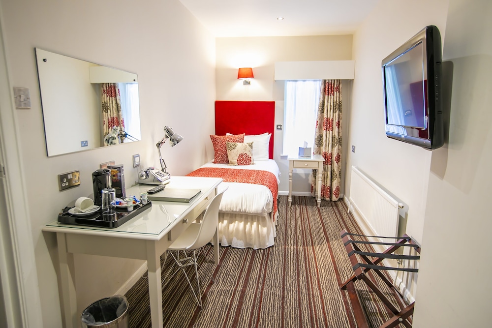 A friendly homely hotel with a small but comfy room. Hoped for a bath and went to phone reception to see if we change but phone not working-but worked the next day! Desk light not working but mended quickly. Small bathroom with some stains on grount (which cleaned with a fingernail) but very clean apart from that. Shower door slightly broken but didn’t leak or spoil showering. Kettle tray had a moulded space for a kettle but a different kettle was actually present. Room was in basement so window at floor level. Friends in room