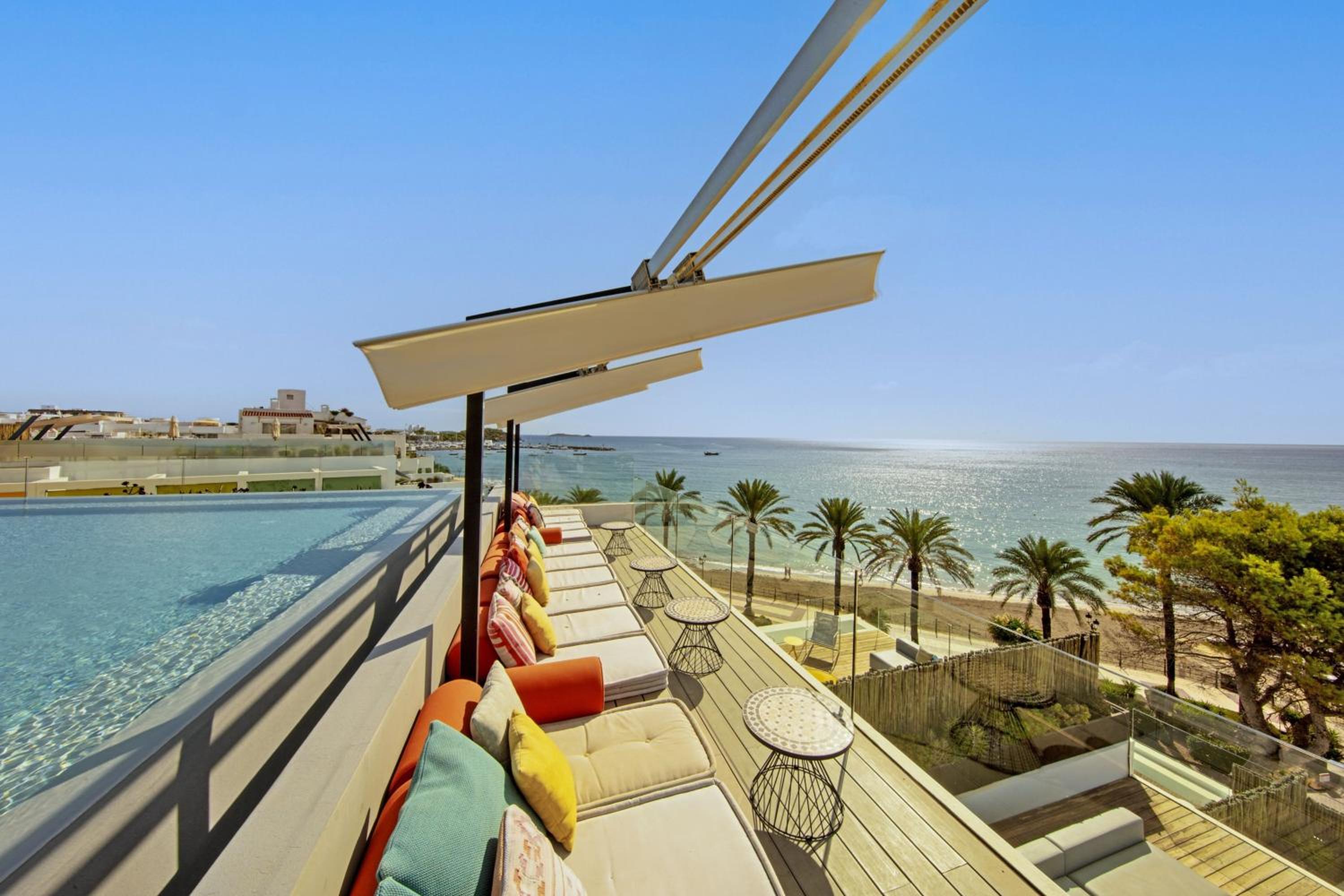 Located right on the beach and promenade, W Ibiza offers a luxurious stay with a rooftop pool overlooking Santa Eulalia Beach and a relaxing spa.