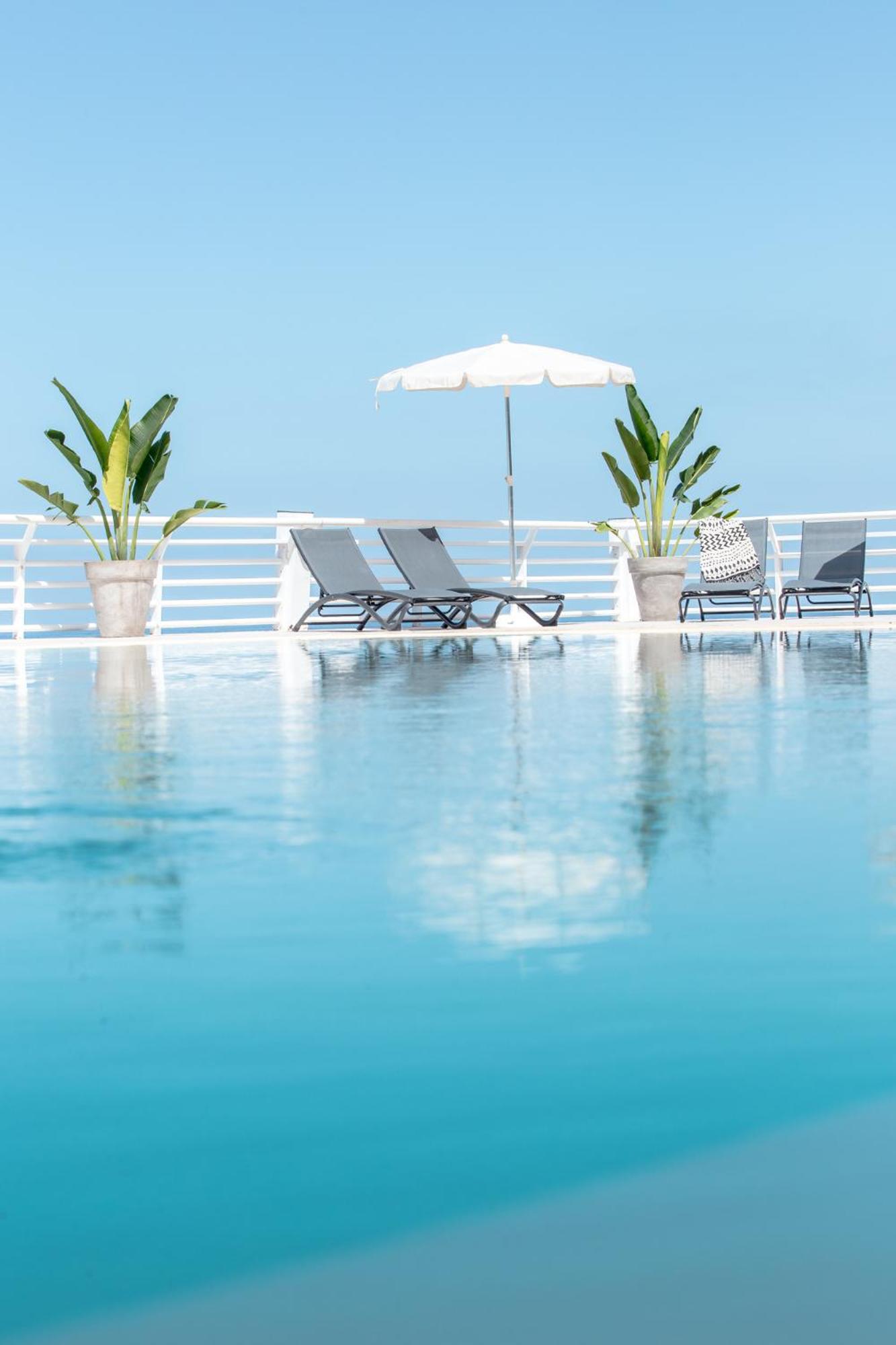 Très bel emplacement en bord de mer et belle piscine en terrasse. Bel espace extérieur de détente. Quartier calme le soir. Beaucoup de restaurants aux alentours.