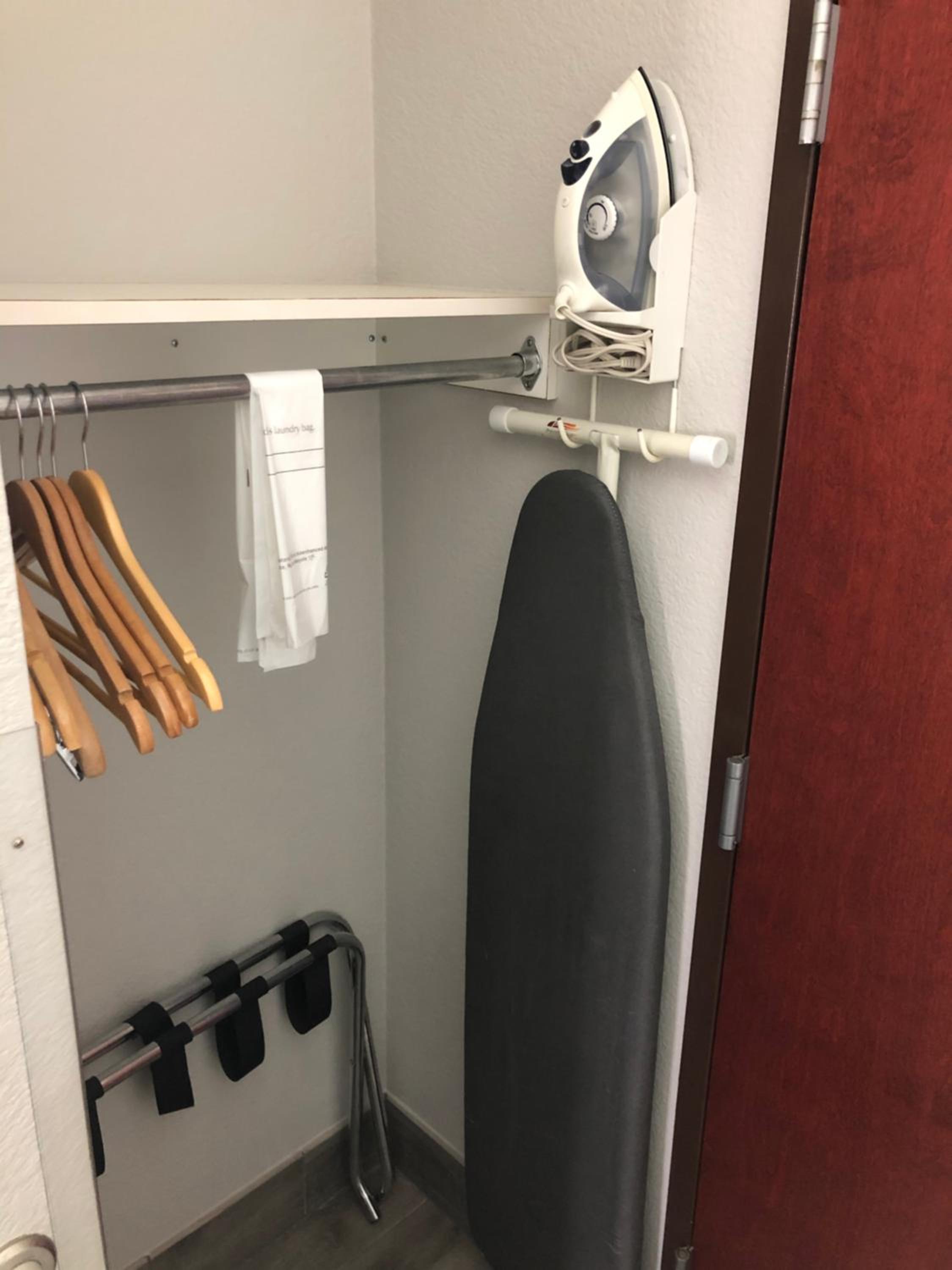 No coffee maker in the room, but there was coffee available in the breakfast room. The door to our closet was broken off the hinges, but luckily the door on the other side worked just fine.