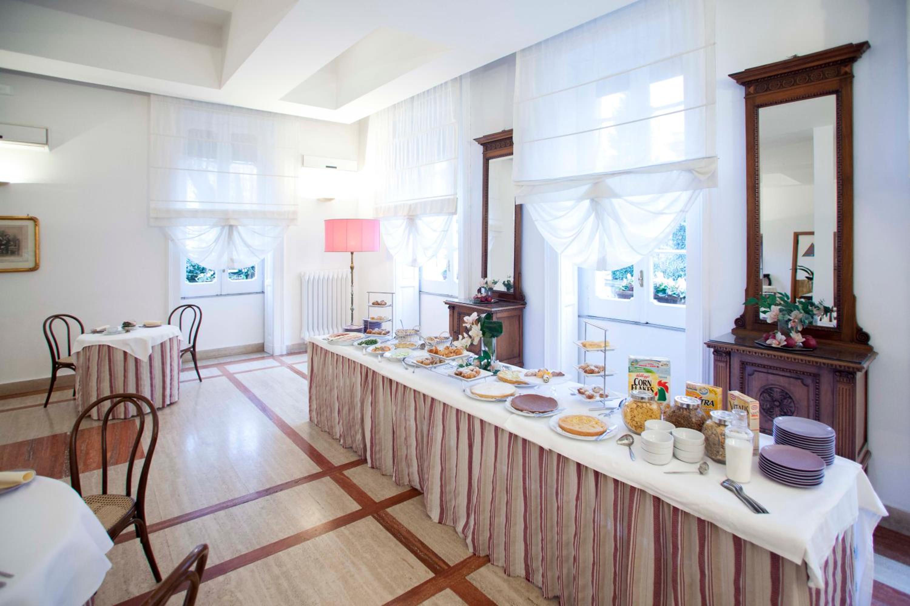 La gentilezza all’arrivo, il parcheggio interno custodito e gratuito. La grandezza della stanza, la centralità della struttura. La colazione abbondante e per ogni gusto.