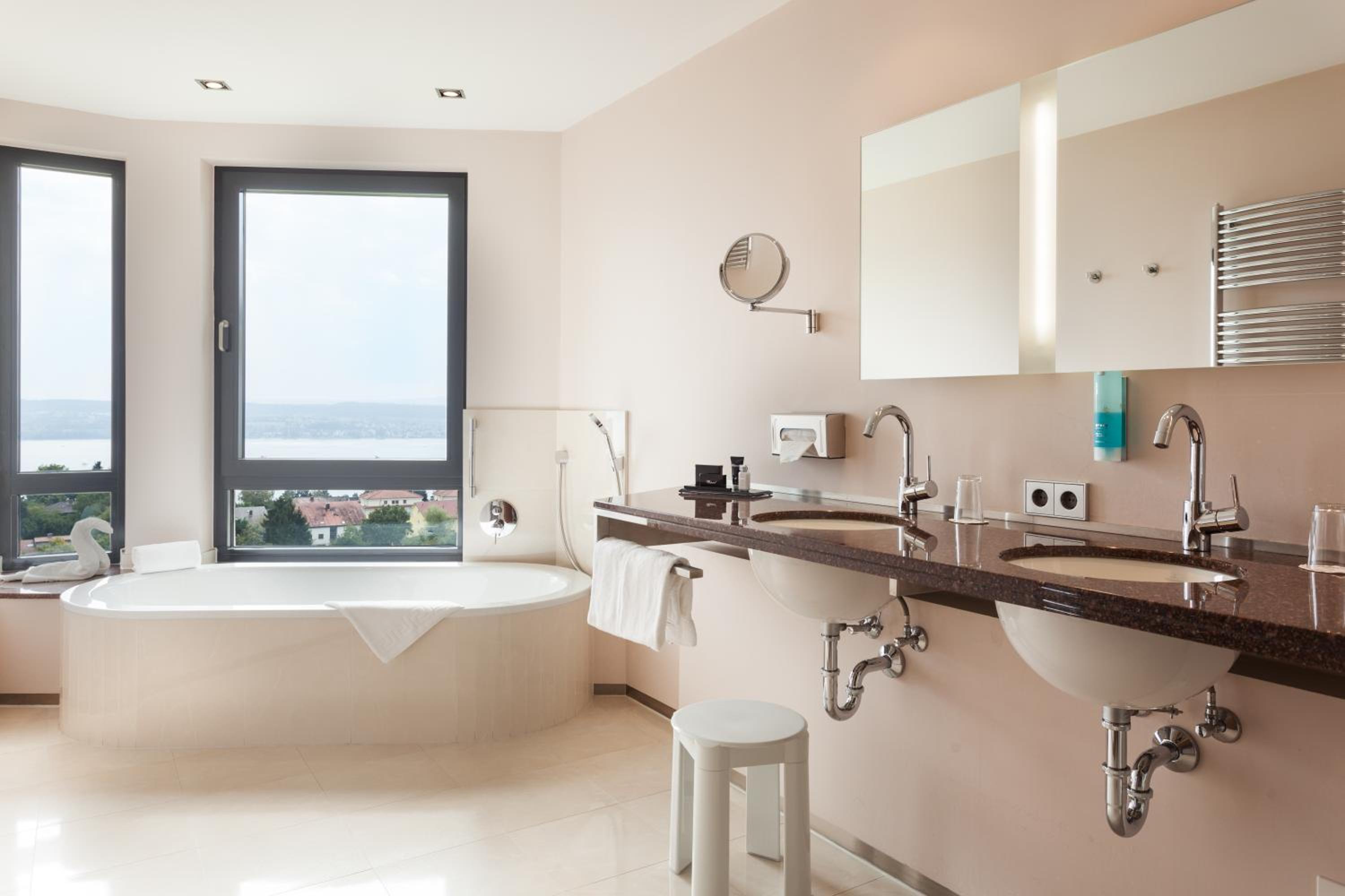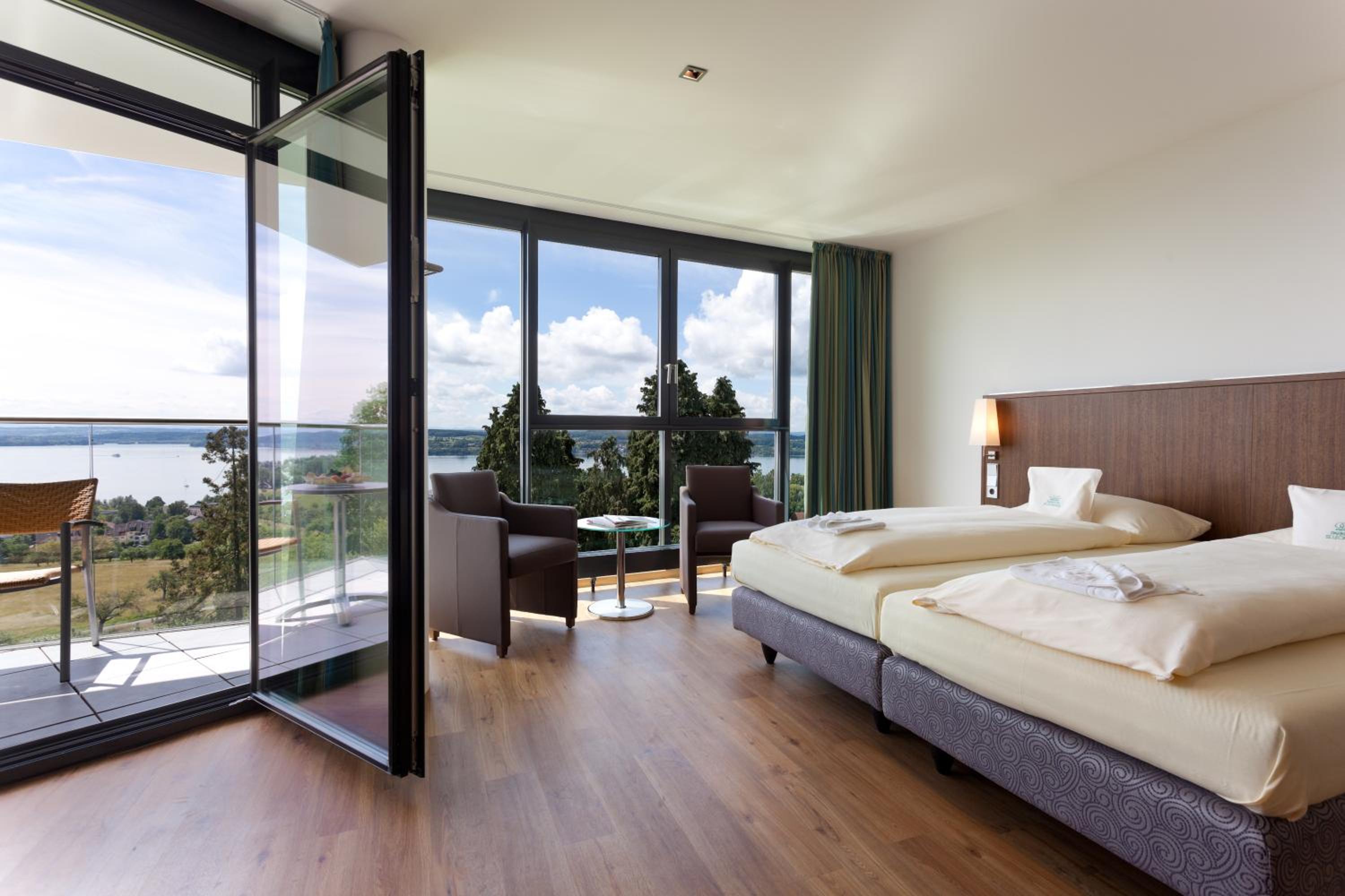 Enjoy breathtaking views of Lake Constance from the conservatory café and outdoor terrace all year round. Immerse yourself in the tranquil surroundings and unwind in the serene ambiance of the hotel.