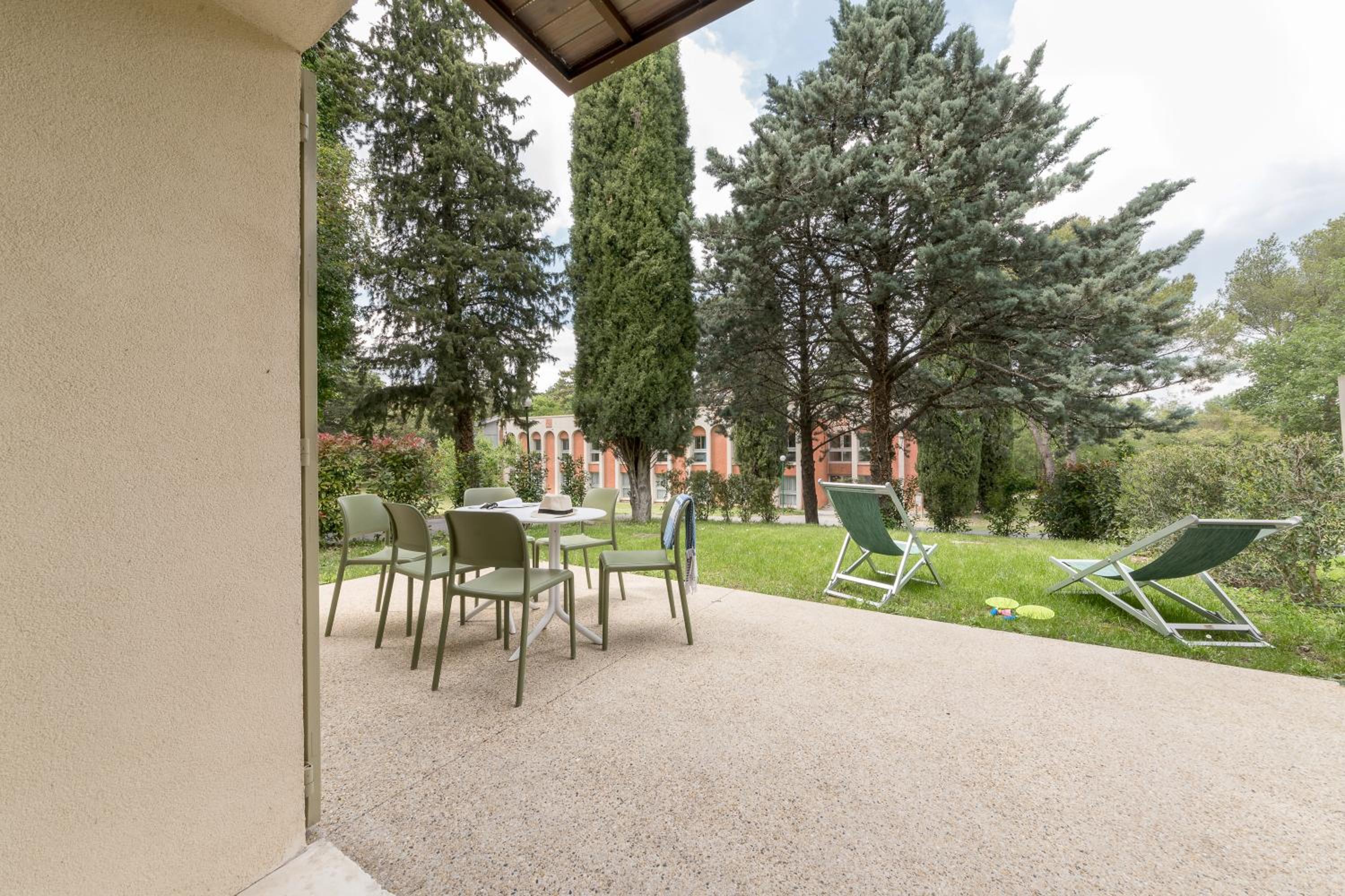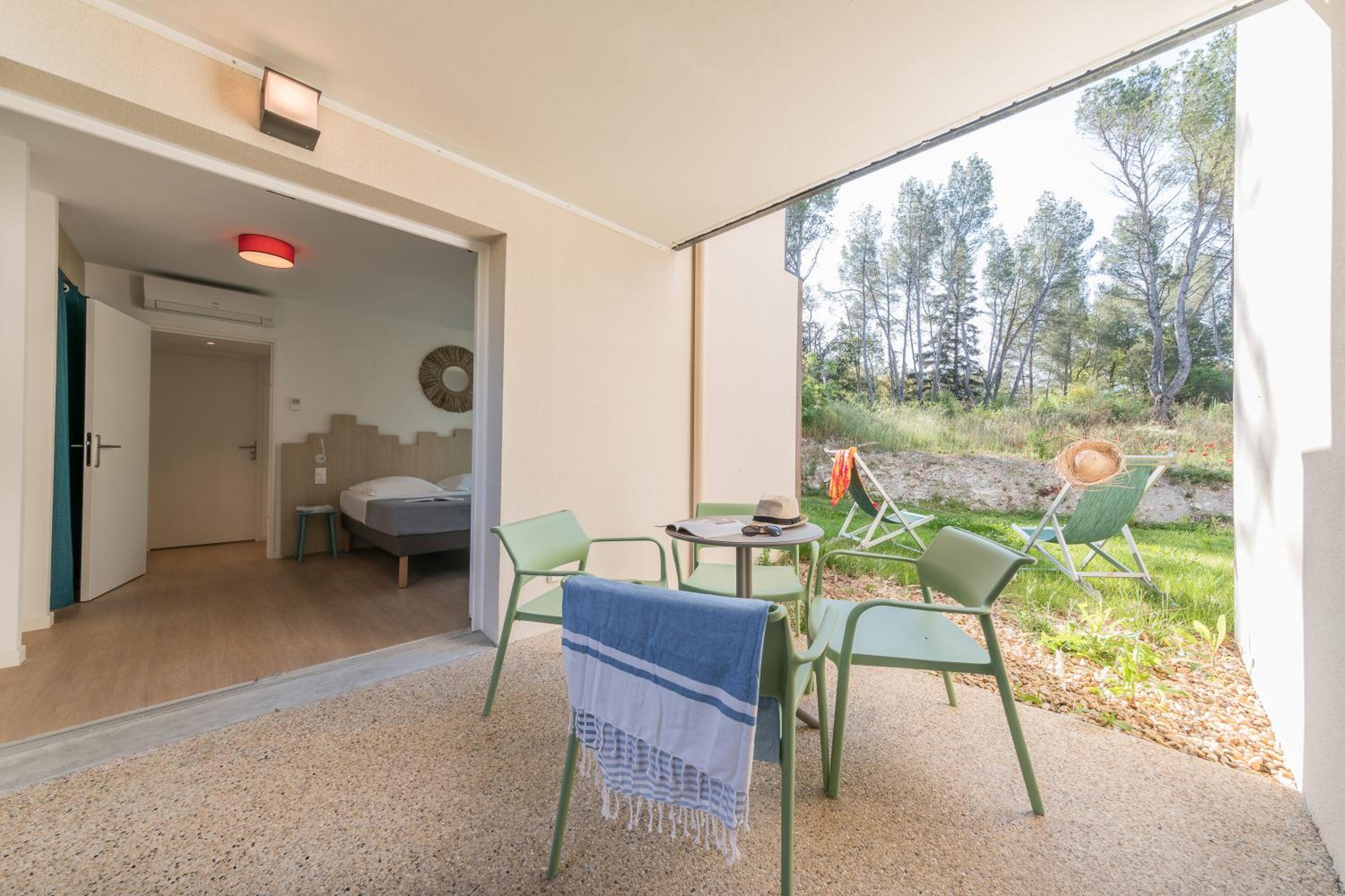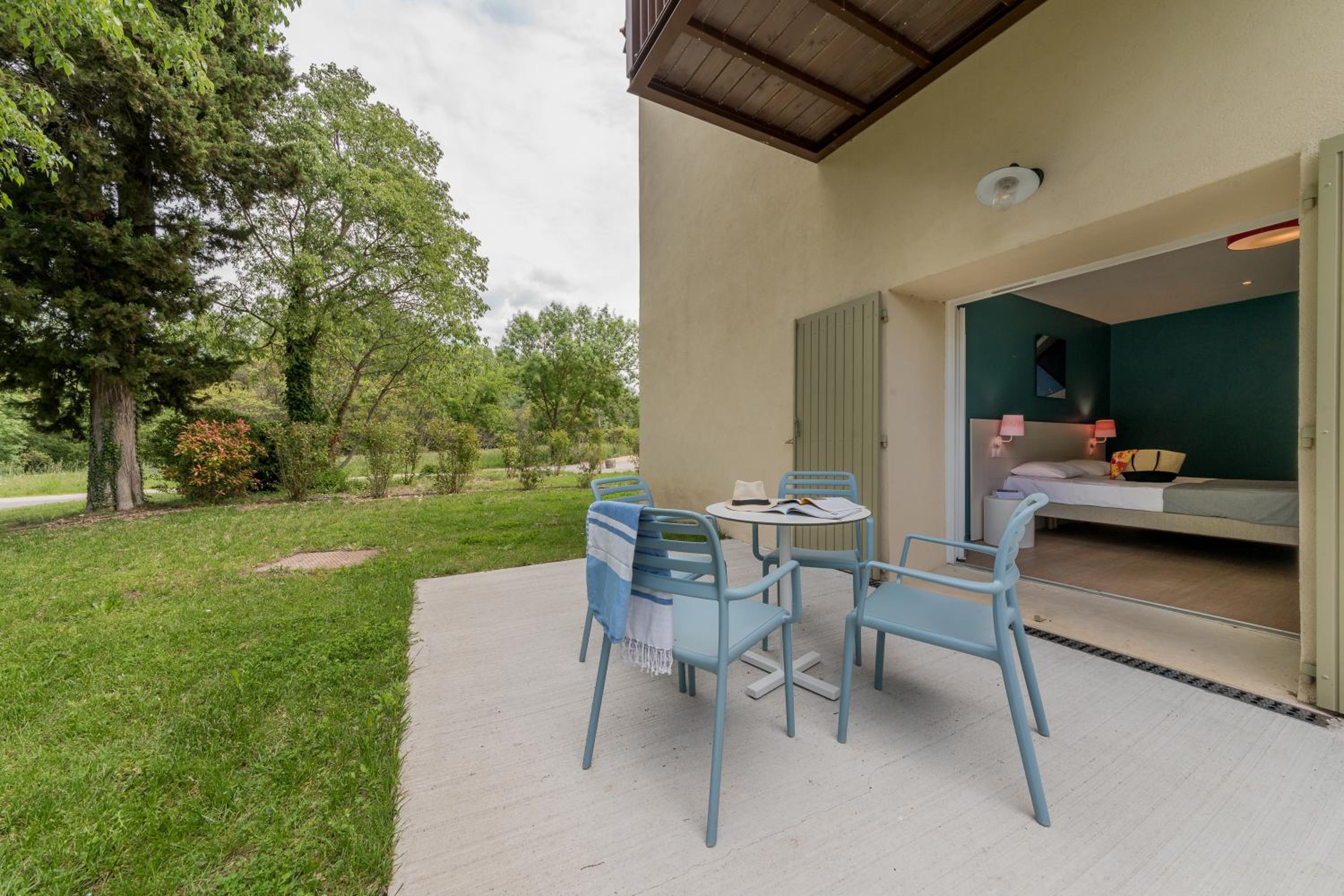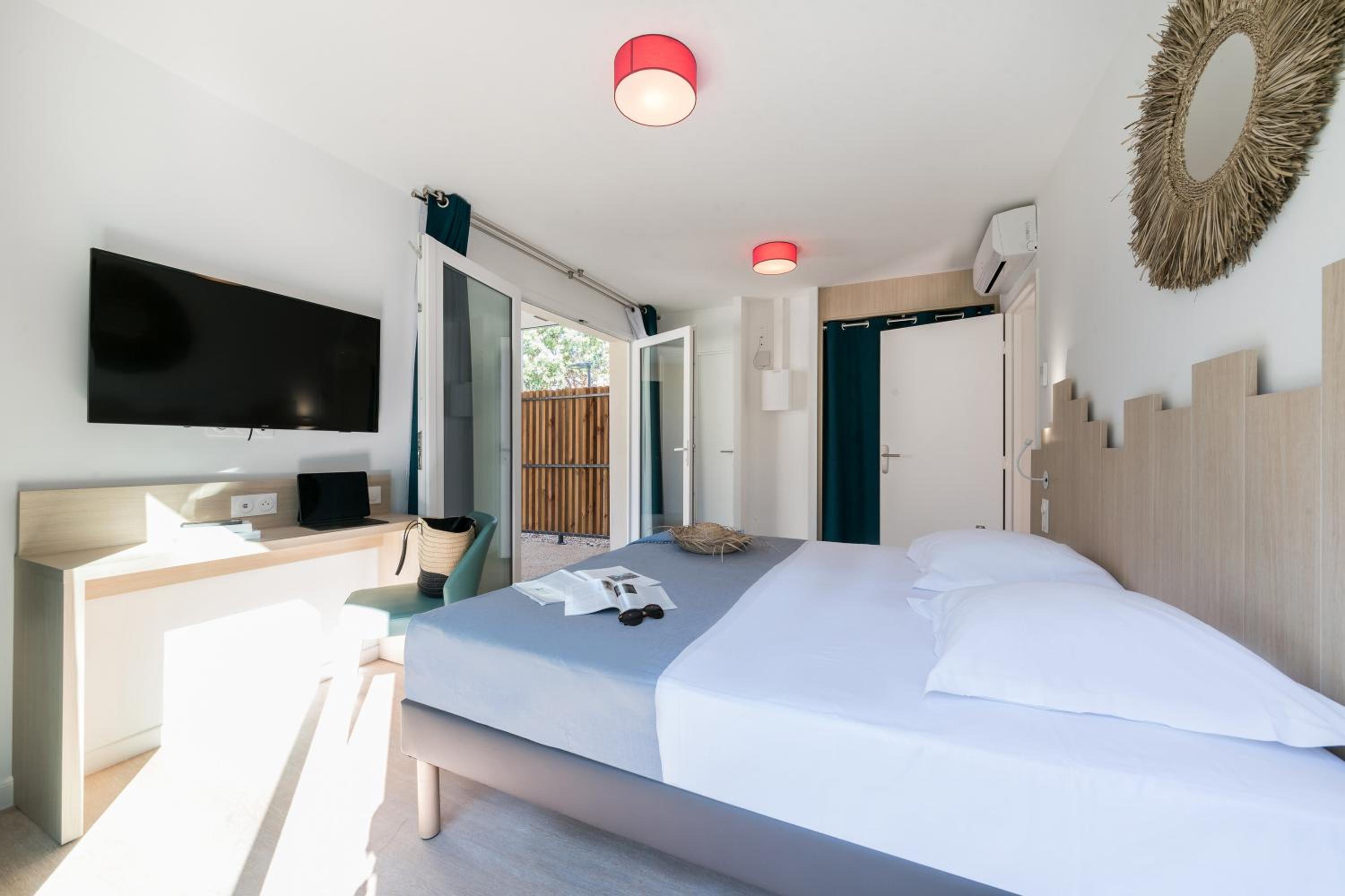 Unwind in our spacious guest rooms that open onto beautiful gardens and a furnished terrace, equipped with modern amenities for a comfortable stay.