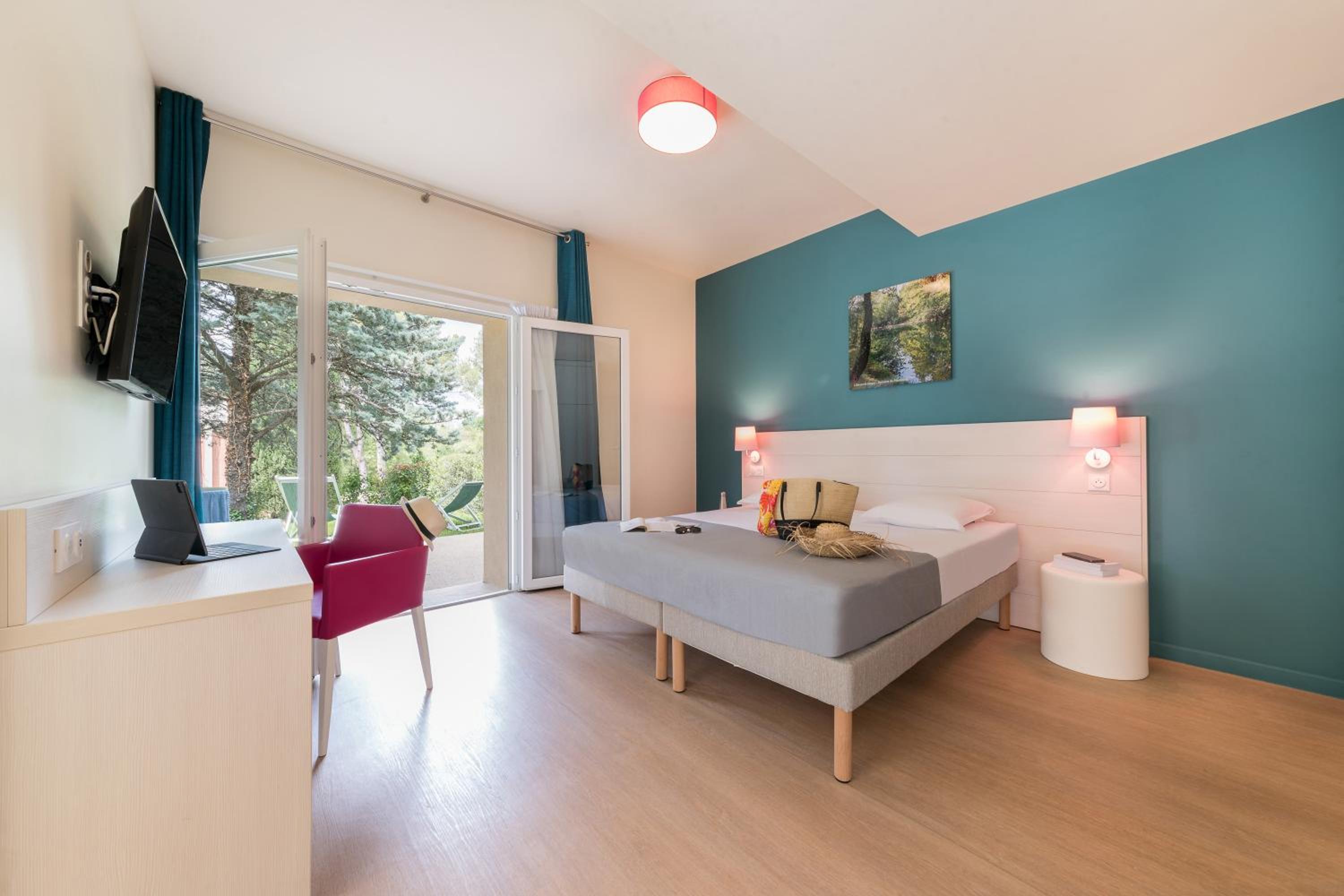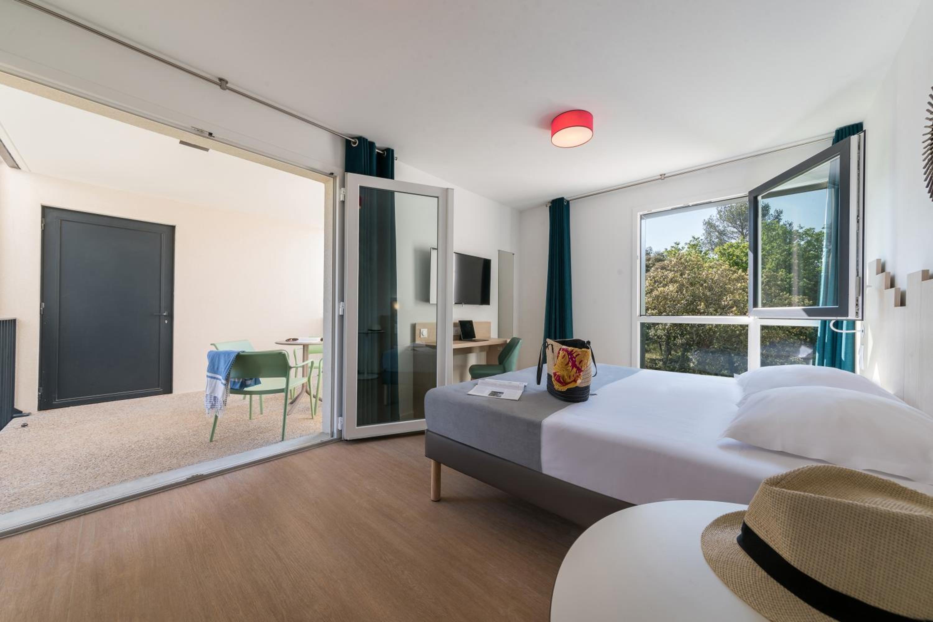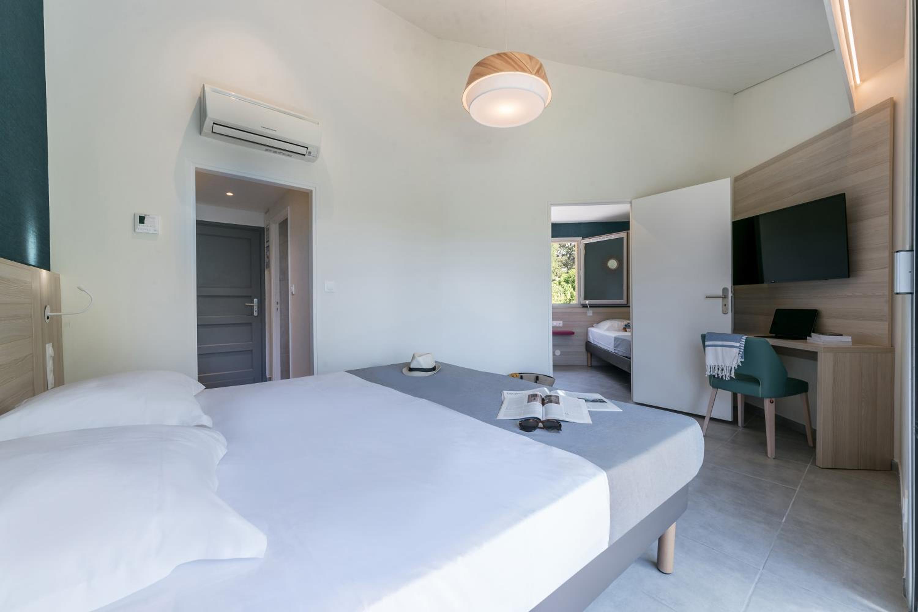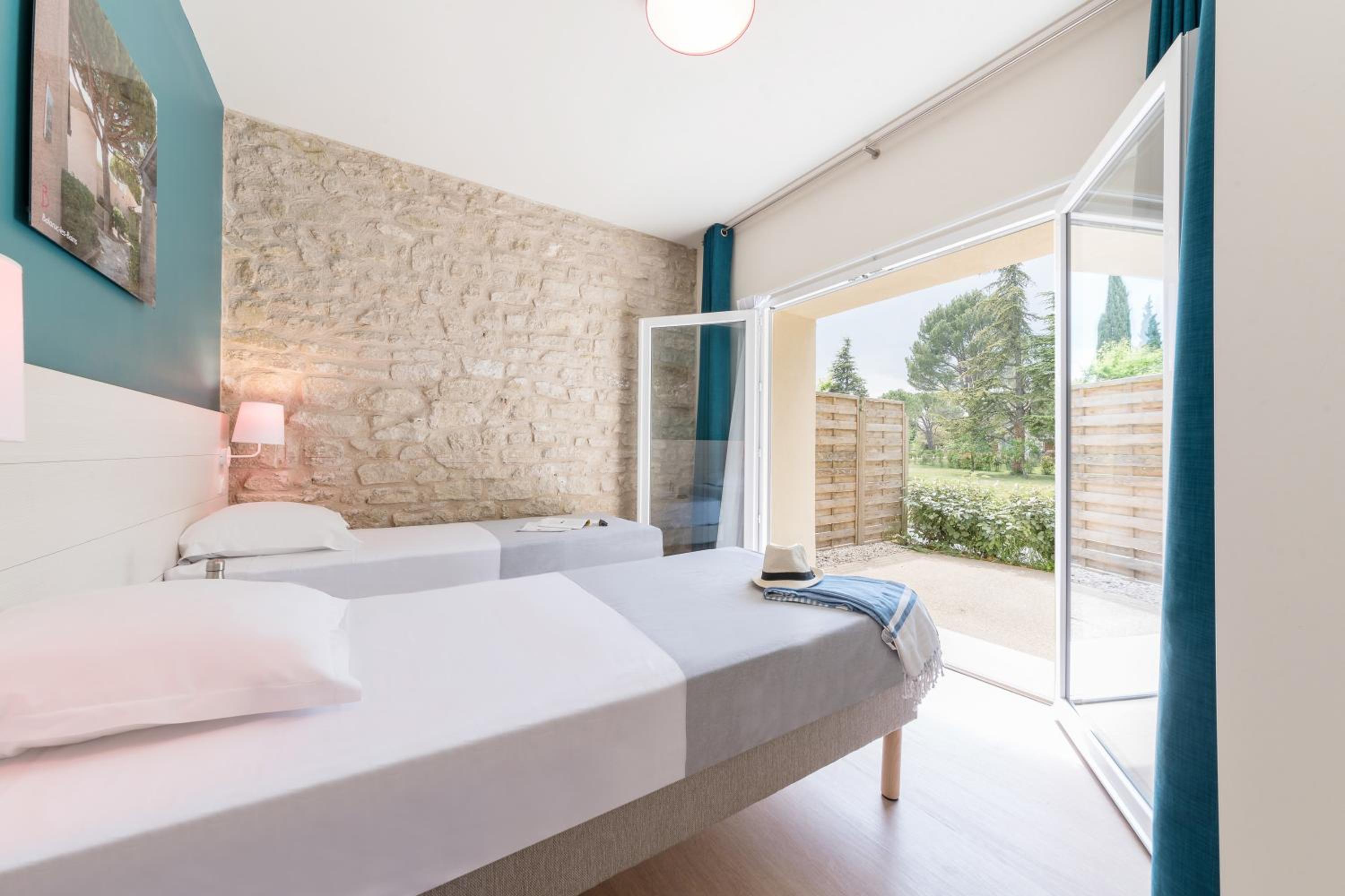 Unwind in our spacious guest rooms that open onto beautiful gardens and a furnished terrace, equipped with modern amenities for a comfortable stay.