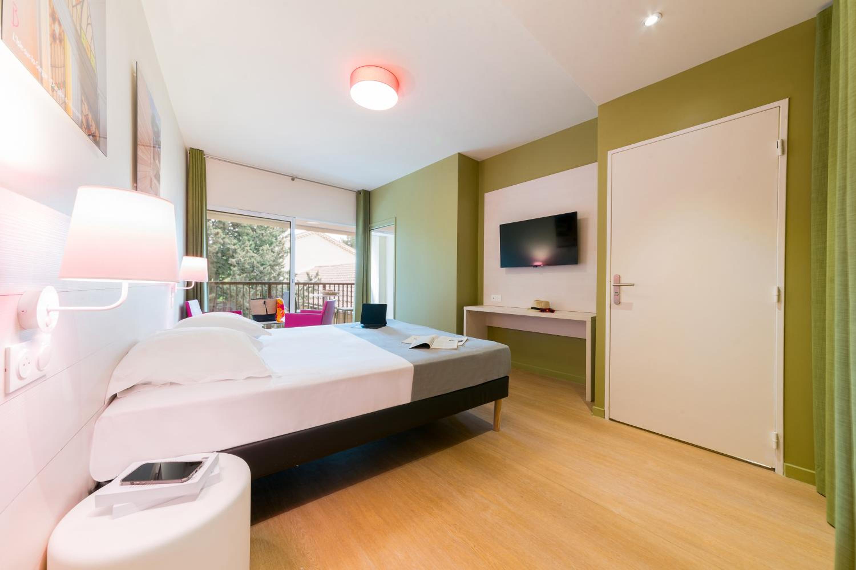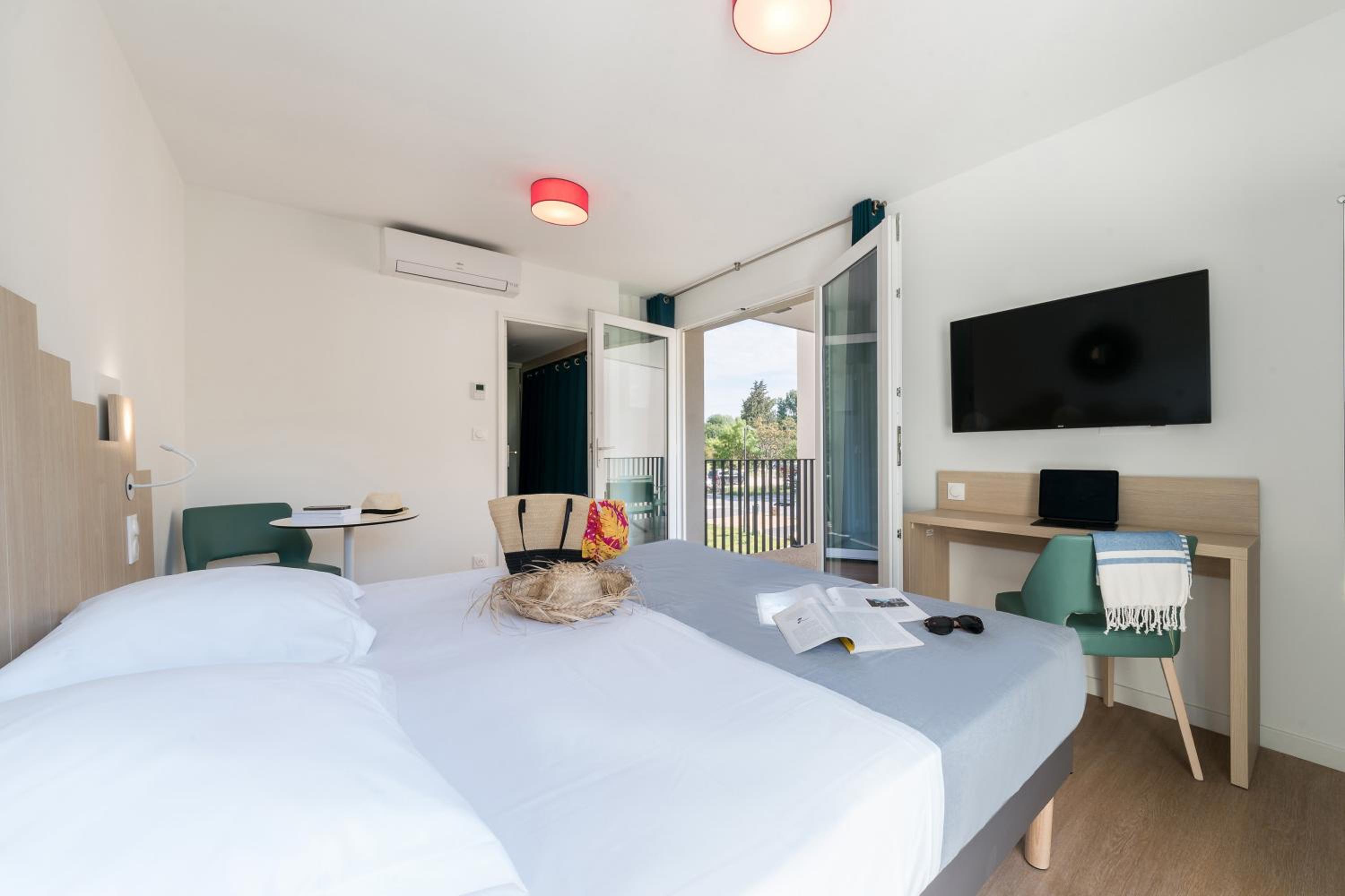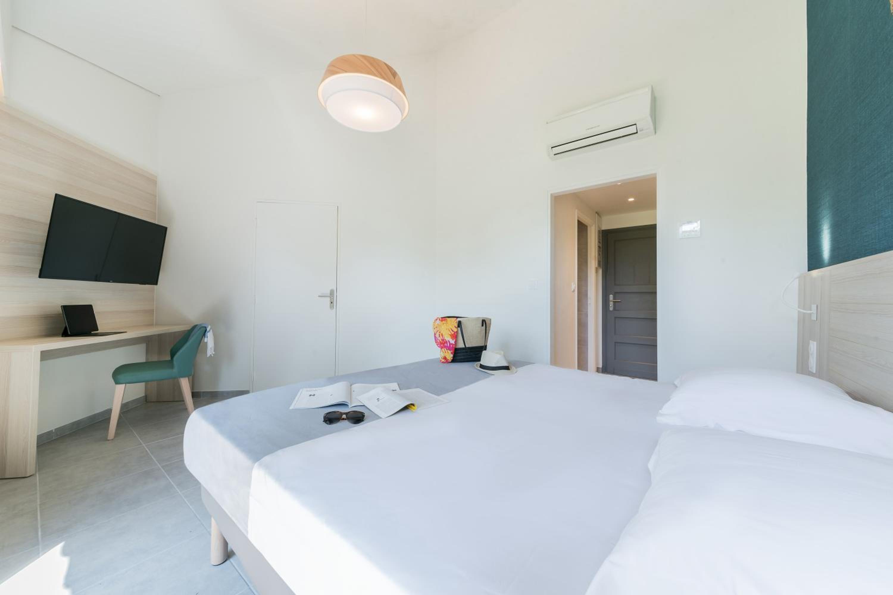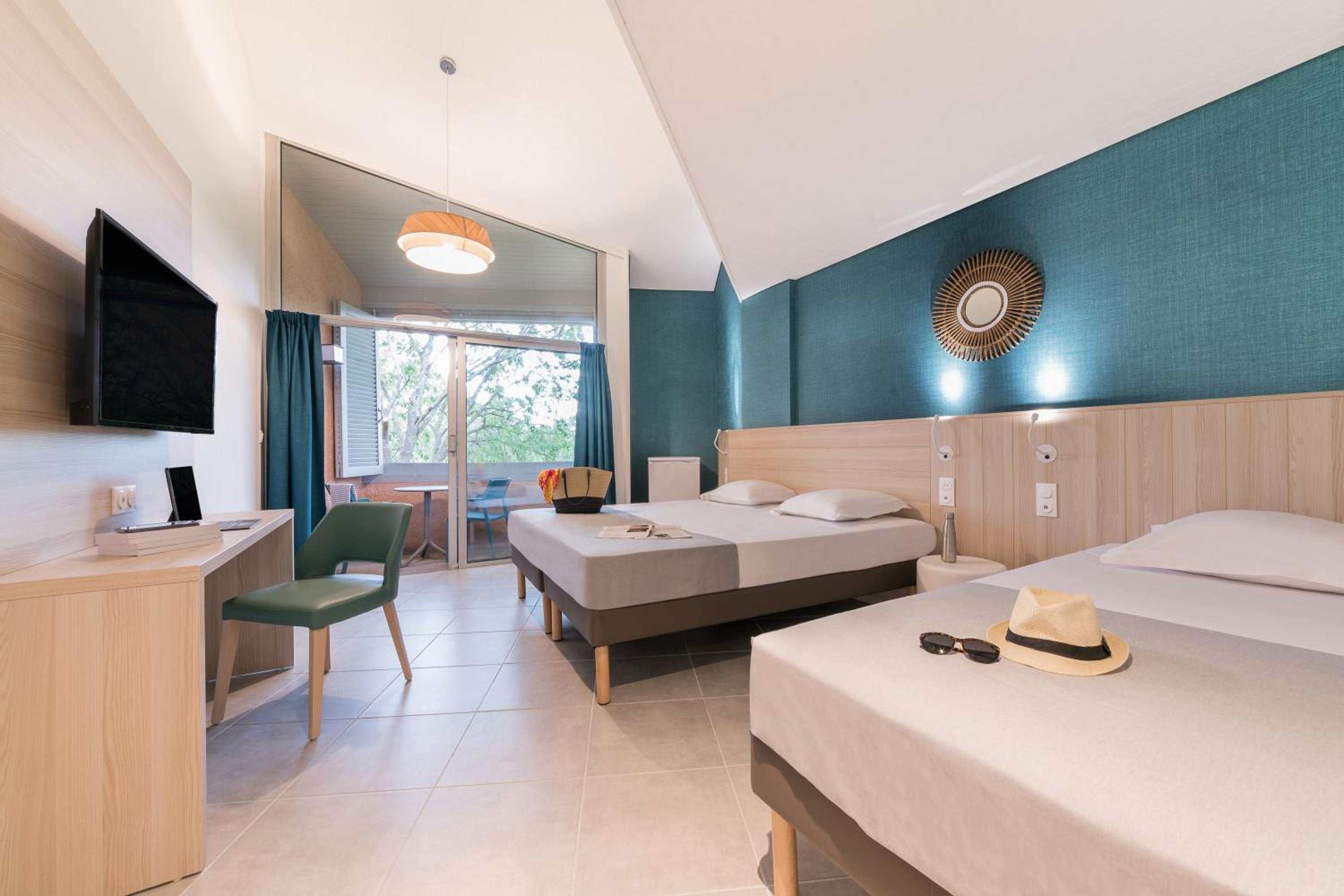 Unwind in our spacious guest rooms that open onto beautiful gardens and a furnished terrace, equipped with modern amenities for a comfortable stay.