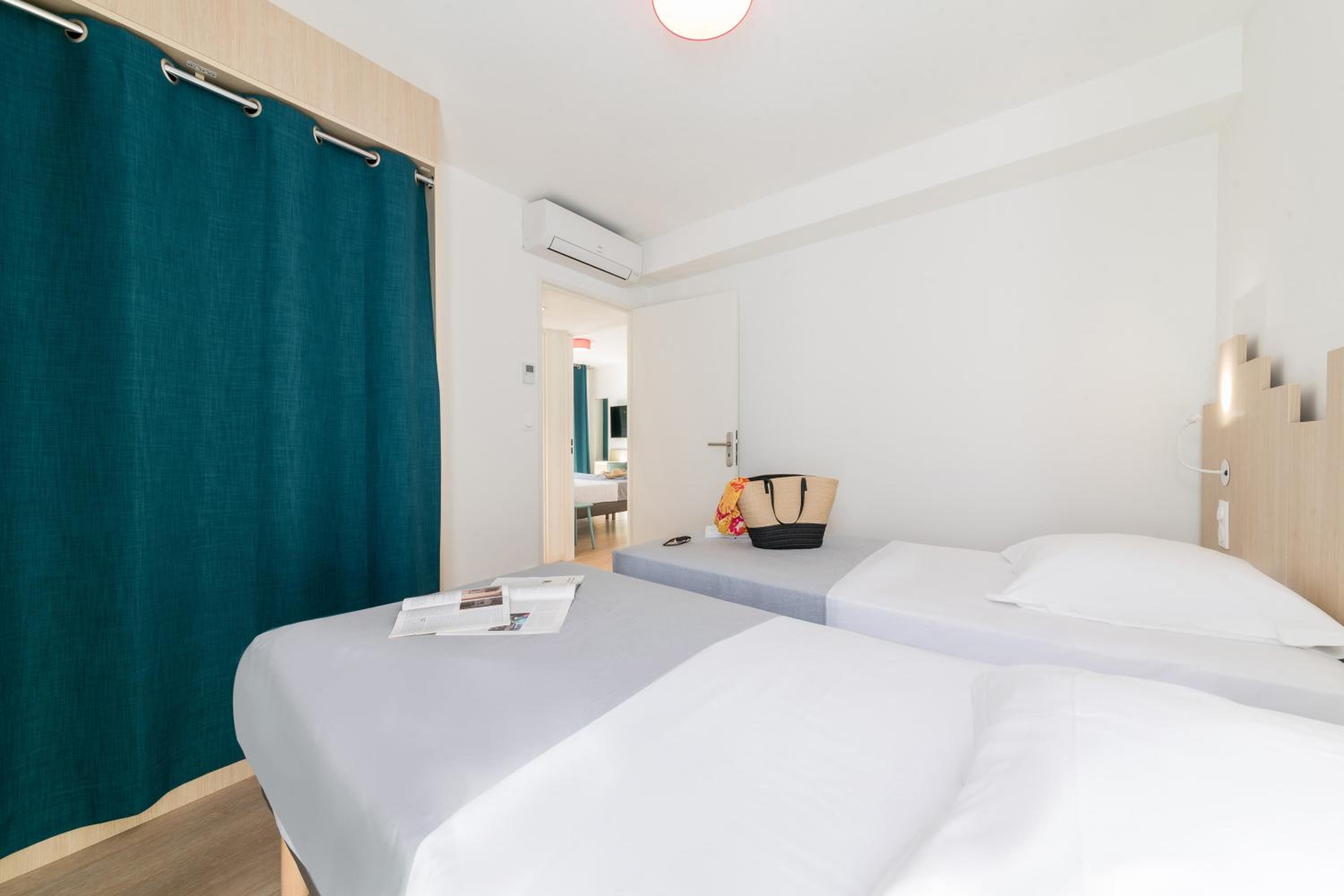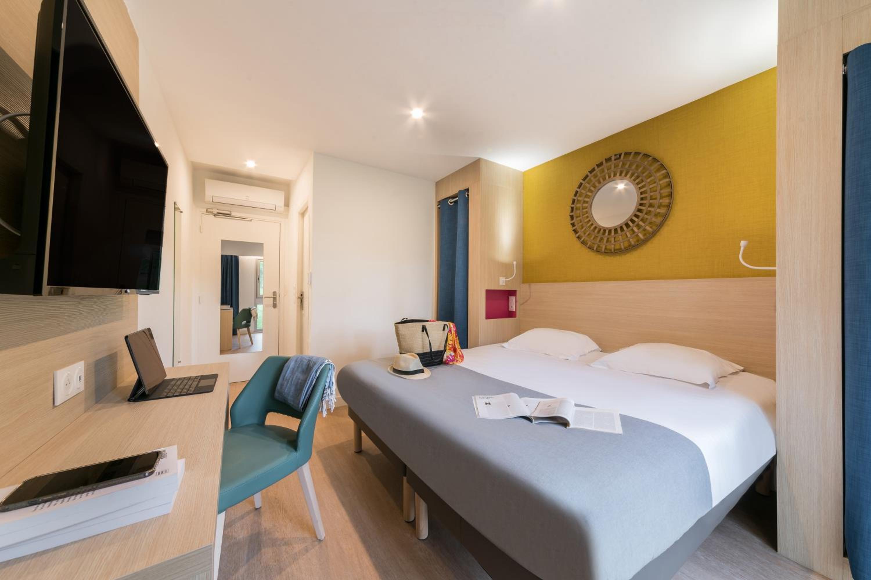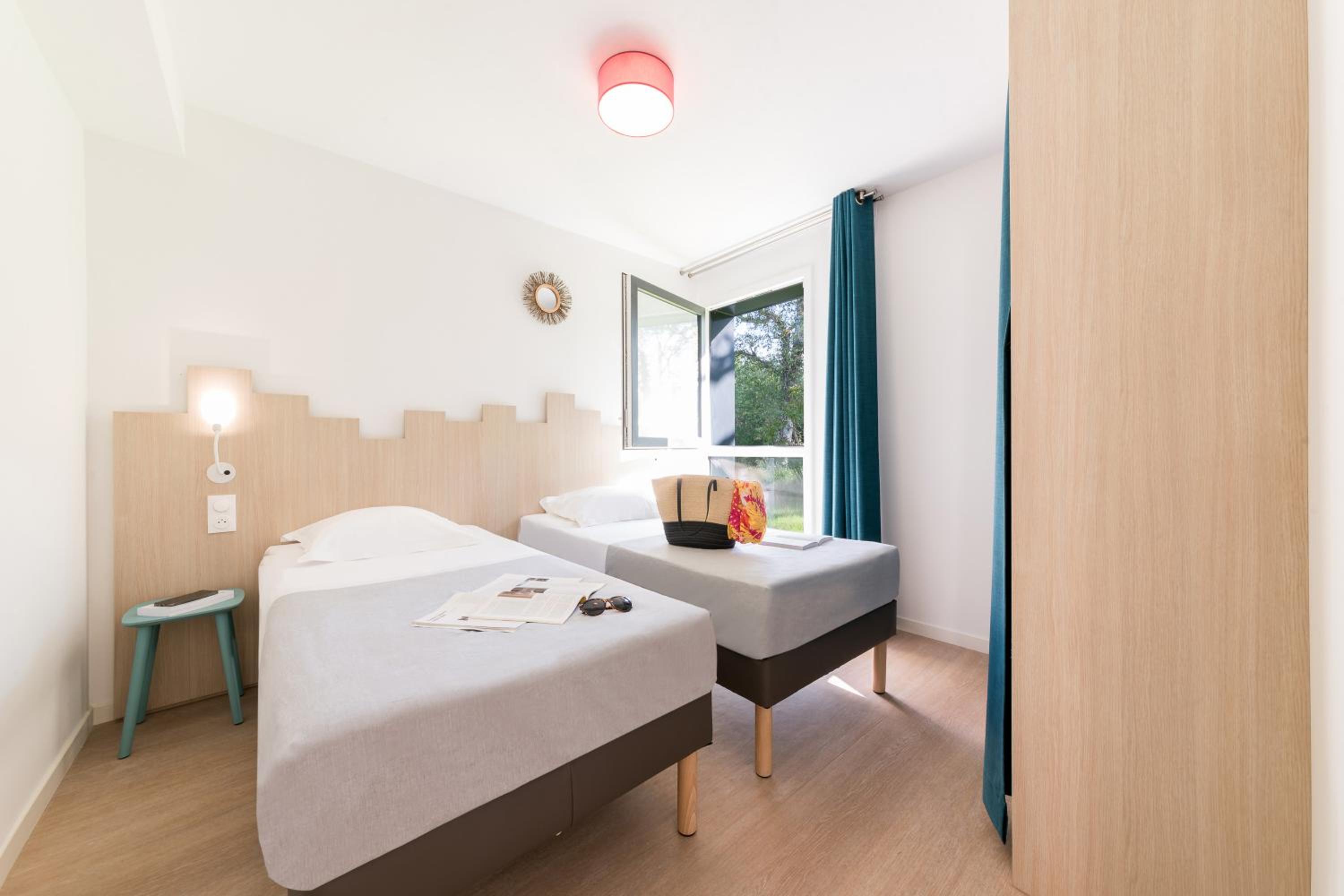 Nous étions logés dans le bâtiment Maset réservé aux couples. Les chambres sont quasi neuves, c'est très propre. Mais en entrant dans la chambre nous avons été accueillis par une très forte odeur d'égout de fosse septique liée à des remontées d'eau d'assainissement car il avait beaucoup plu, nous a-t-on dit à la reception. Après un changement de chambre, toujours avec une légère odeur mais cette fois-ci supportable, nous avons passé un agréable séjour. Ce site est à recommander pour les familles, l'environnement naturel est agréable et les activités pour la famille y sont nombreuses. Le self est très correct, spacieux et bien achalandé.
