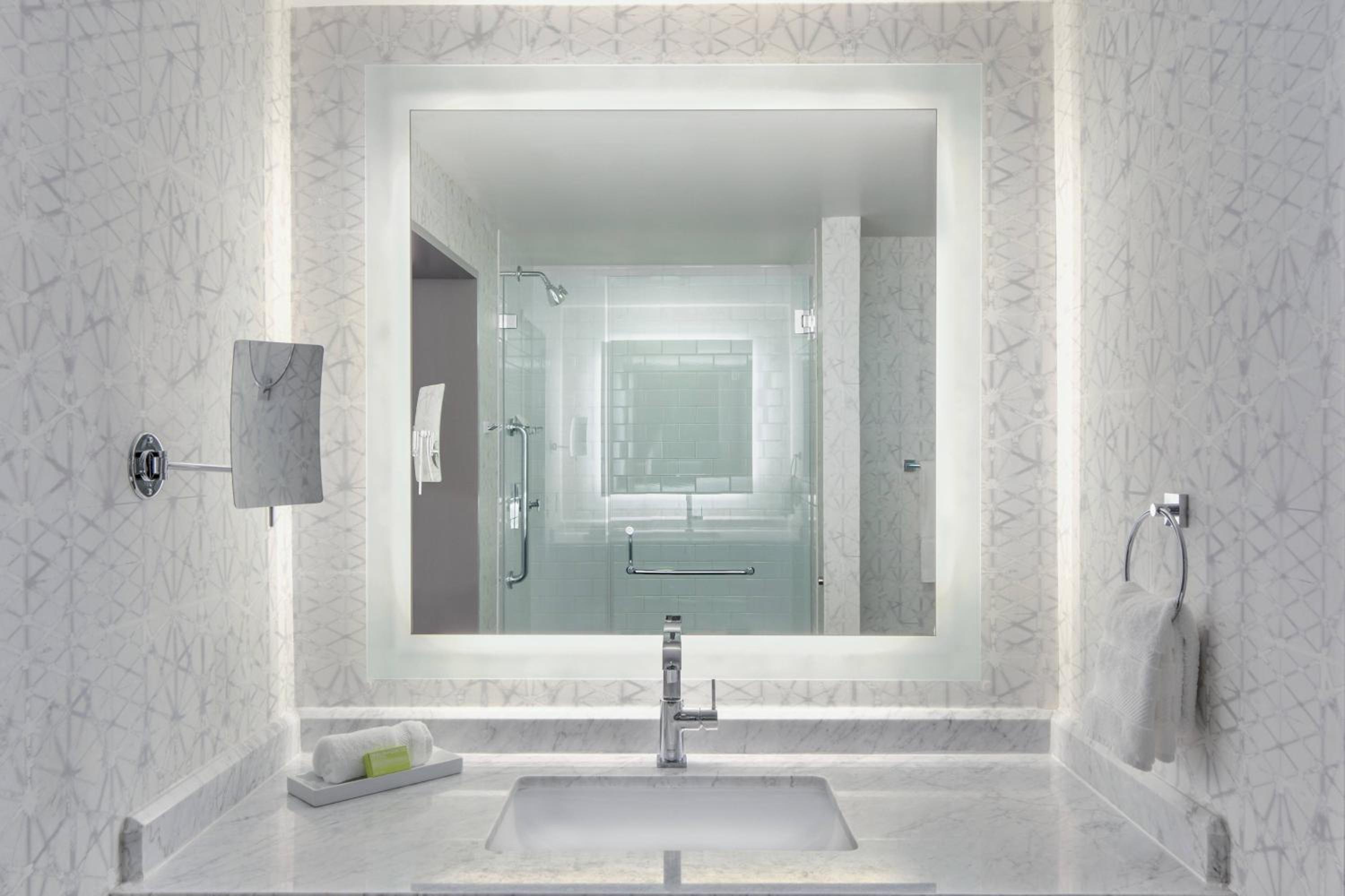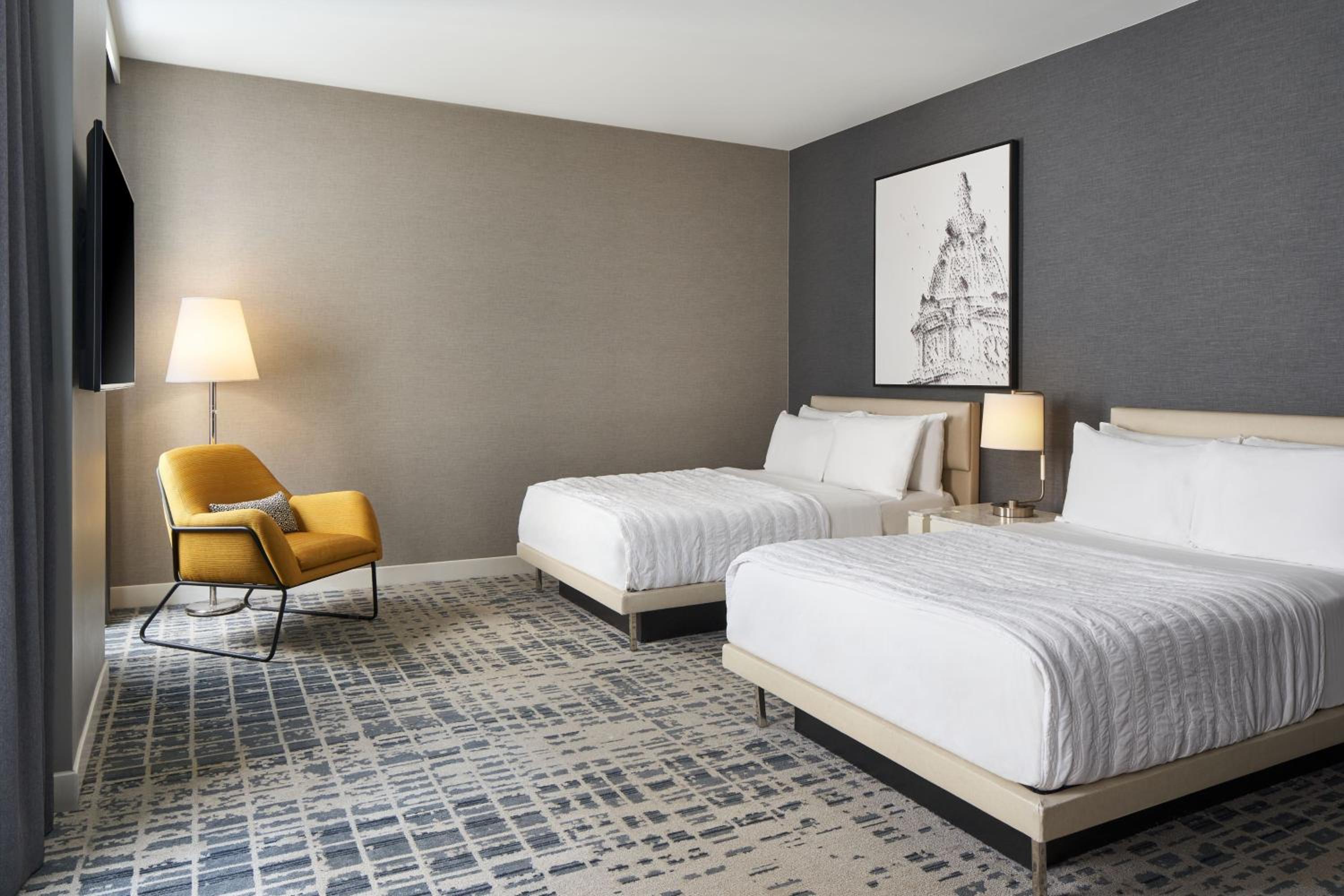 Indulge in the comfort of guest rooms at Le Meridien Philadelphia, featuring a 55-inch flat-screen TV, iPod docking station, and upscale amenities like bottled water and a minibar.