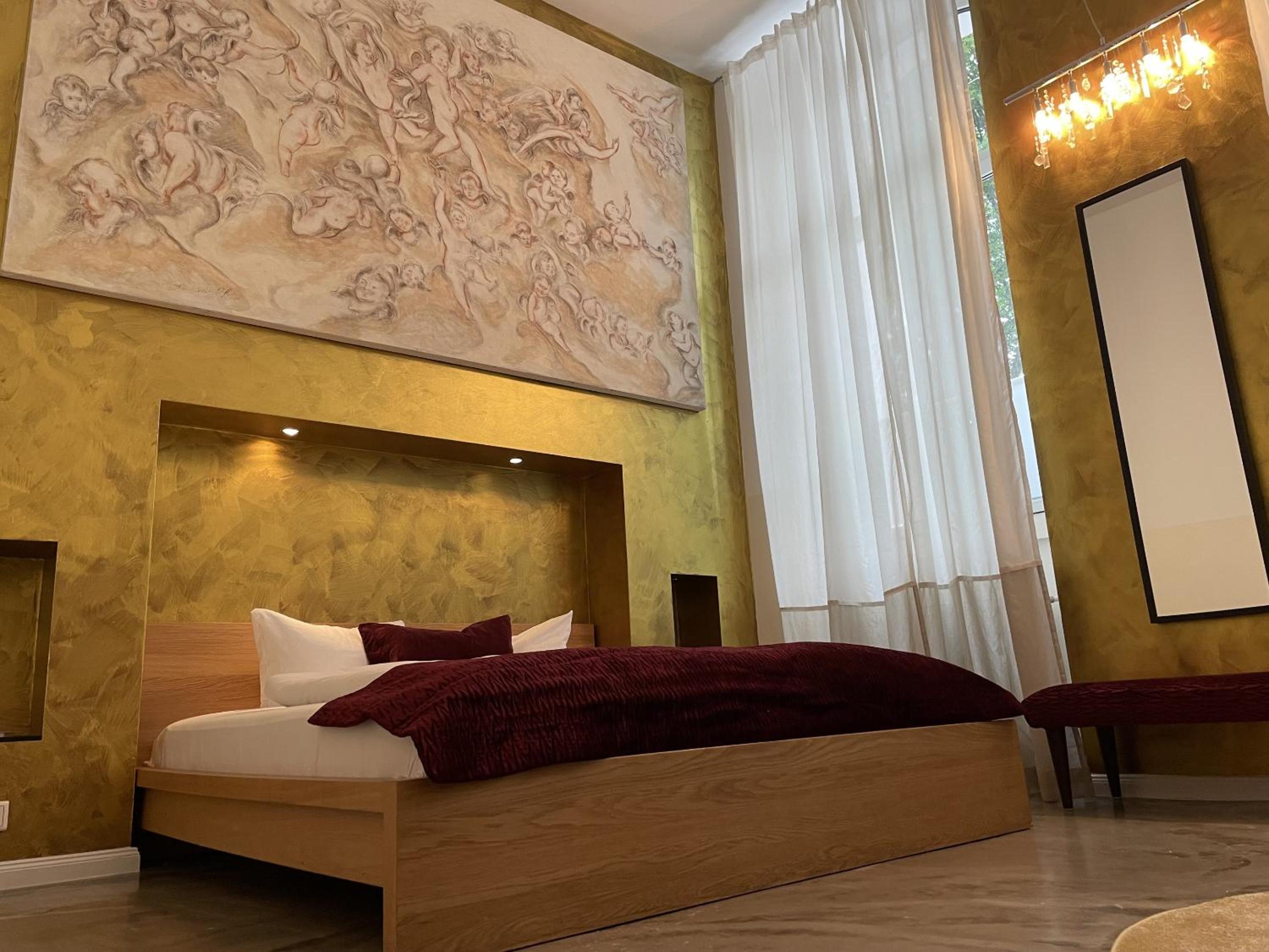 Das Zimmer ist halt mit "moderner Kunst" eingerichtet, der Fußboden aus blankem Beton (?) eher ziemlich kalt, und leider nicht wirklich gemütlich. Für eine Nacht/Übernachtung aber durchaus okay.