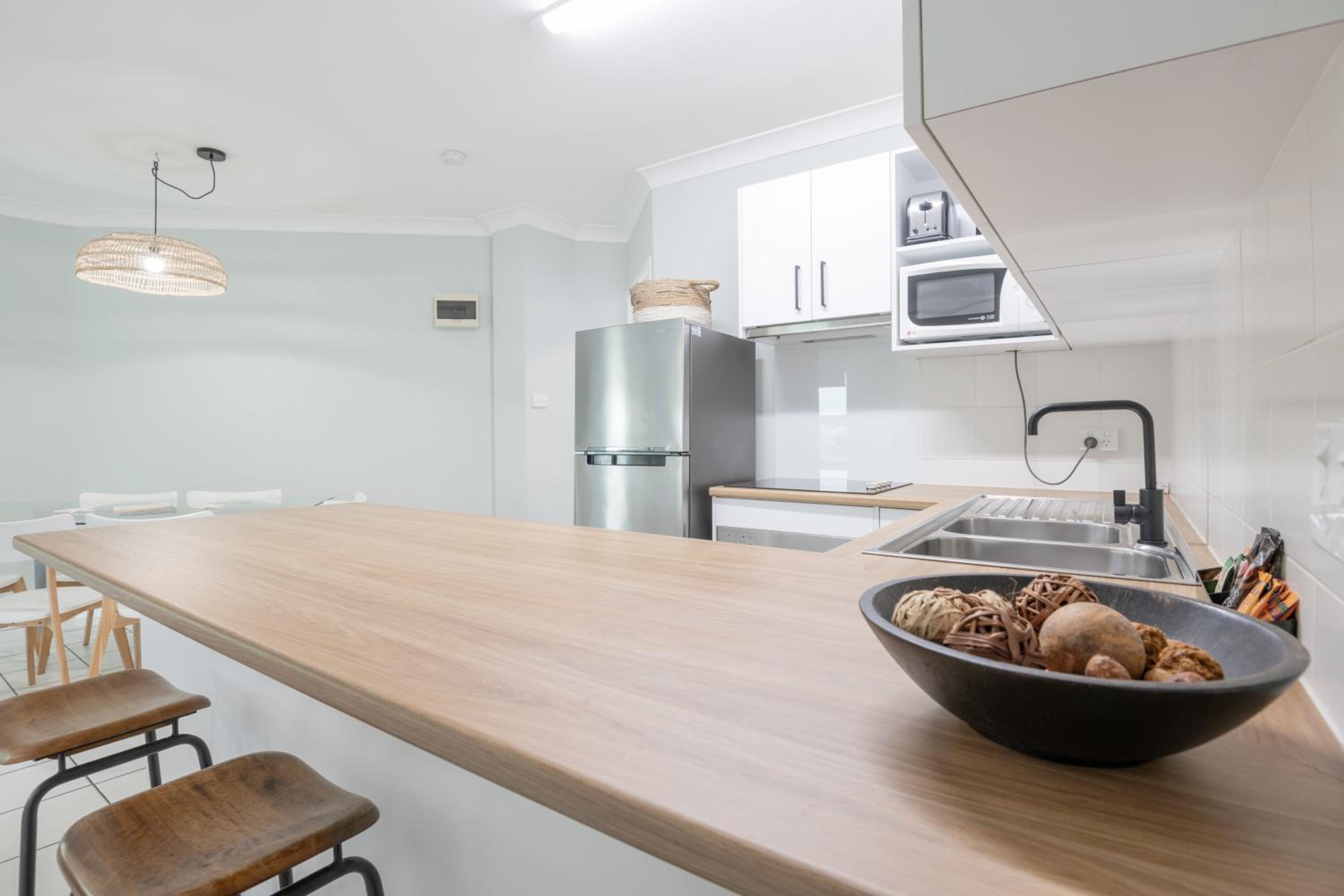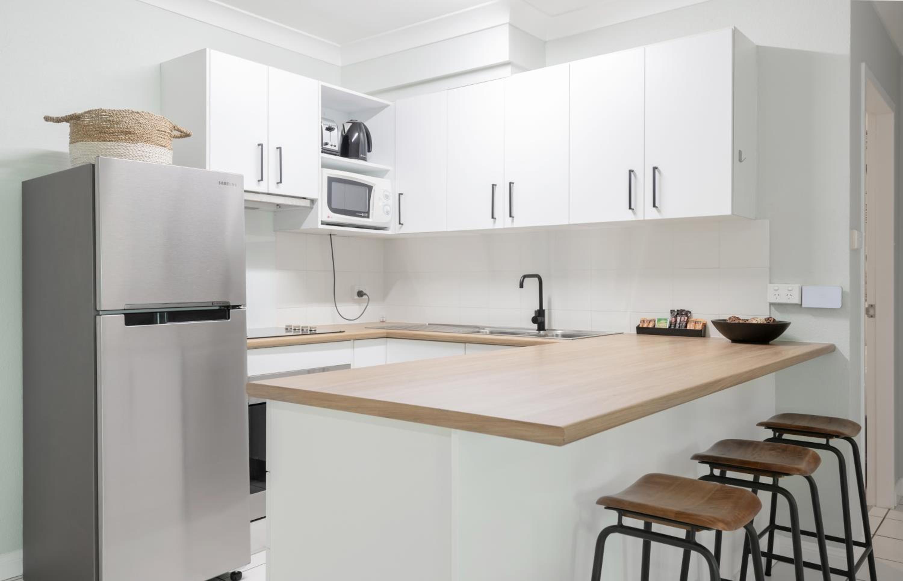 Staff were friendly and helpful. It was great having a full kitchen and laundry facility. Walking distance to the beach and the shops.