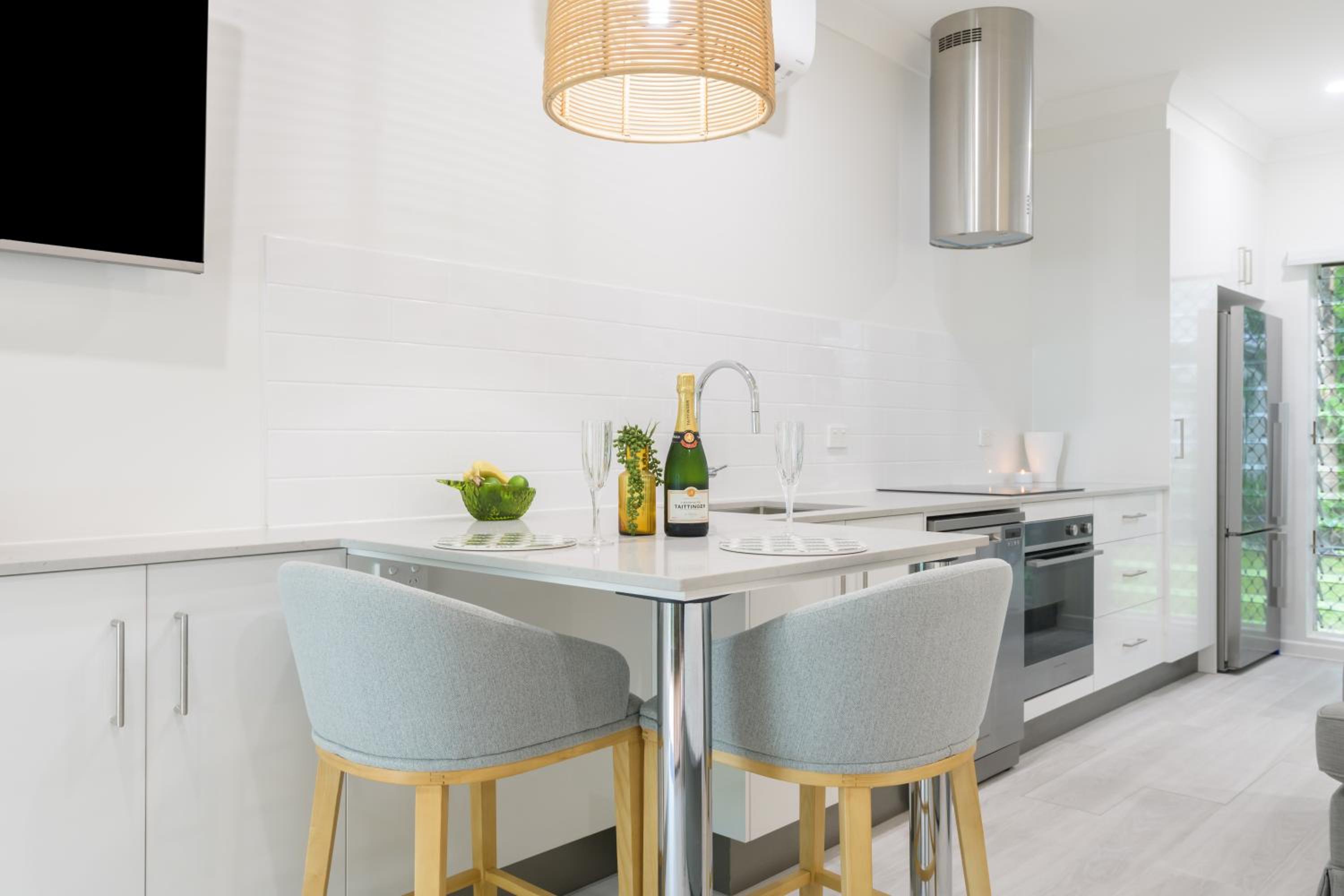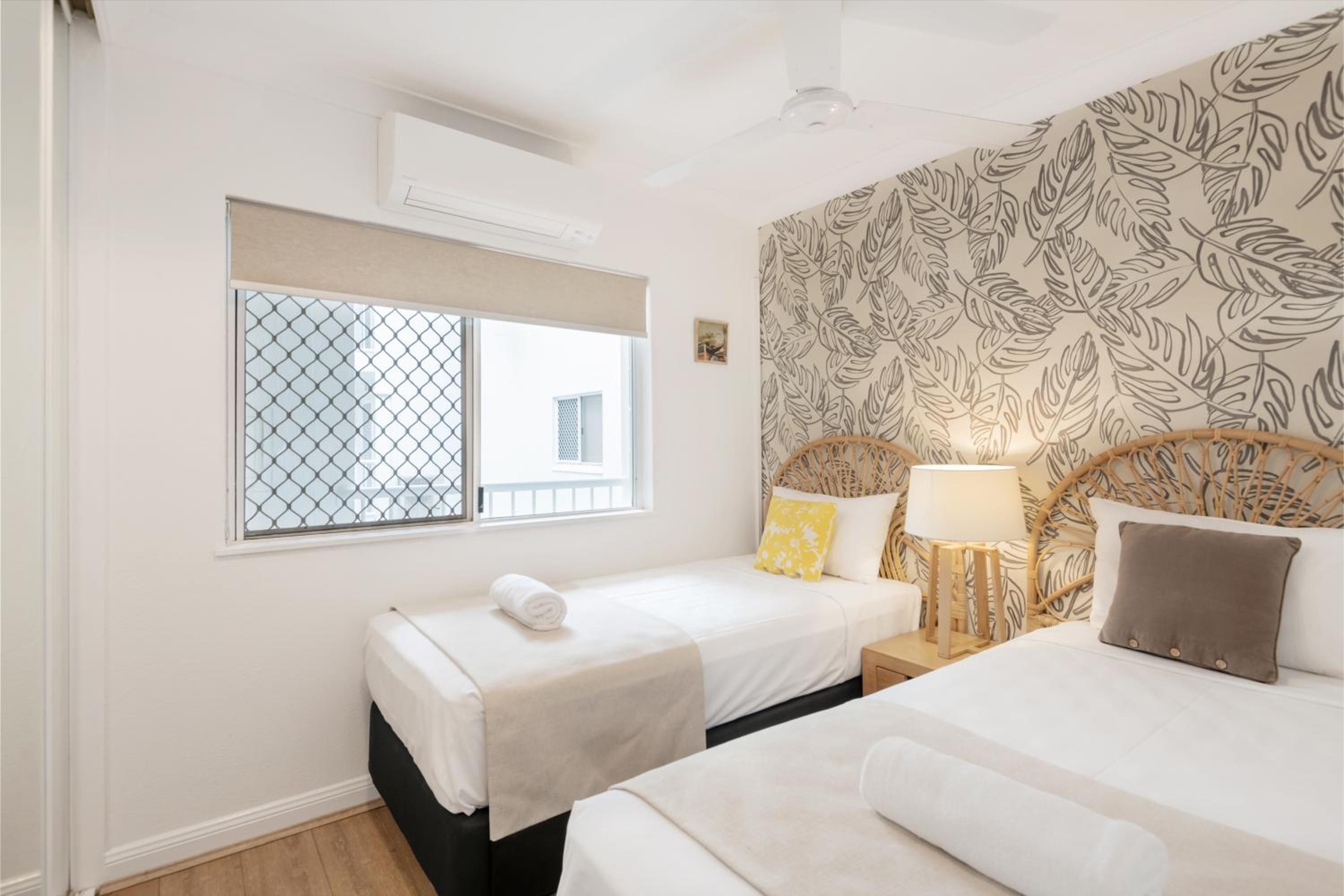 Location, location, location. And a clean, warm pool, great hosts who go out of their way to help, onsite undercover parking, two minutes' walk to the beach, close to Macrossan St shops, well equipped kitchen air con in all rooms.