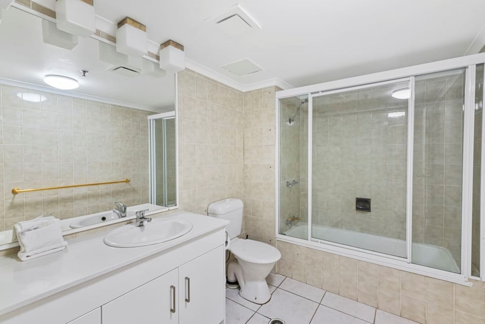 Stayed here a few times. Great location. All apartments have a great view. Getting a bit run down. Needs an update. Sliding doors don’t seal up. Wind whistling noises from ensuite window. Not bad for the price tho. Heated pool and spa was nice. Easy parking.