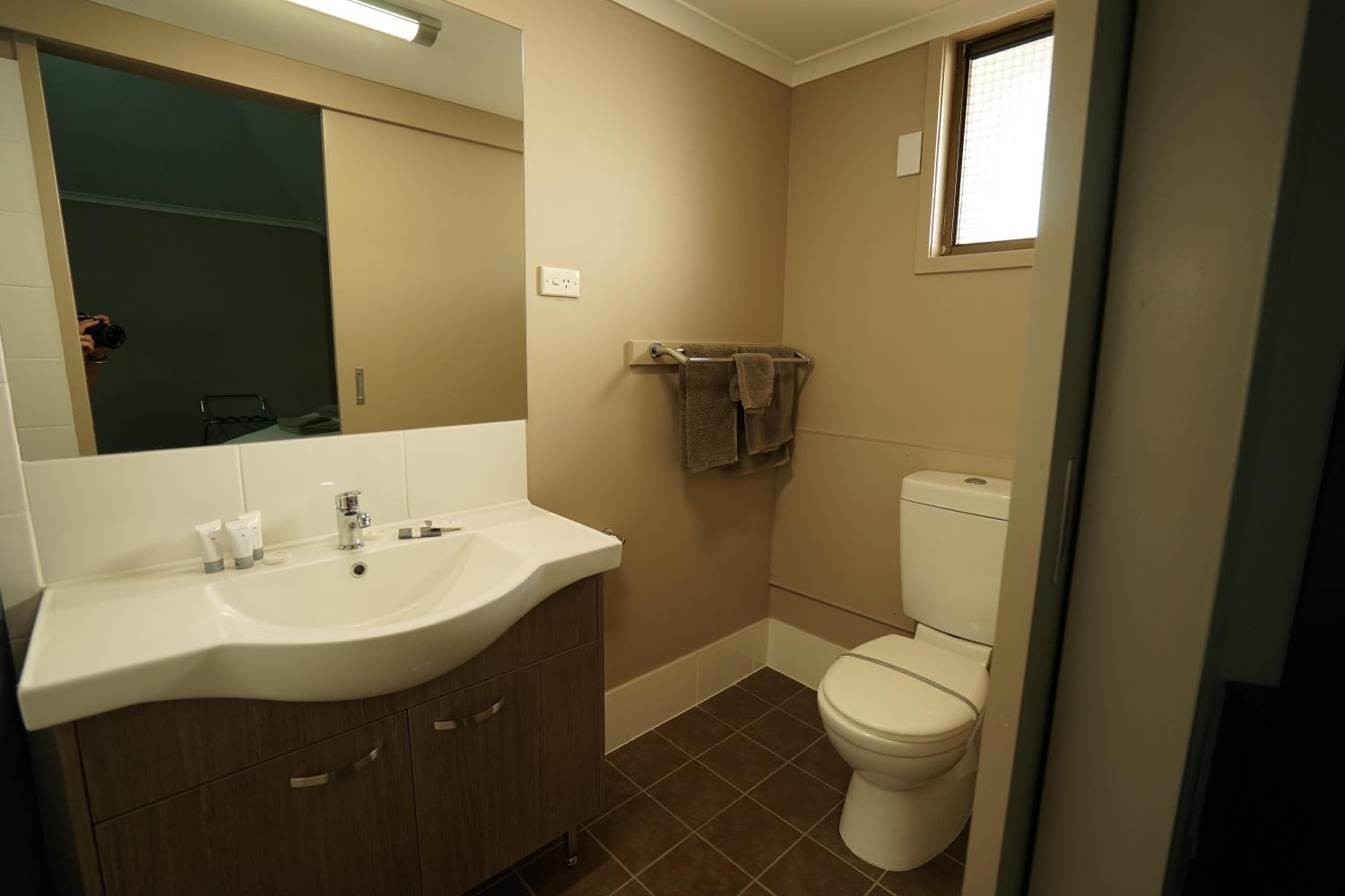 Aircon wasn’t turned on for our arrival on a 40 degree day, the room smelt of sewerage , the cold water was boiling hot and there were few PowerPoints and low lighting. Breakfast packs were out of date. Staff did their best to assist.
