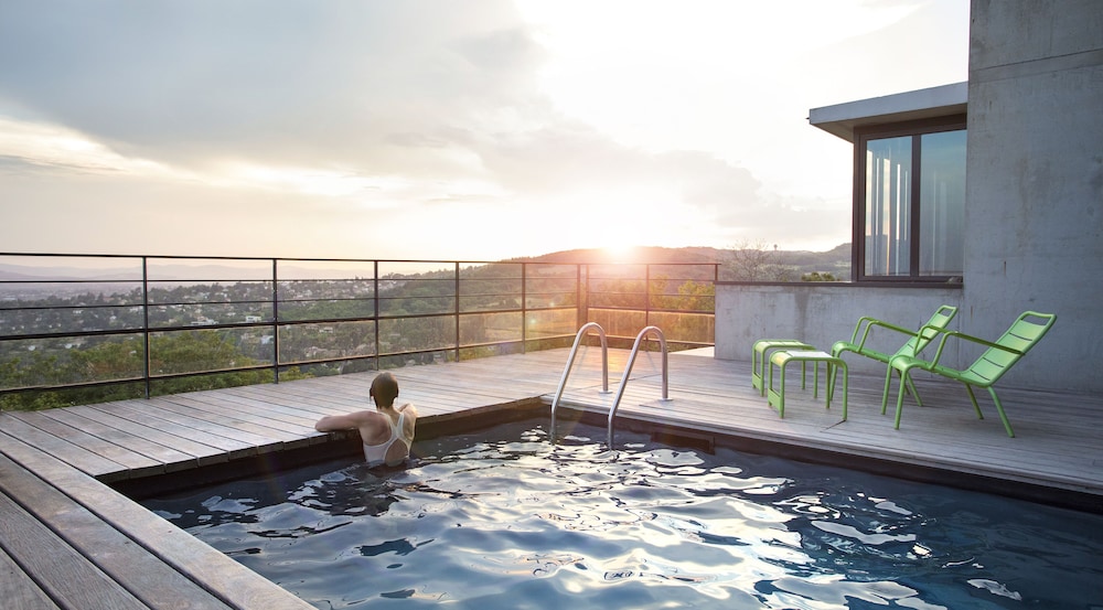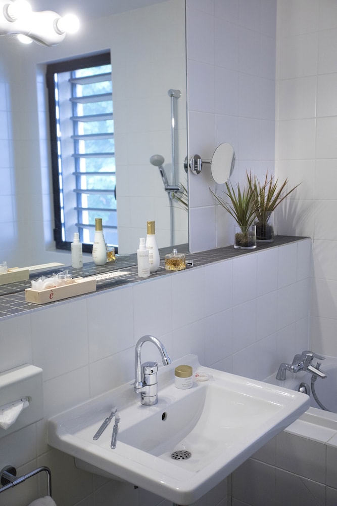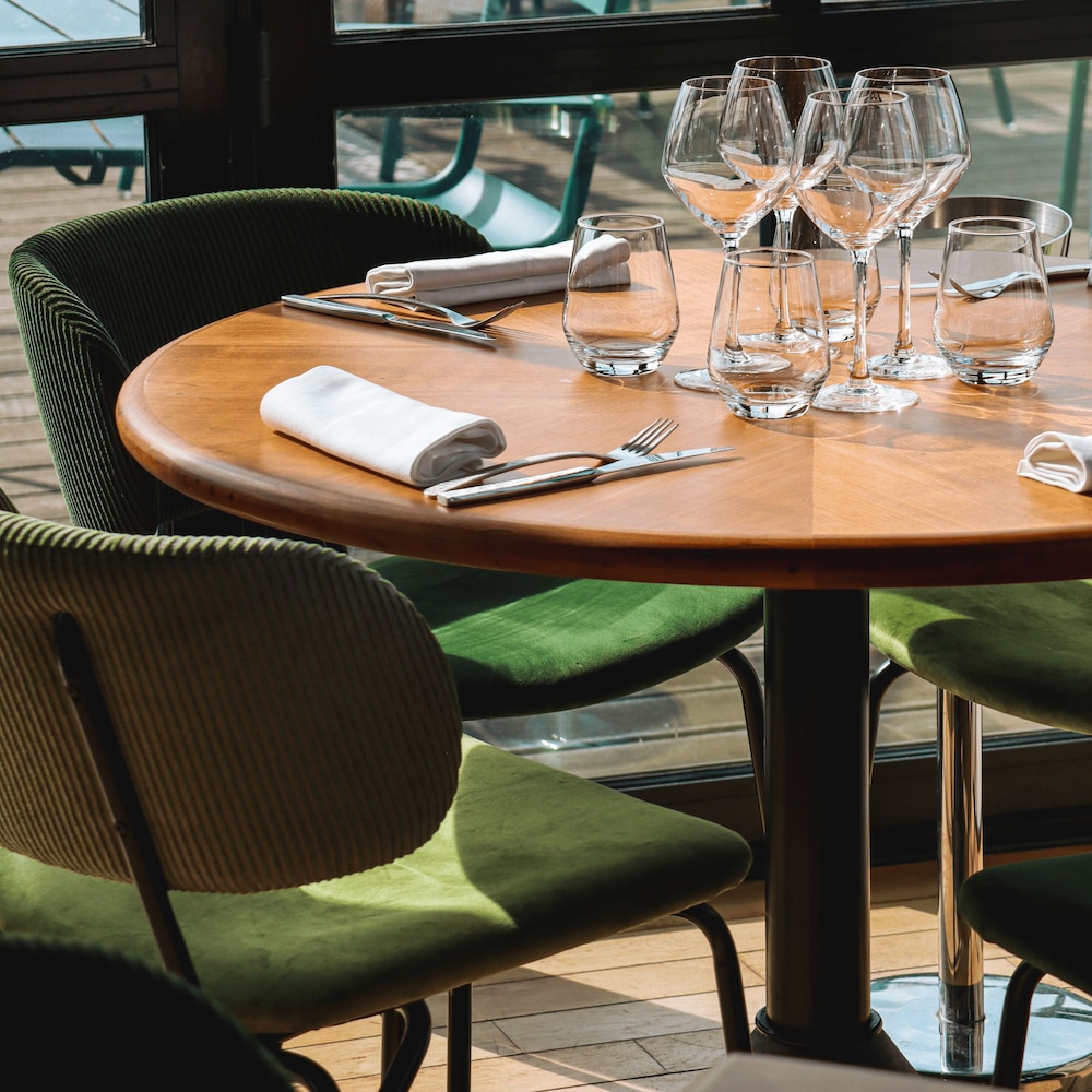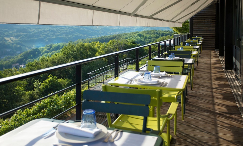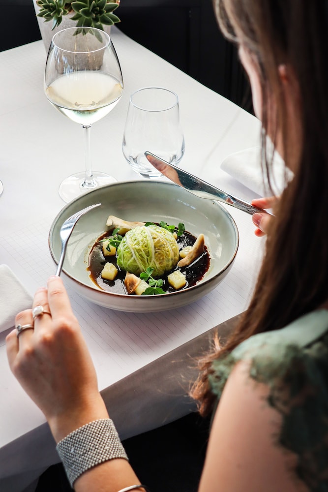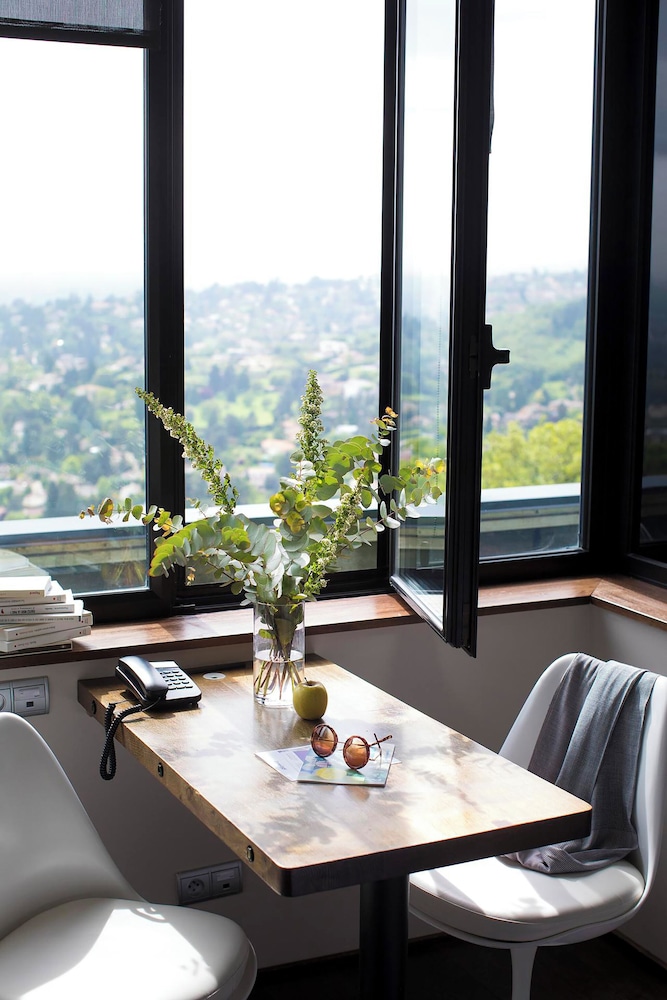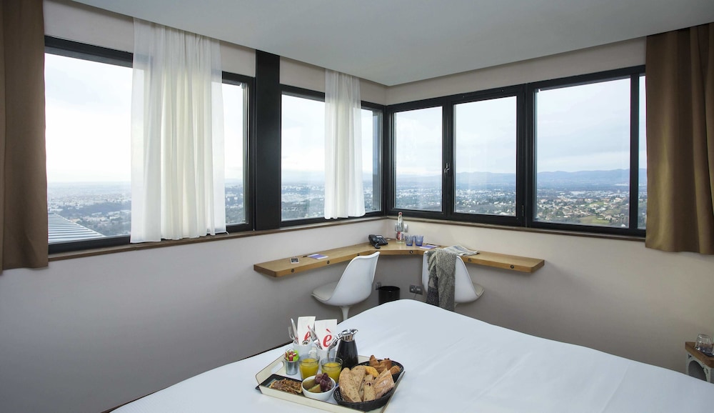A pleasant drive leads you to a quiet area outside Lyon with a beautiful view. The hotel is beautifully situated. As soon as you arrive, you'll almost immediately decide to return. The various areas of the boutique hotel are "boutiquely beautiful," and the adjacent bar is also fantastic. We were also fortunate enough to encounter a wonderful singer/songwriter with a superb 80s repertoire!