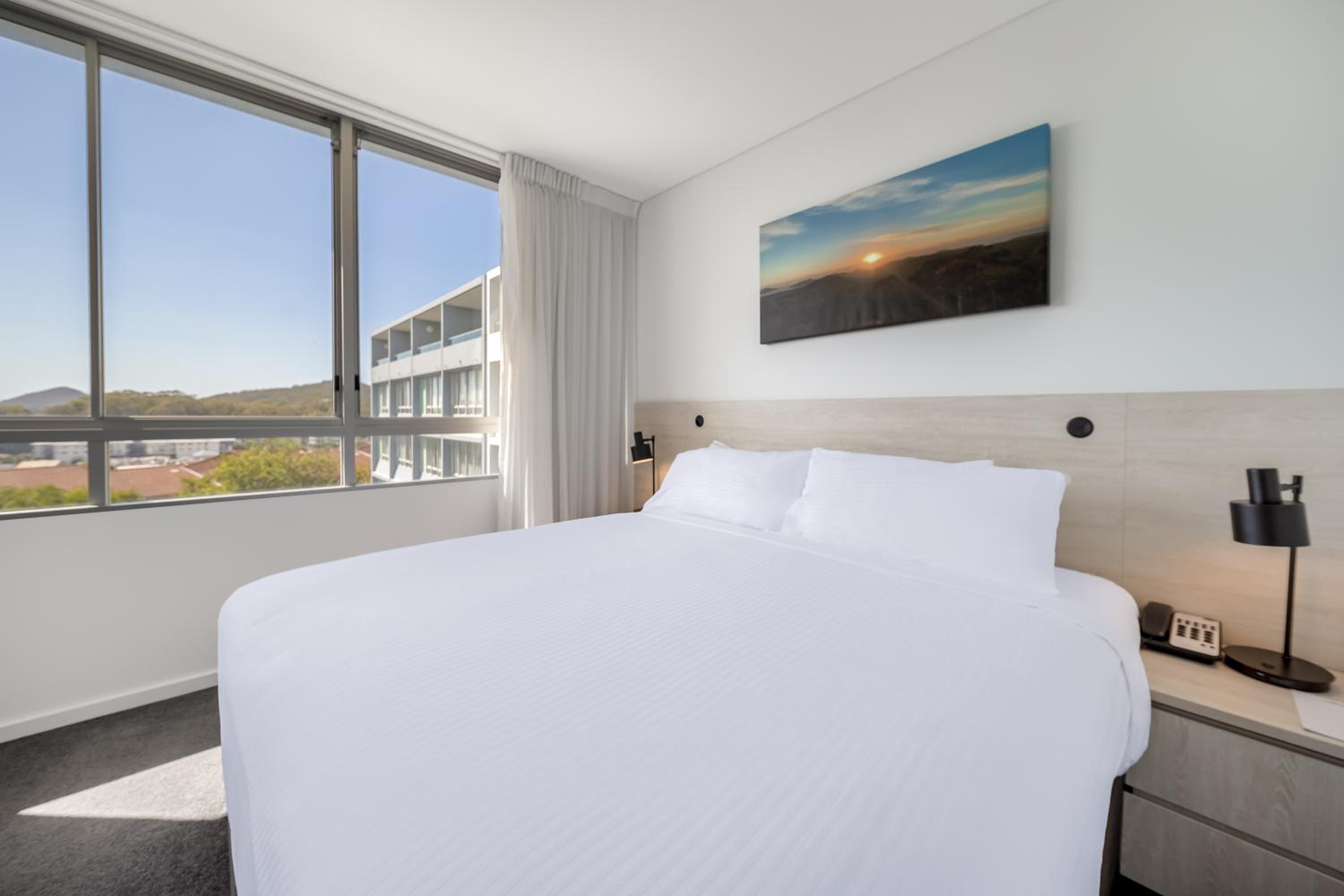 Oaks Nelson Bay Lure Suites, nestled in the heart of Nelson Bay, provides spacious and modern one and two bedroom apartments with full kitchen facilities, offering a home away from home experience.