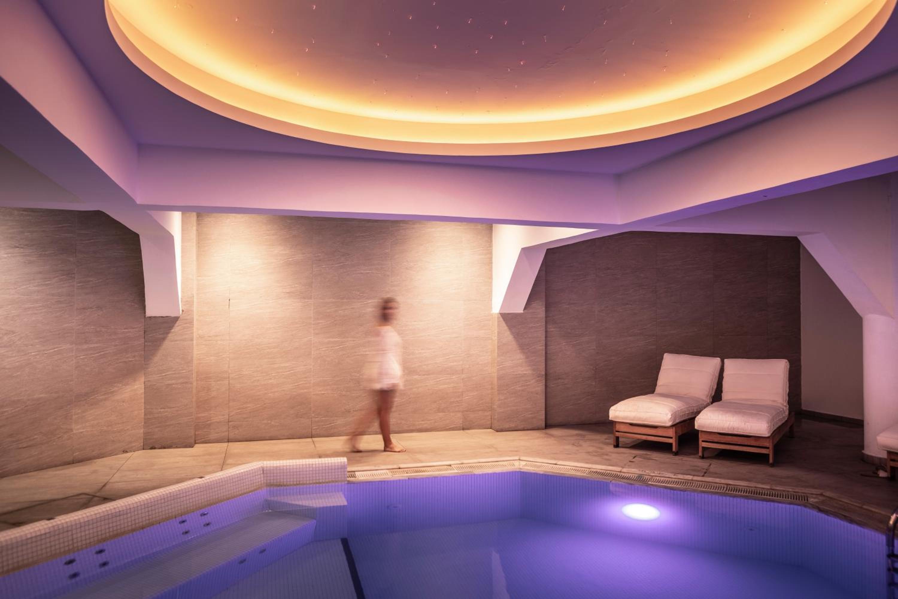 Several different pools, a large jacuzzi resembling a small pool, a sauna, a gym, comfortable loungers. Basically, everything was fully equipped.