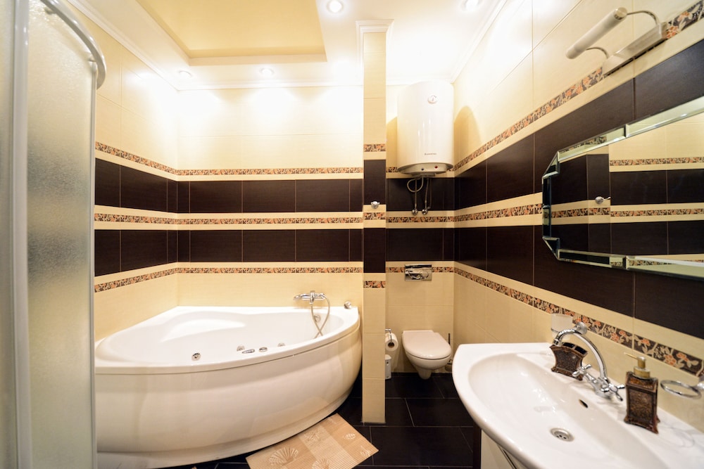 Typical apartment in Kiev, inside very nice, but the building it's in is old and worn down. Location is best you can get, only 5 minutes walk from Independence Square. Apartment clean and tidy, but a little spartan. Hot tub was regular tub. Sheets for bed too small for the bed. Typical problems in old Soviet area, but nothing too annoying. I will probably stay there next time I go Kiev again, since you cannot beat the location. Also nice people in the office. Taxi service a bit expensive.