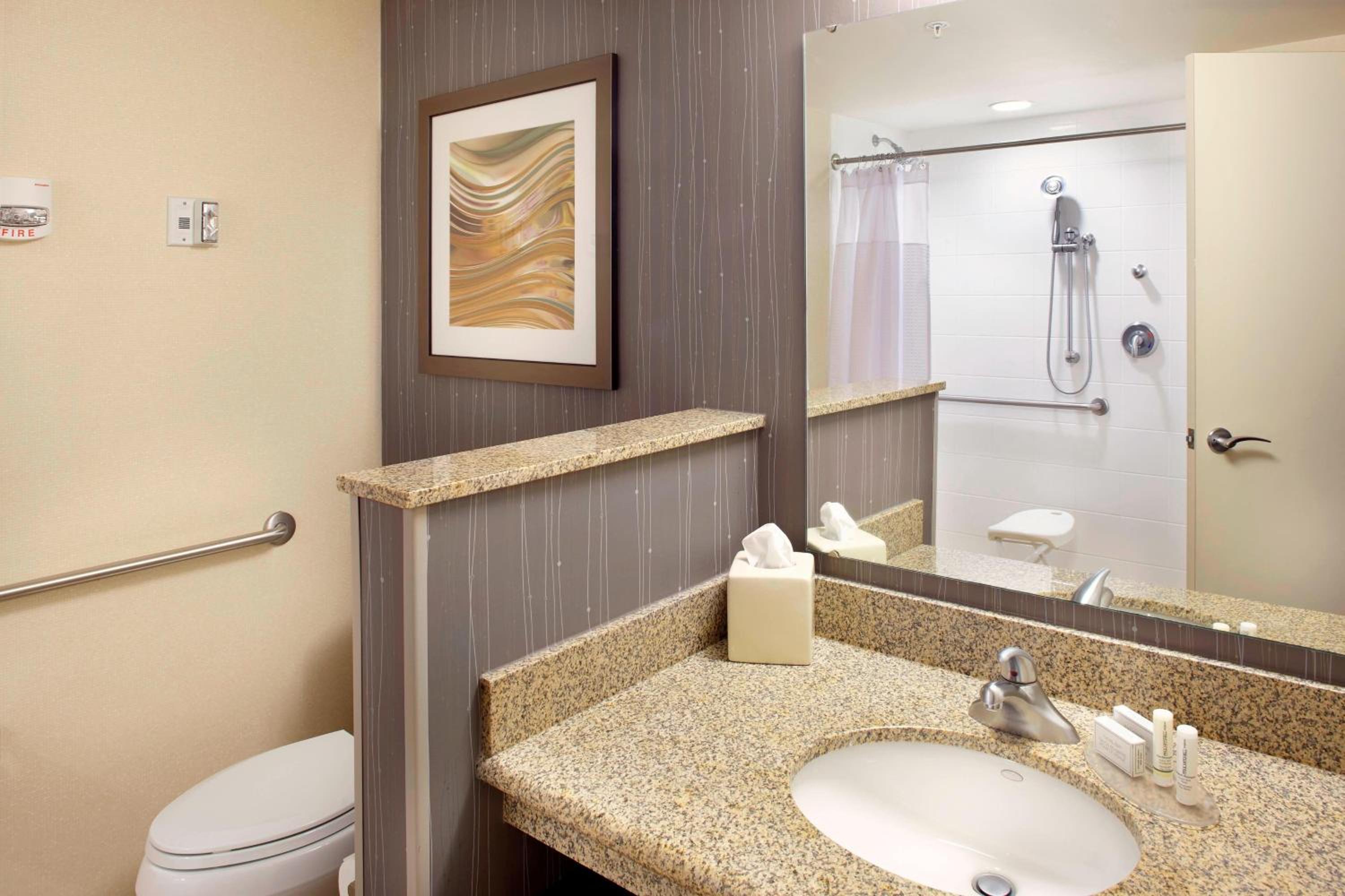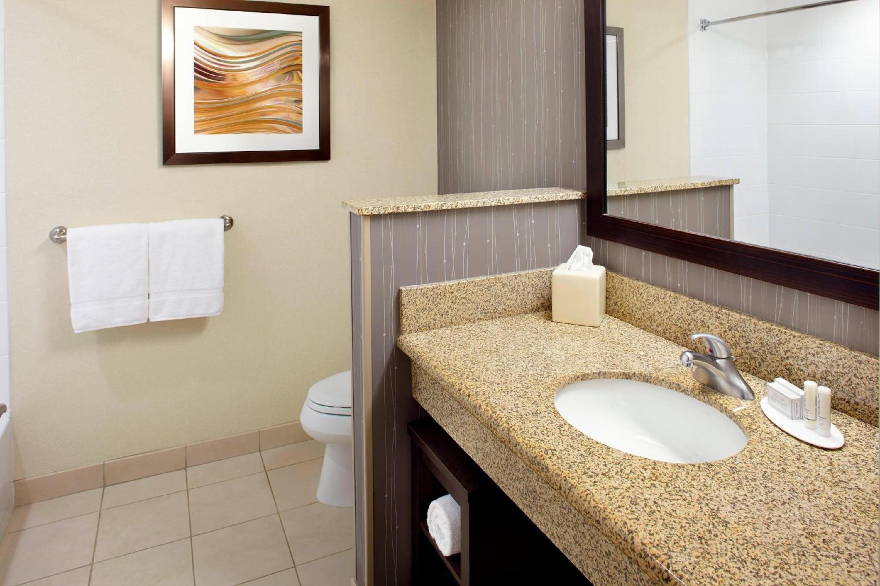 Enjoy the fitness center, indoor heated pool, and whirlpool bath during your stay. Unwind at the lobby bar or on the outdoor patio with a firepit and water feature, creating a peaceful ambiance for guests.
