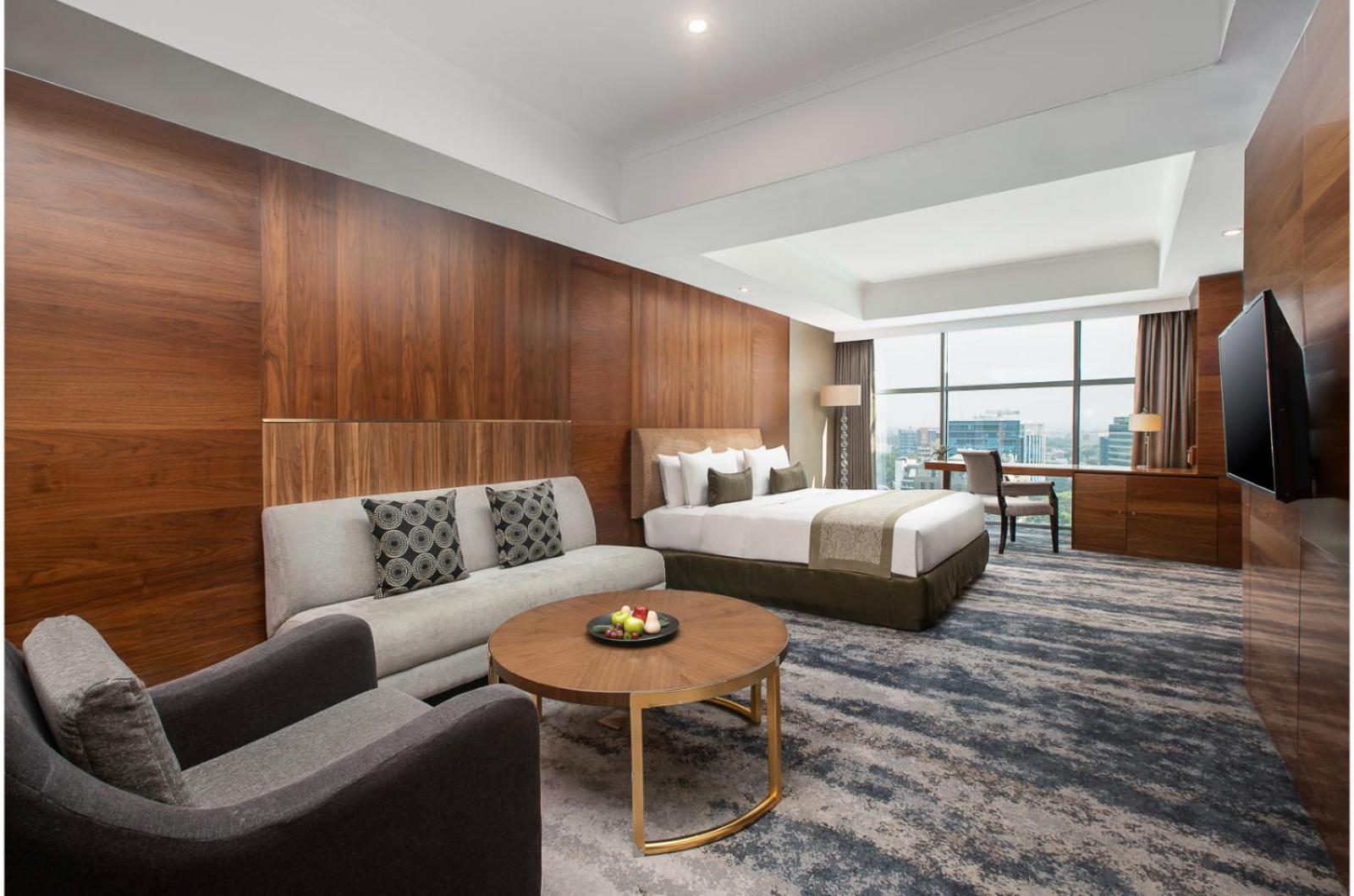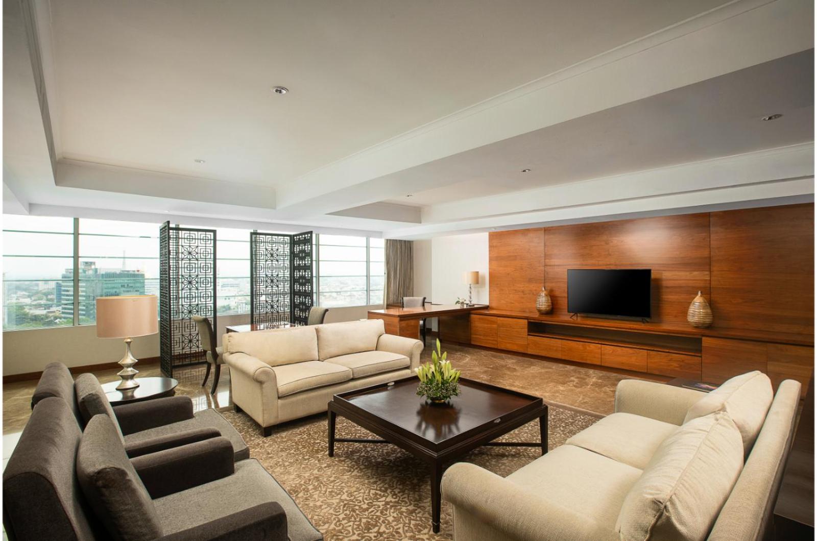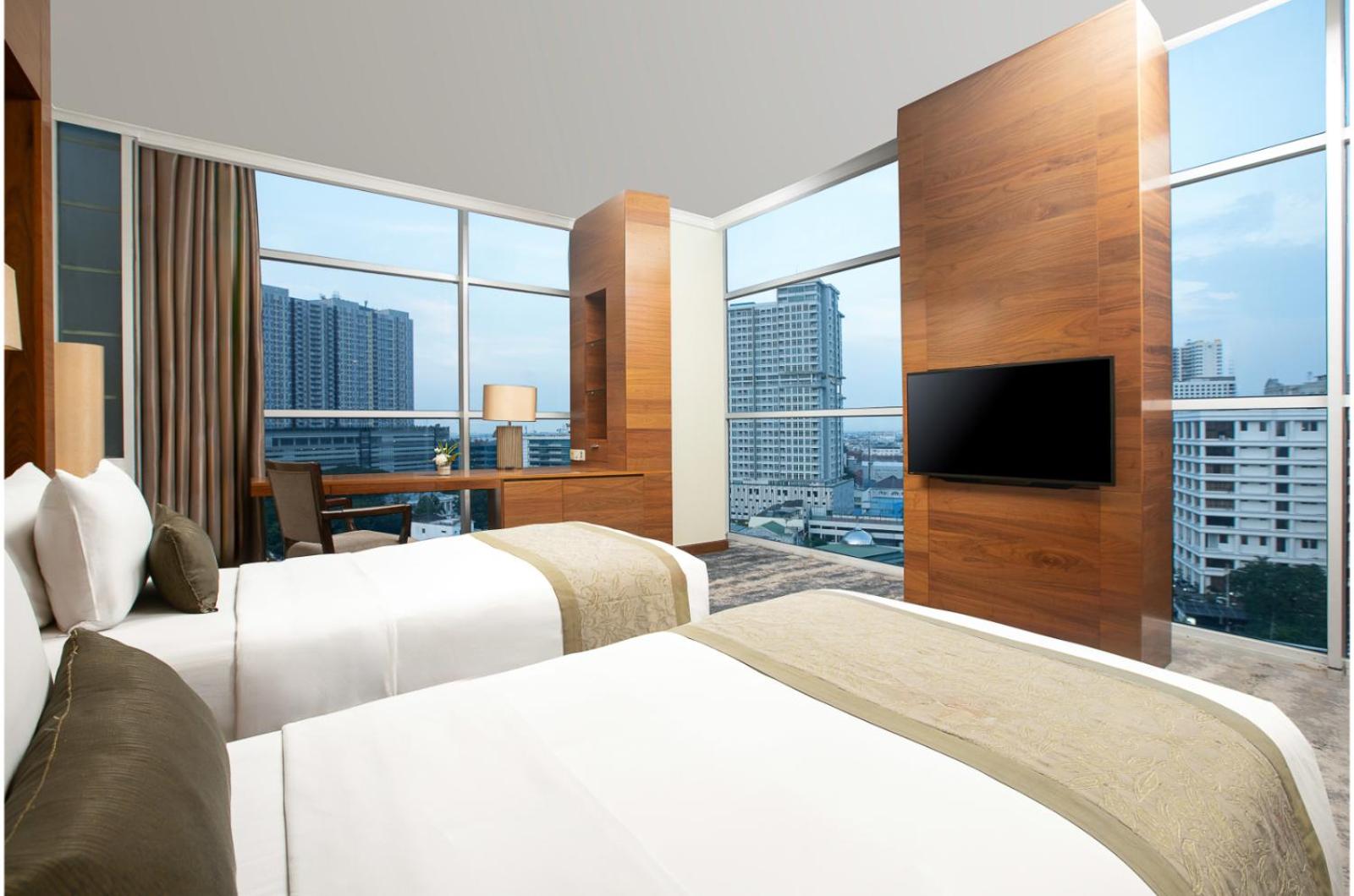Stunning Views and Relaxation: Enjoy breathtaking views of Medan City from Hotel Aryaduta Medan, located atop Grand Palladium Mall. Unwind by the 35-metre courtyard pool surrounded by lush greenery, or indulge in in-room massage treatments for the ultimate relaxation.