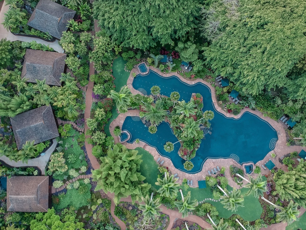 The rooms are tastefully furnished, but i wish the bathrooms had 2 sinks and a soaking tubs. The flora on the grounds was gorgeous, and there was a nice pool and spa, although, the massages were frightfully expensive. i loved the gym and the classes and it was nice to be in the mountains and see a different part of Hawaii. Food was over priced and could have been better. Excellent service, though.