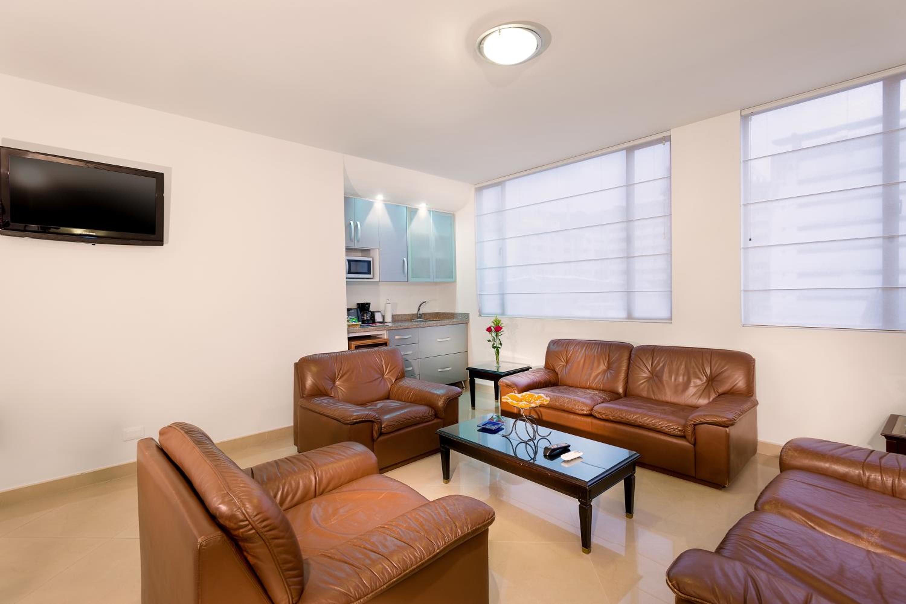 Experience spacious rooms with stunning city views at Hotel Dann Combeima. Each room is equipped with LCD cable TV, a cozy seating area, and a convenient work desk for your comfort and productivity.