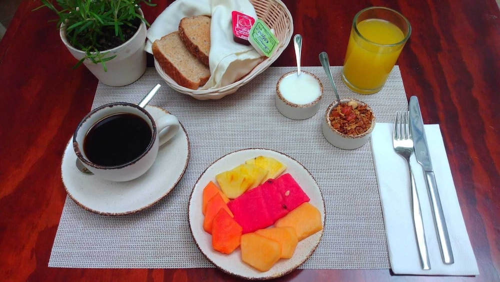 Very reasonably priced. Very clean room and comfortable bed. I would have appreciated a blanket. What was available was something that resembled curtains instead of an actual blanket. I did encounter two very big cockroaches; one in the lobby and one in the hallway leading to my room. I notified the desk clerk, and when I returned later there was a man spraying insecticide. I appreciated that. It is a tourist area so there is quite a bit of loud music from local bands playing from about 8 PM to 1 AM every day. After that, it becomes very quiet. I just shut the windows and put earplugs in my ears. A free continental breakfast was included. One day, when I had finished my breakfast, the waiter asked me if he could get me anything else. I asked him for a little more coffee, and he said he would have to charge me 600 pesos! That's almost $6.00 U.S. dollars for a little splash of coffee which I found absurd and ridiculous.