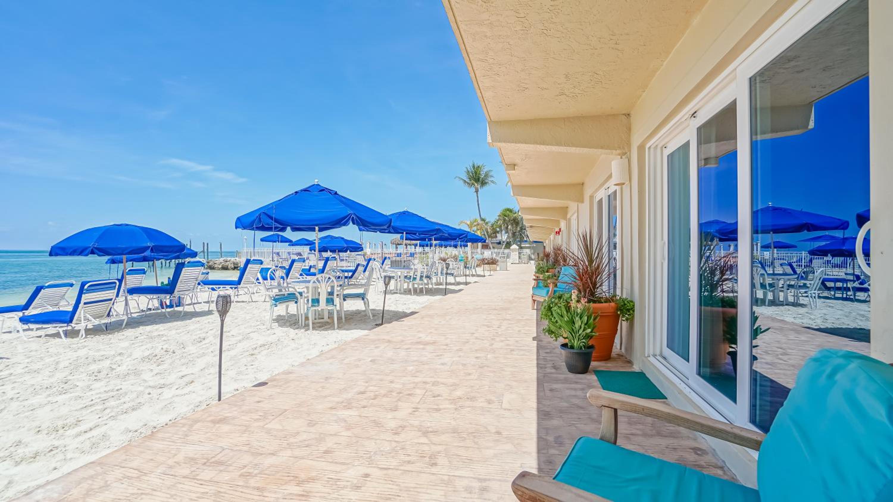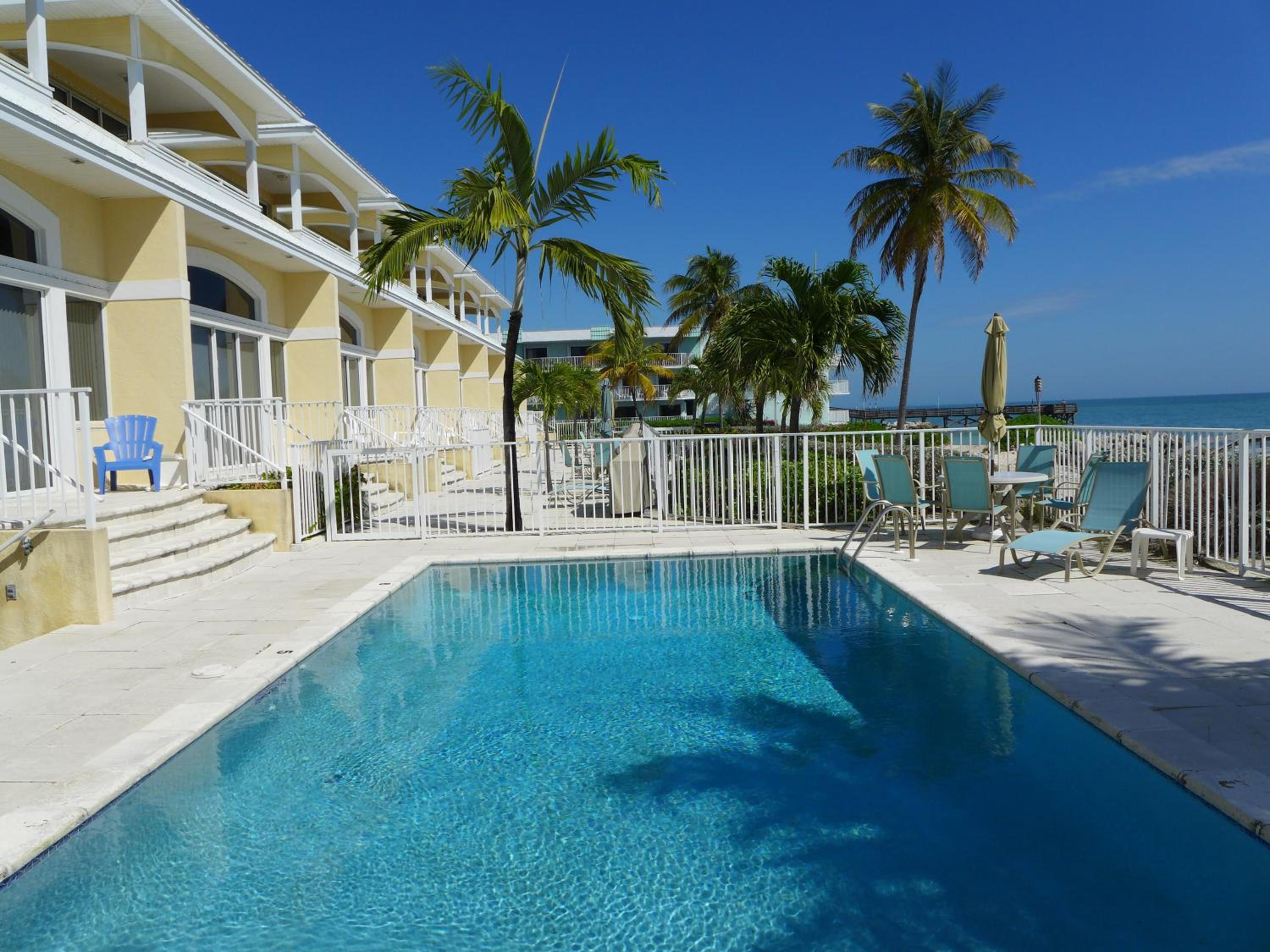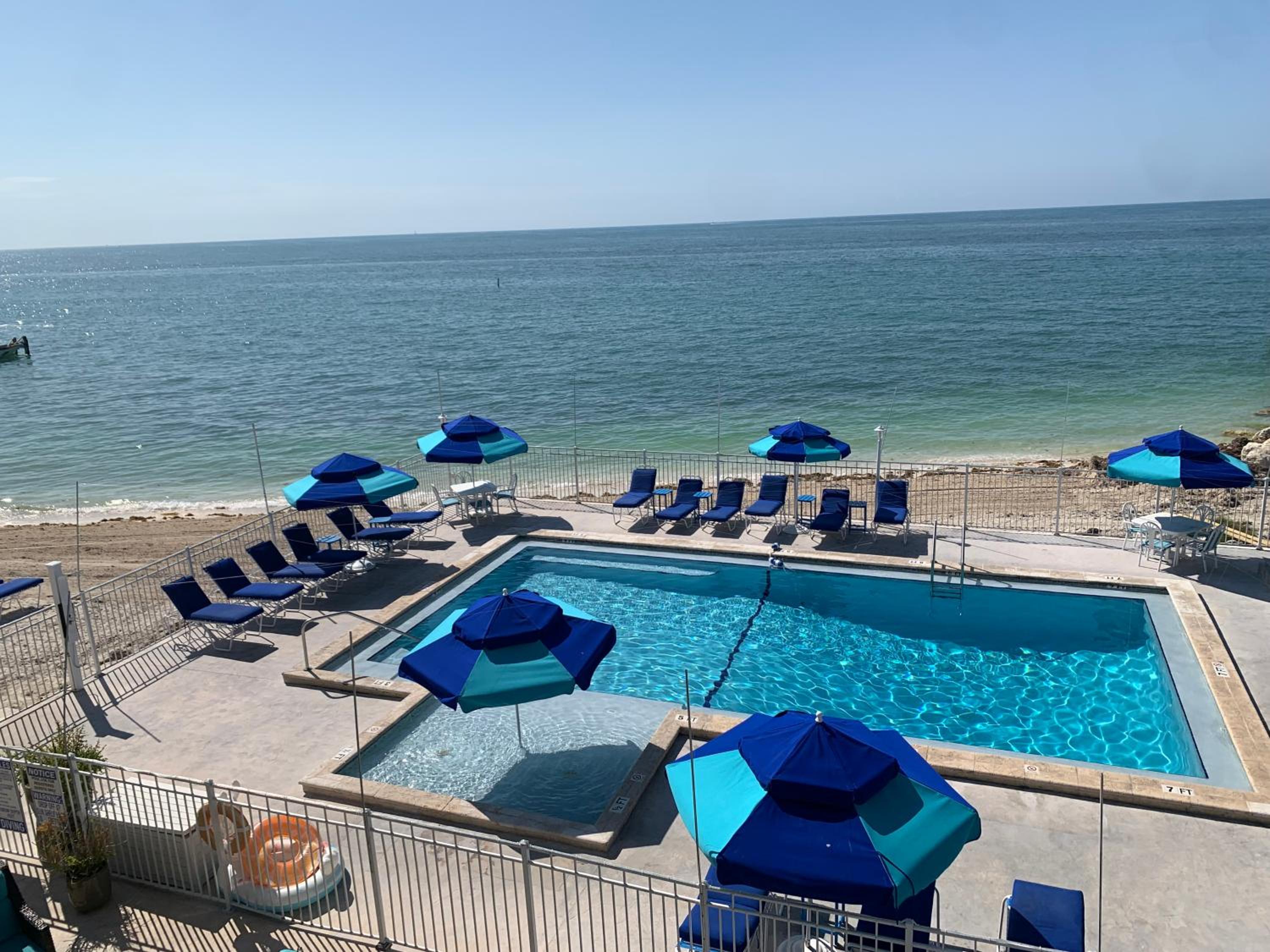 The ocean access was perfect--the beach was clean and the water clear! We even saw dolphins right from the beach two days in a row. The pool and a hot tub was a bonus, though we did not use it much. There was also access to kayaks if you wanted them! The bar next door gave us drinks in plastic cups to be able to bring back to the beach. The staff at the front desk was nice and accommodating. Parking was simple and right near our unit. The beach was quiet and we liked the no bluetooth speaker policy. The chairs on the beach were comfortable and they even had umbrellas for shade. Close driving distance (less than 10 minutes) to various restaurants and stores. I could go on and on. This is a little gem in the keys! Wish we could have stayed at least one more day.