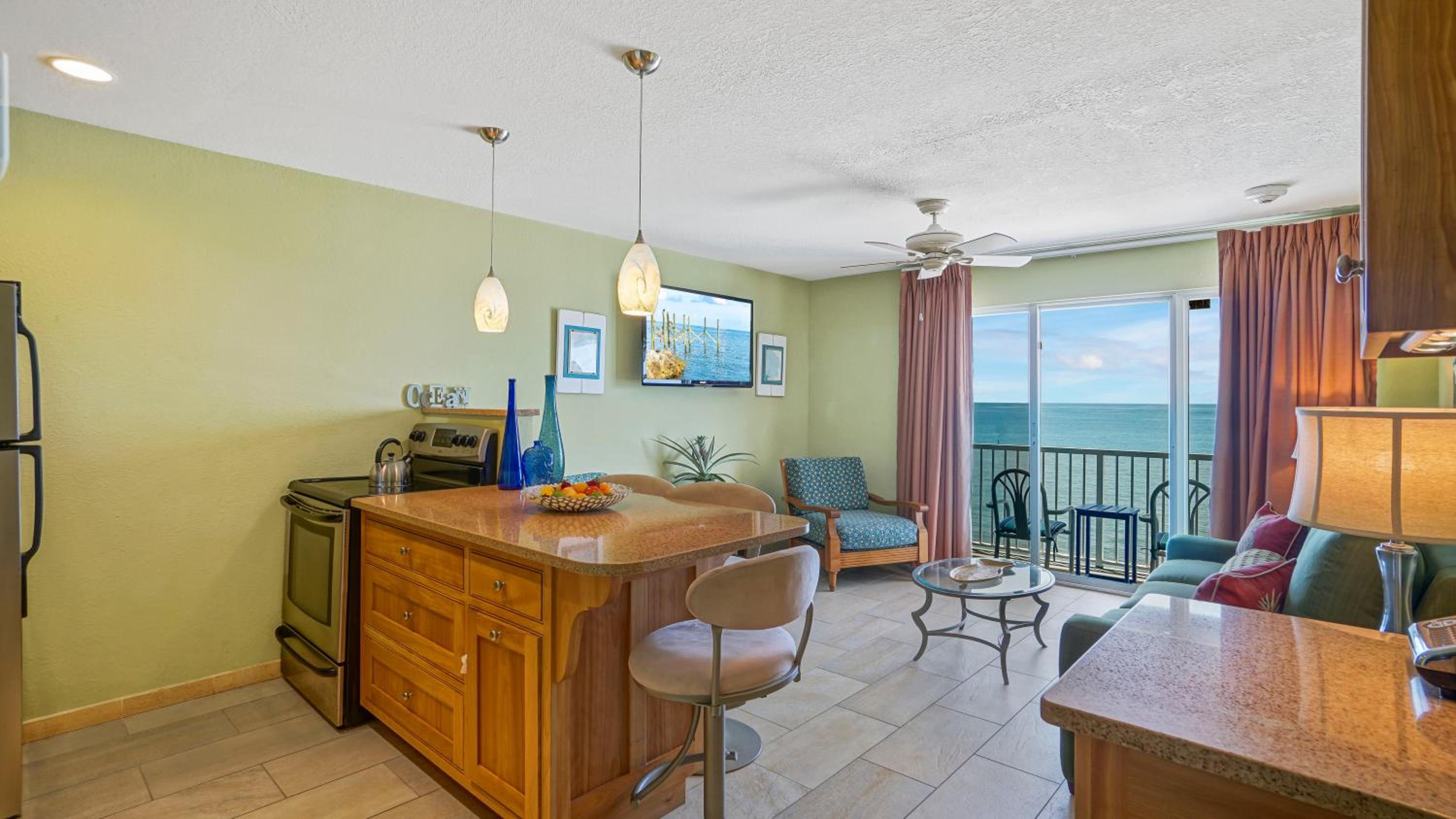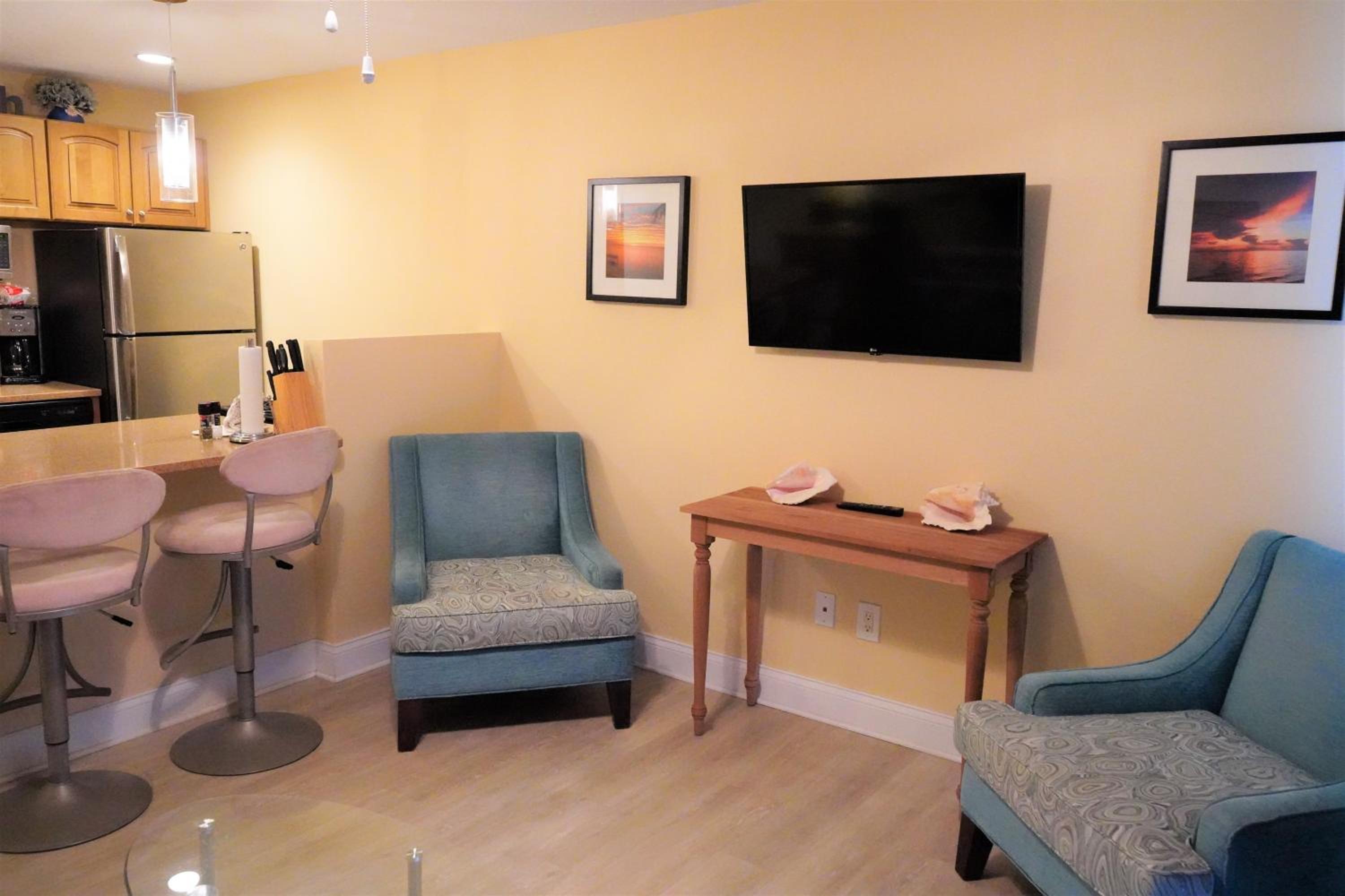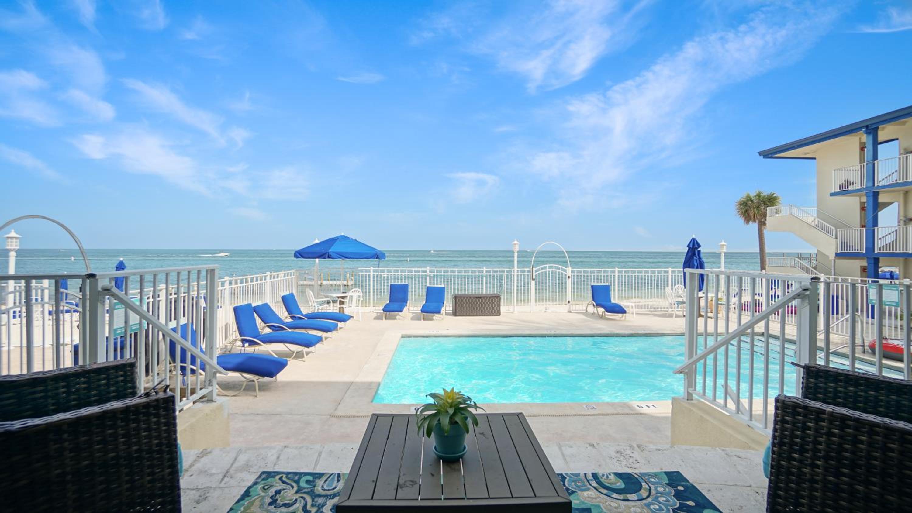 The ocean access was perfect--the beach was clean and the water clear! We even saw dolphins right from the beach two days in a row. The pool and a hot tub was a bonus, though we did not use it much. There was also access to kayaks if you wanted them! The bar next door gave us drinks in plastic cups to be able to bring back to the beach. The staff at the front desk was nice and accommodating. Parking was simple and right near our unit. The beach was quiet and we liked the no bluetooth speaker policy. The chairs on the beach were comfortable and they even had umbrellas for shade. Close driving distance (less than 10 minutes) to various restaurants and stores. I could go on and on. This is a little gem in the keys! Wish we could have stayed at least one more day.