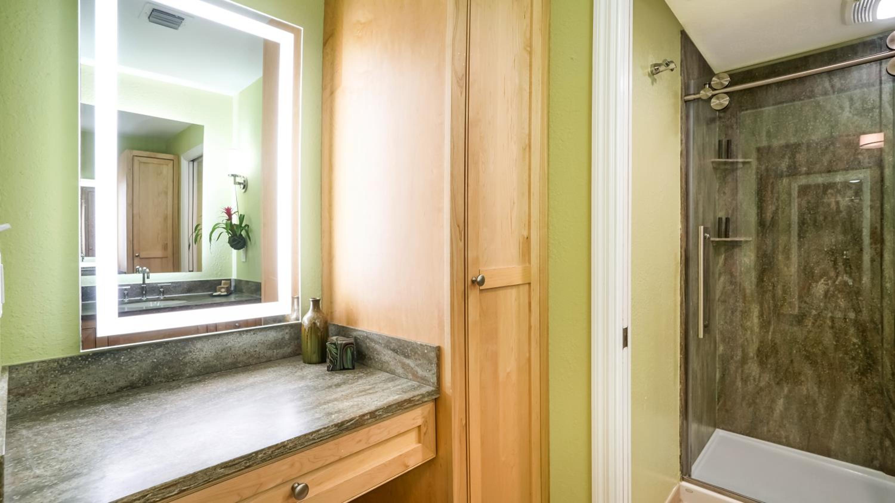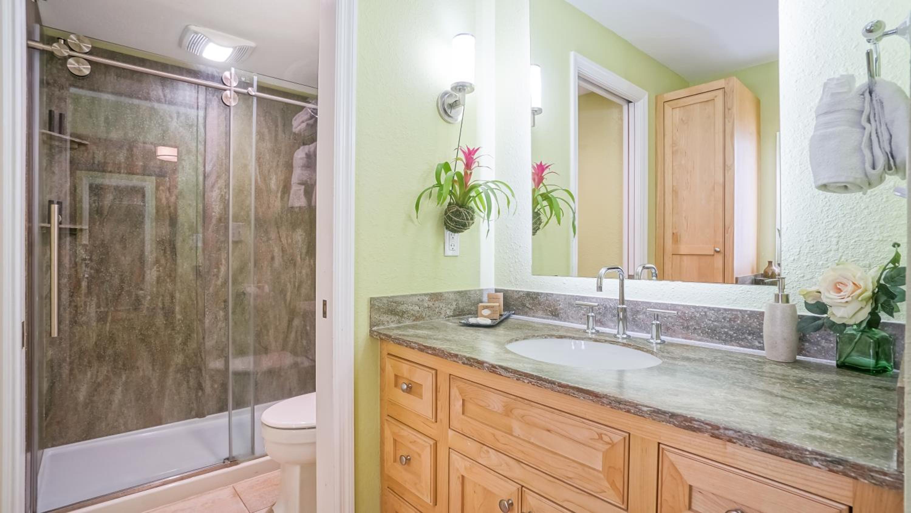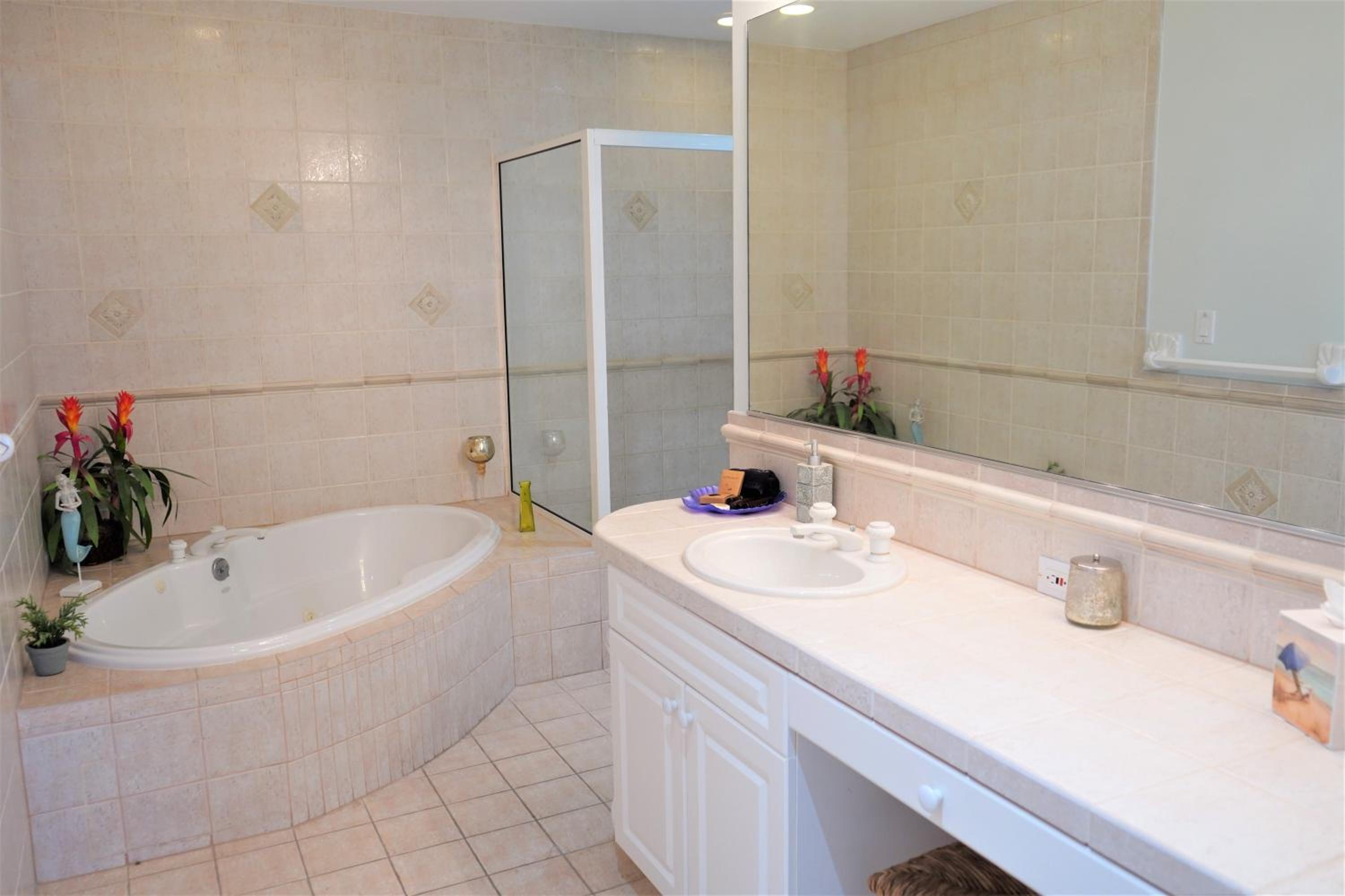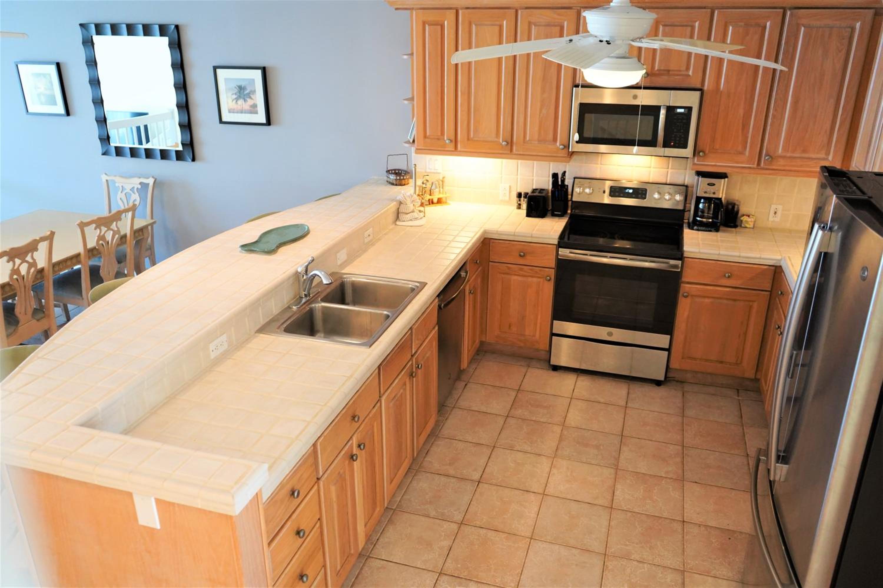 overpriced and under furnished. Villa was rated to hold six people but spartan on everything, dishware, cooking utensils, bedding. no extra blankets, pillows, kitchen towels. rugs on the floor. even garbage bags. when asked, front desk always said to come pick up. for the price, these things should already be there. clients paying this rate do not want to take their industrial stuff home. garage in each unit but not available. STAIRS everywhere. up one level to living and kitchen, another to bedrooms. definitely not for older folks. even handles in bathoom are not easy like levers.