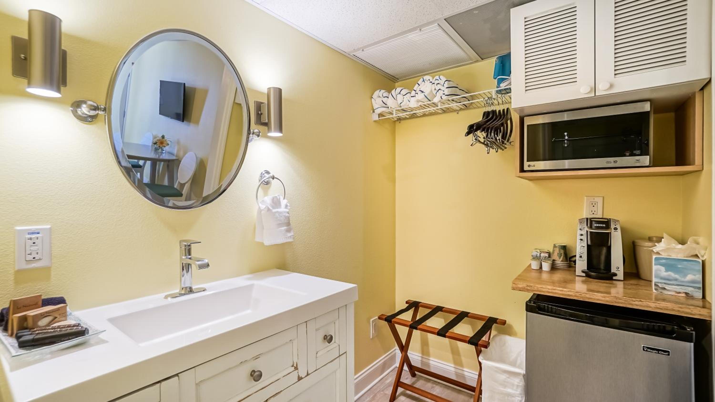 Way overpriced. Husband said a glorified Motel 6. Unfortunately we had a chain smoker 2 doors down so we could not enjoy our outside ocean view chairs. For such an expensive room, owners need to pay housekeeping a sustainable wage so there is no envelope asking for a tip
