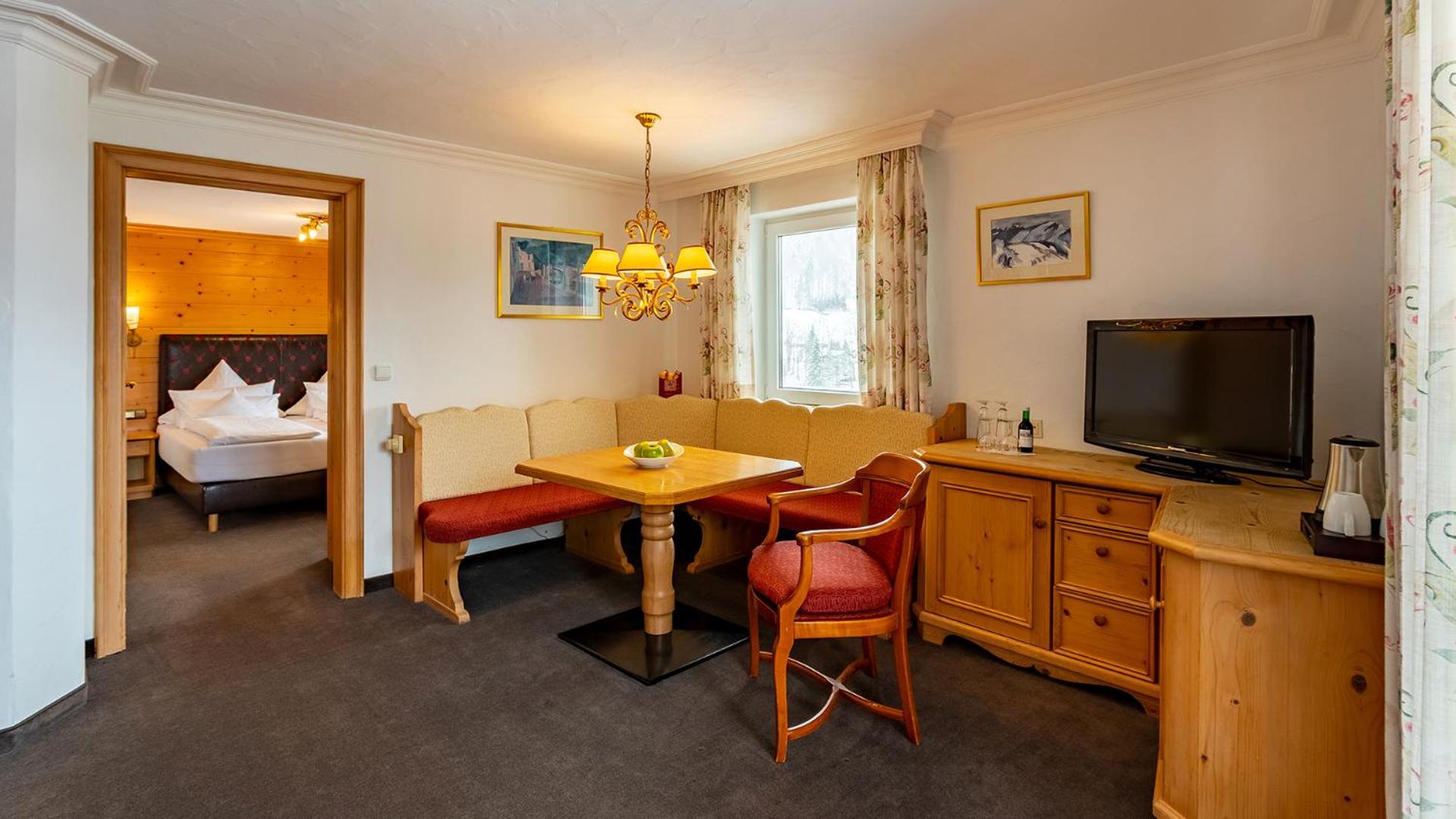 Komfortable Zimmer und gute Halbpension. Wellness-Bereich zum Entspannen nach dem Skifahren.