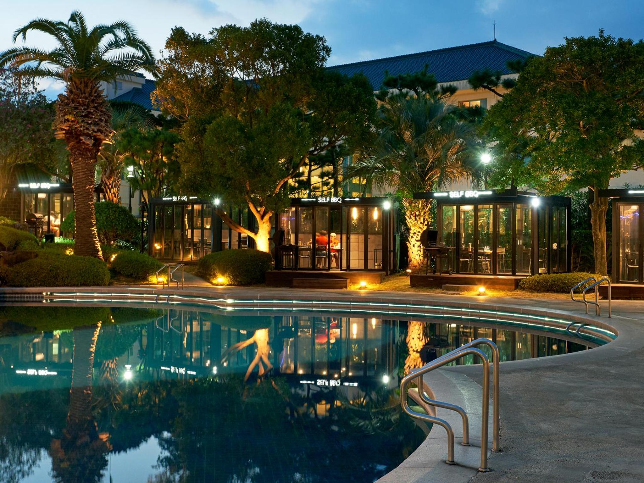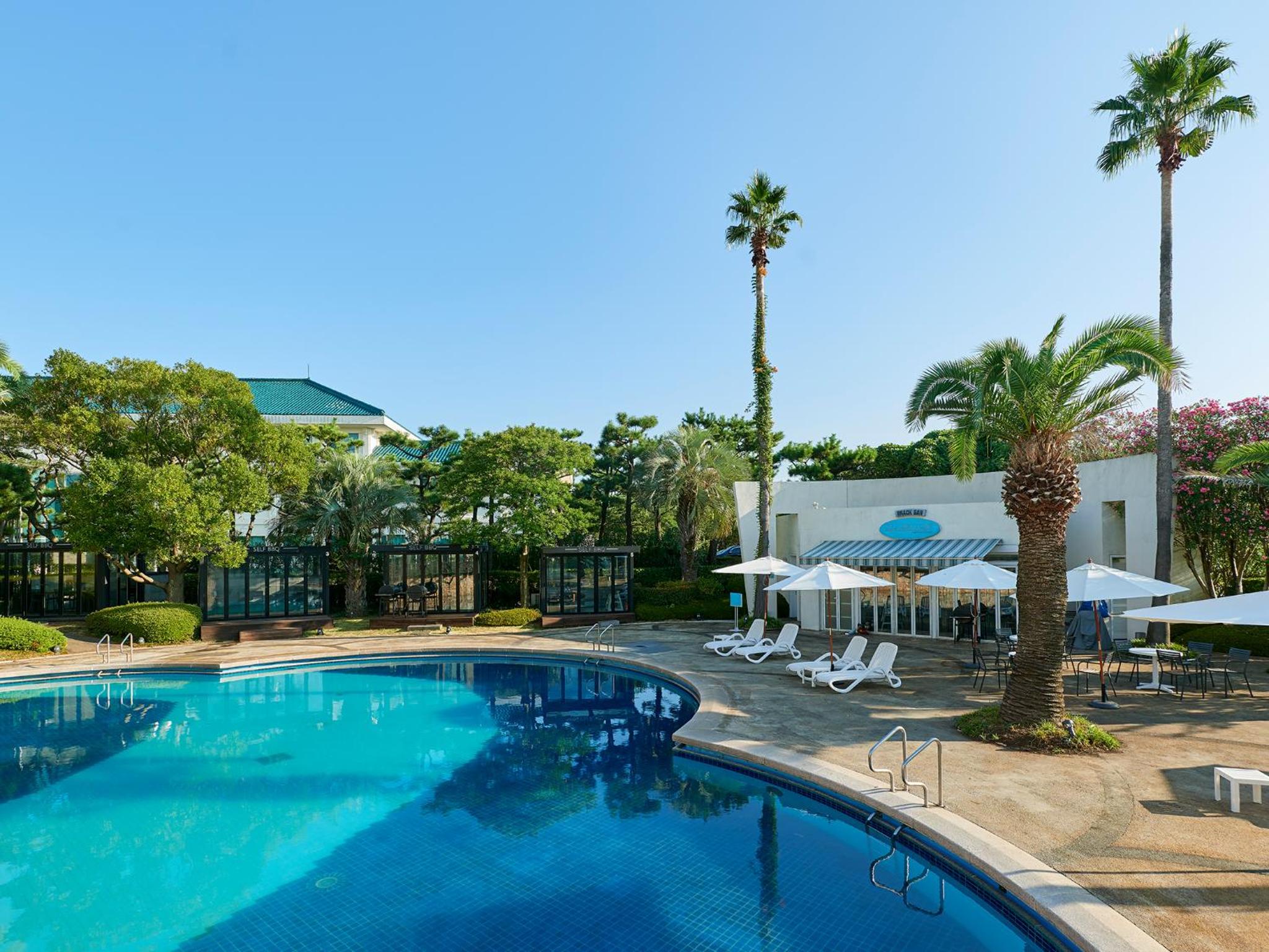 Experience a seamless blend of work and leisure with our 24-hour business center and soothing massage services. After a day of exploration in Jeju, unwind by the outdoor swimming pool or take advantage of free private parking. Your comfort is our priority at The Suites Hotel Jeju.
