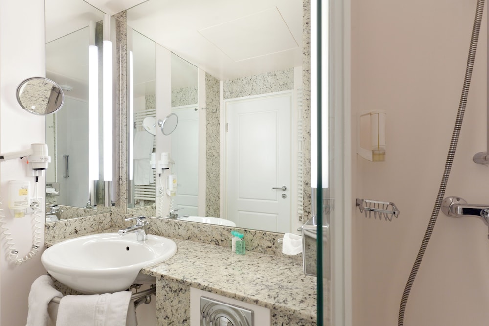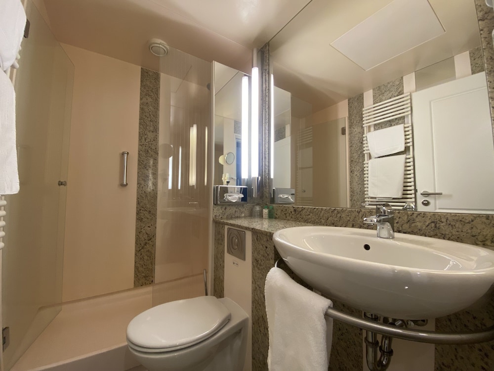Das Badezimmer war klein und ein Einbaubad. Zwar sauber, aber unten sah man Schimmel. Das Bett bestand aus 2 Einzelbetten, die immer wieder auseinander gingen. Der Wellnessbereich war für ein Hotel dieser Größe definitiv zu klein und verwinkelt. Vieles war kaputt und es roch z. T. nach Urin, obwohl es grundsätzlich sauber war. Die Saunen waren zu klein und es waren zu wenige. Der Pool war in Ordnung aber es gab viel zu wenig Liegemöglichkeiten.