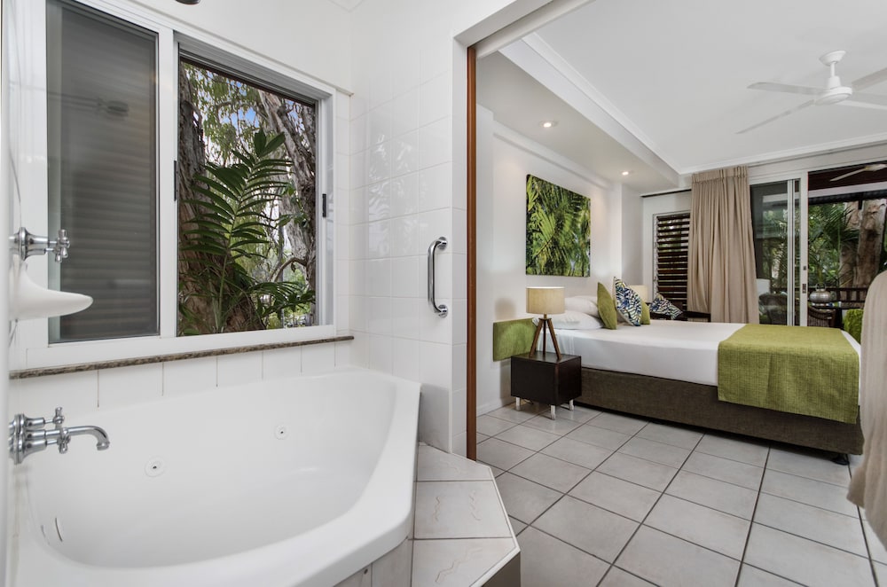 My partner and I stayed 2 nights in a superior spa suite which was very fresh, clean and spacious and the spa and kitchen were well provided. It had a lovely view overlooking the pretty heated swimming pool and we felt like we were nestled in a tranquil rainforest with many beautiful Melaleuca trees growing right next to the outdoor kitchen/living area. I highly recommend this resort - with the beach only a few steps away and also close to the many nearby restaurants it has everything you could wish for in a romantic getaway. The hosts, Jim and Joanne are welcoming, very knowledgeable of the area and helpful with local information.