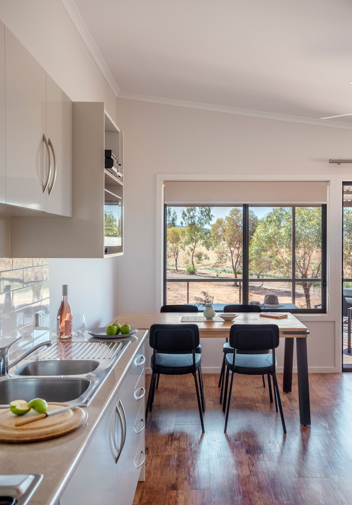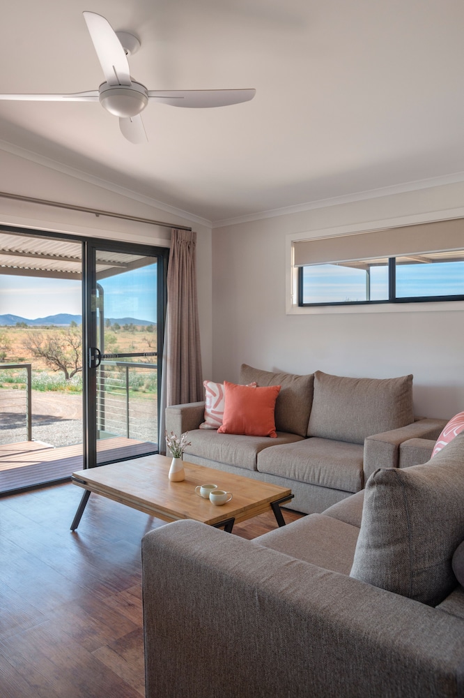 The Eco villa was very well appointed, extremely comfortable and the view of the Elder Ranges and Flinders Ranges was brilliant. We experienced some amazing sunsets and sunrises from the balcony and had many native animals passing by including euros, kangaroos and emus. All the staff were very welcoming, friendly and efficient. We loved our stay.