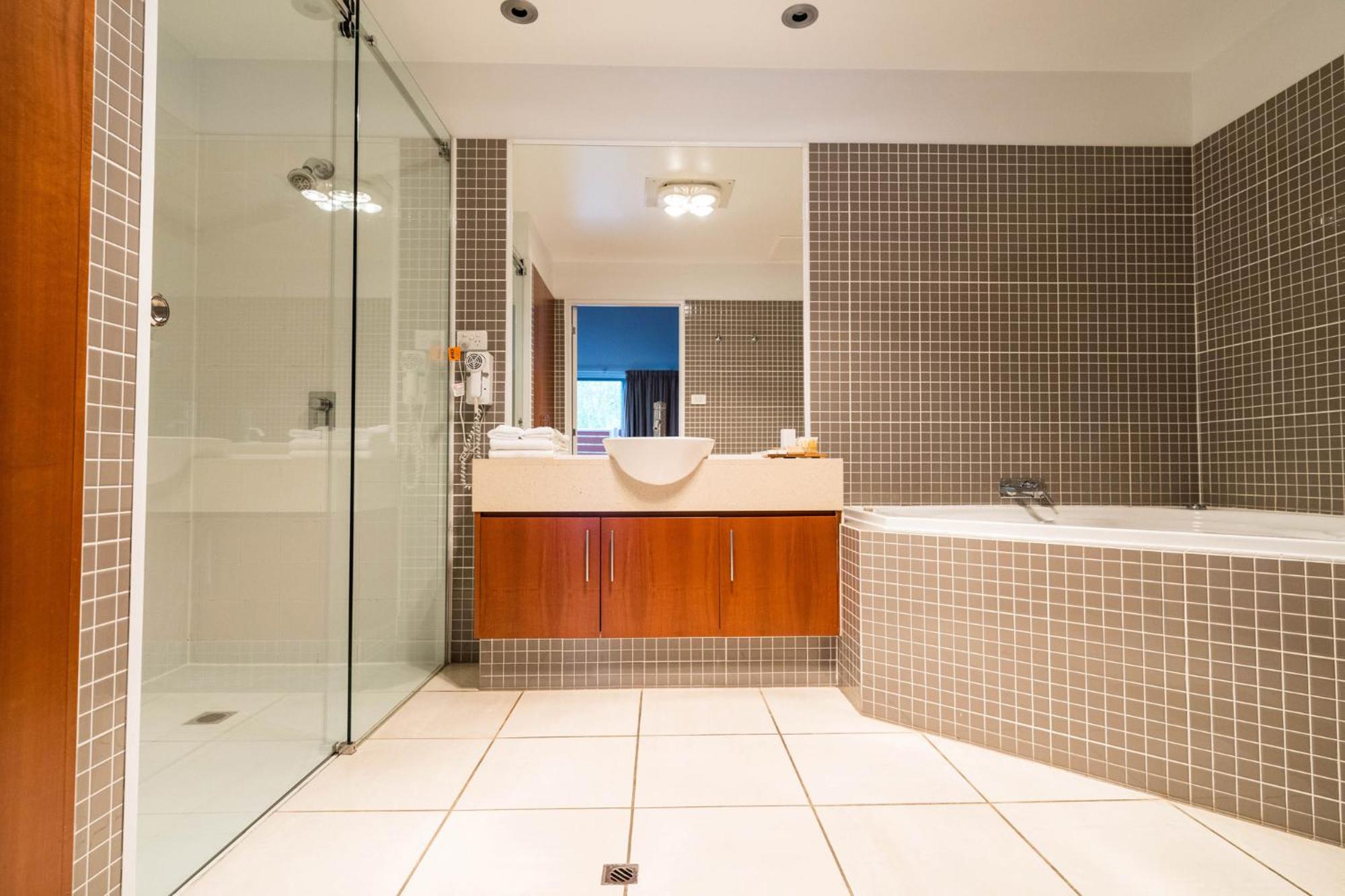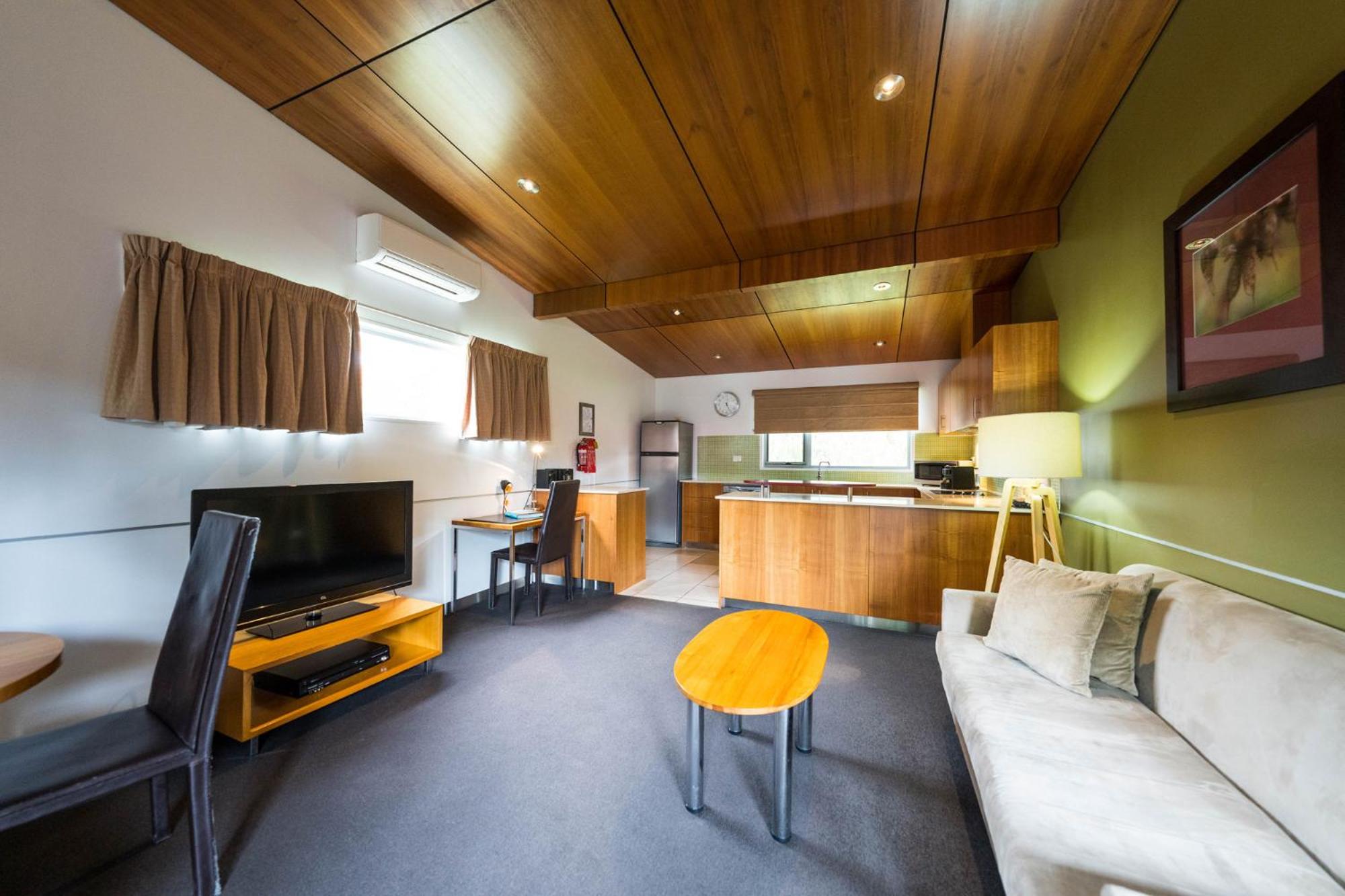 Tall Timbers Tasmania offers a range of accommodations including standard hotel rooms with ensuite bathrooms and self-contained apartments with kitchen and laundry facilities. Each room conveniently has parking right in front.